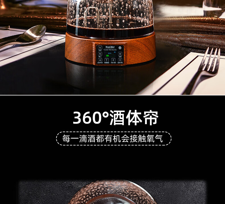 Tuojin imported quality intelligent electric atomized wine decanter from Germany, red wine wine set, crystal red wine flask, solid wood base, fast intelligent electric atomized wine decanter, ebony base