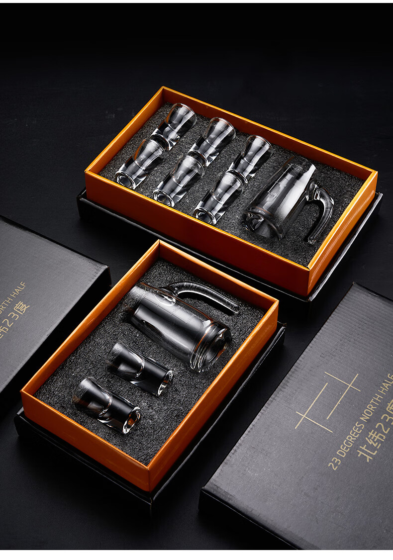 Tuojin imported quality liquor cup set gift box from Germany, custom-made glass cup, household lead-free crystal wine divider cup, one pot, six cups, 80 pots + clear cup