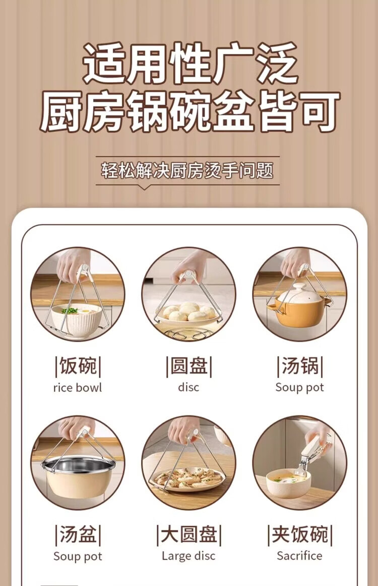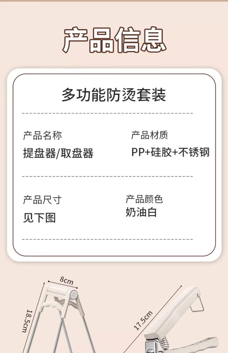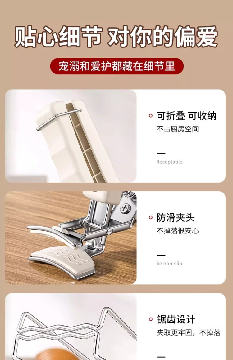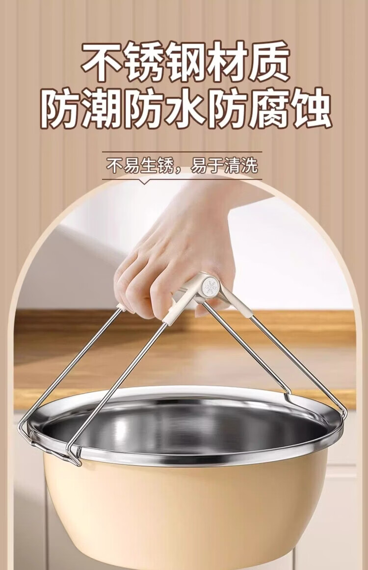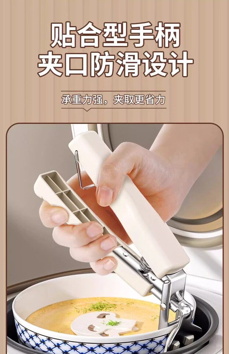 Miaopule anti-scalding bowl clamp kitchen anti-scalding hand clamp plate steaming dish stainless steel tray clamp bowl artifact anti-slip anti-scalding three-piece set milk white suitable for baking and cooking