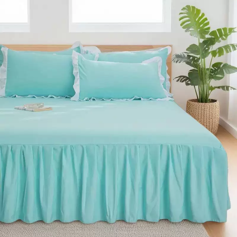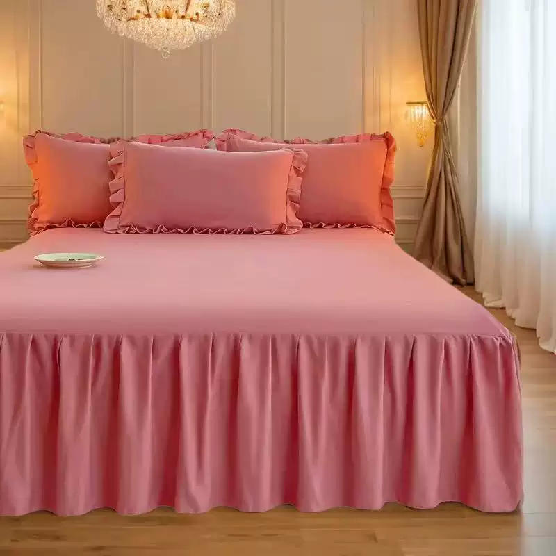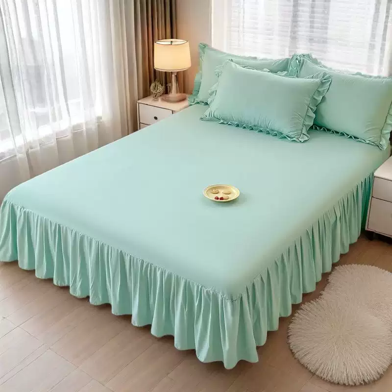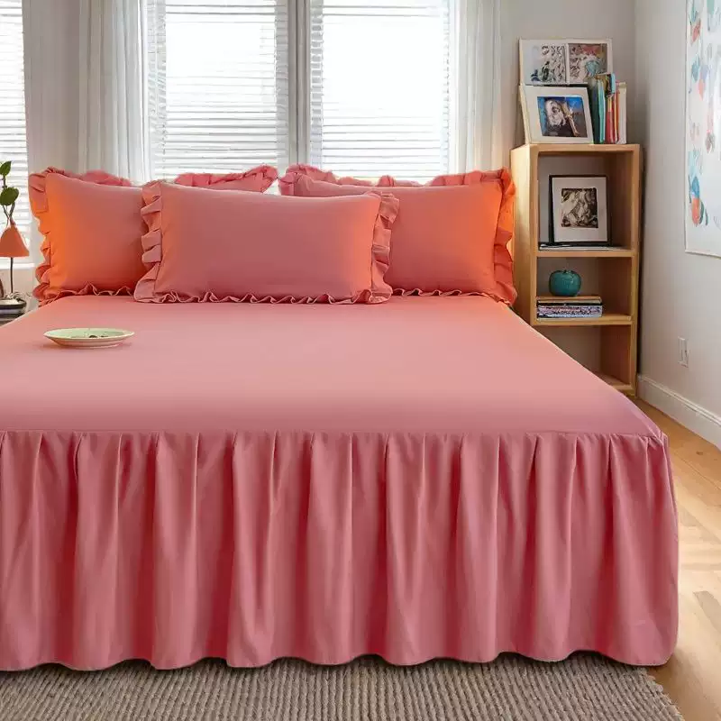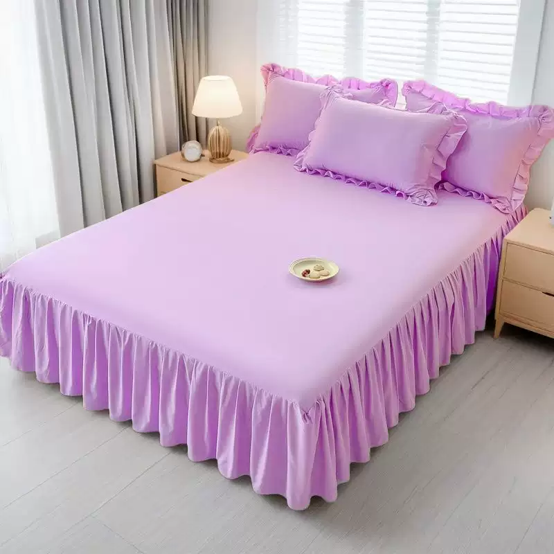 Yusenyi Korean style ins washed cotton all-season bedspread 100% solid color nude bed skirt sheet princess bedding purple 1 piece purple 100cmx200cm bed skirt and bed sheet integrated 100cmx200cm bed skirt and bed sheet integrated