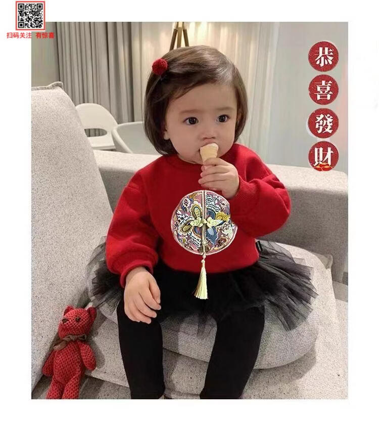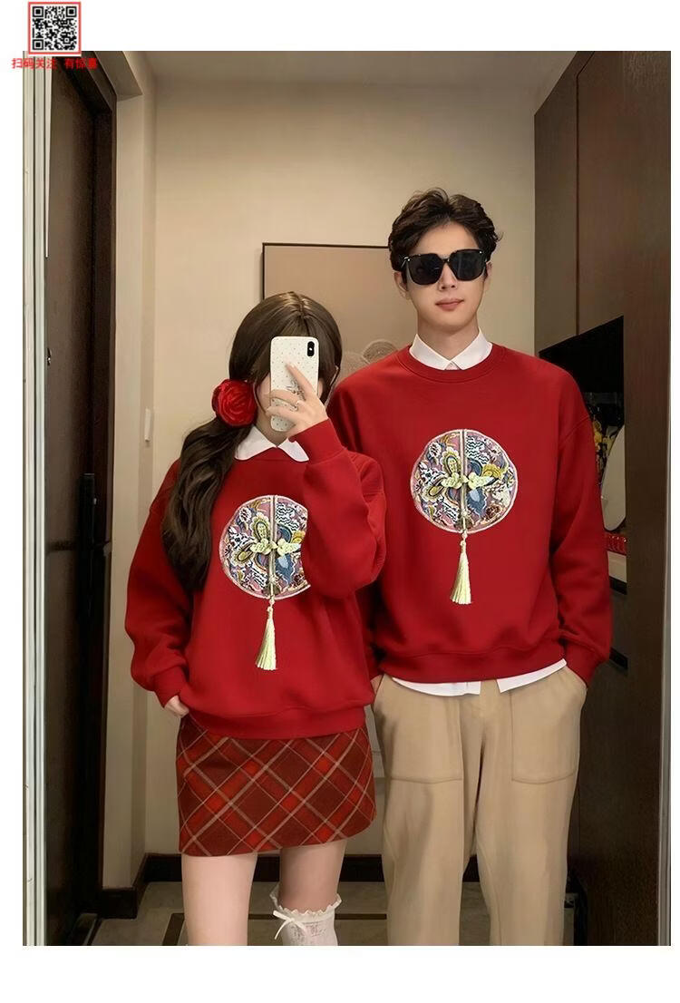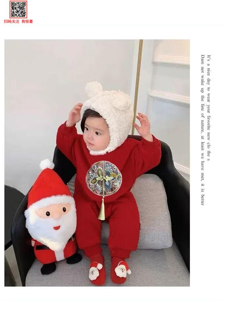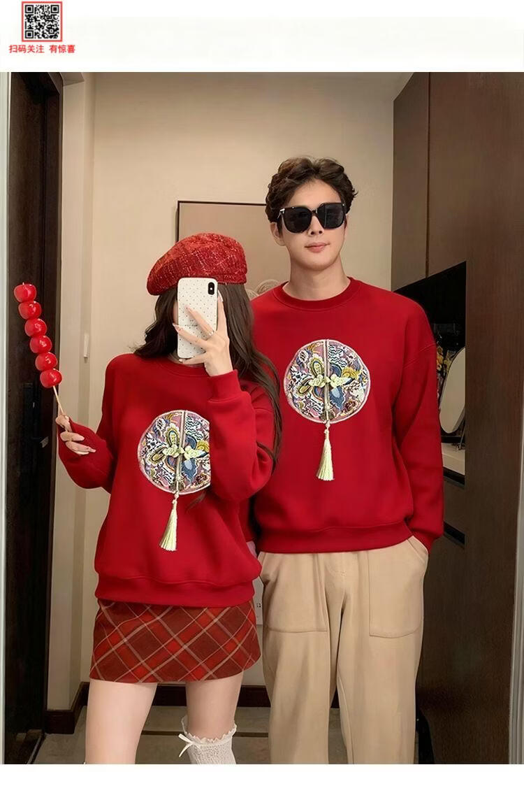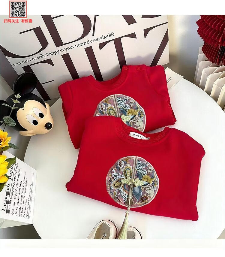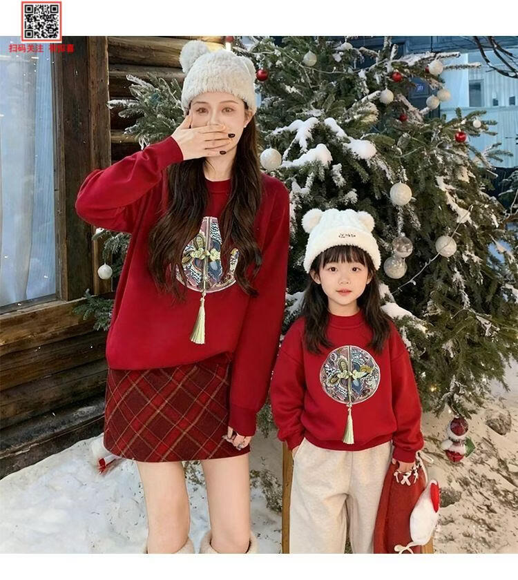 G.duck New Year's parent-child outfits for a family of three and four, autumn and winter red Chinese style sweatshirts for mother and daughter New Year's greetings clothes, big red (without velvet) 80 jumpsuit (romper suit)