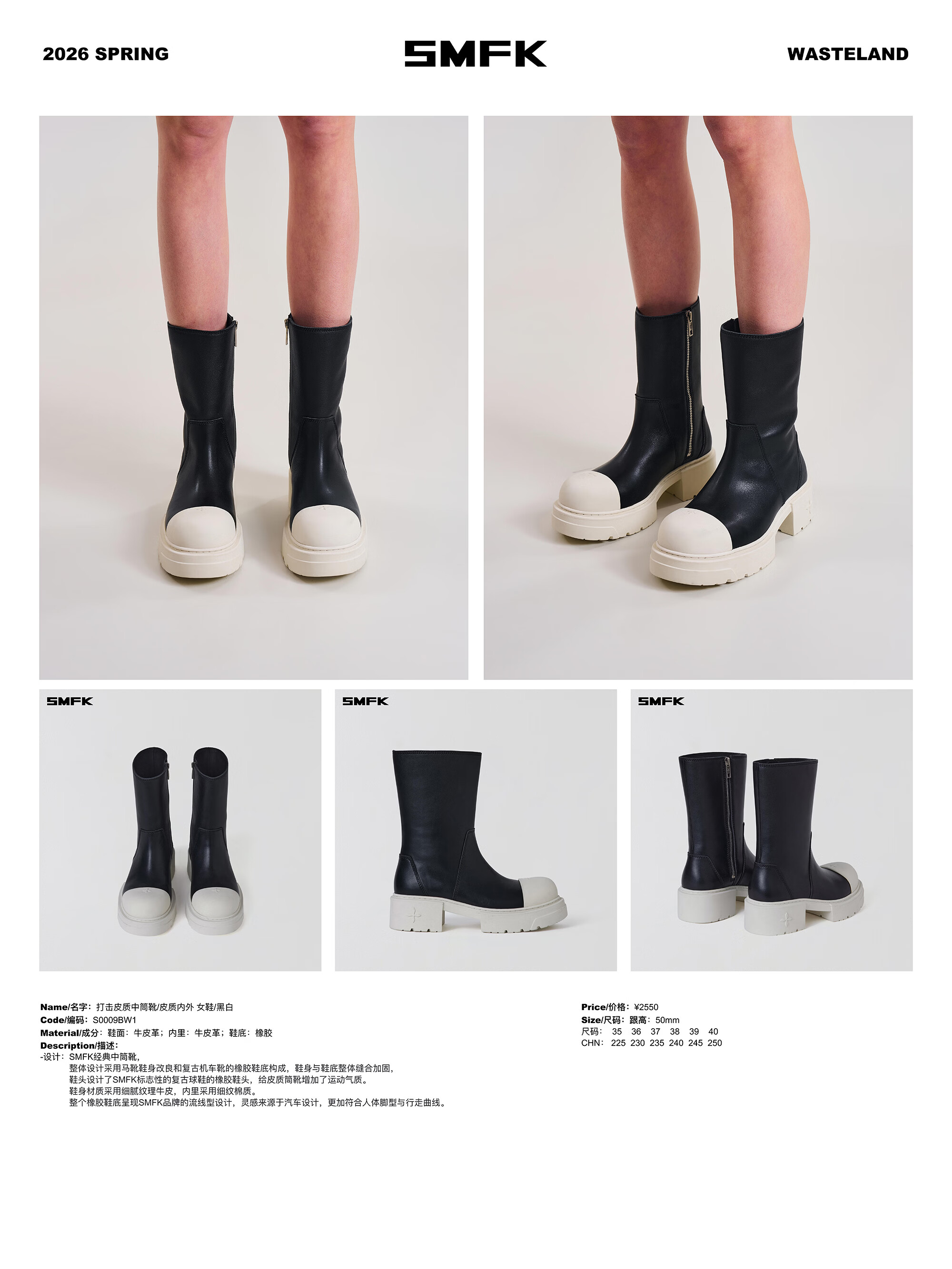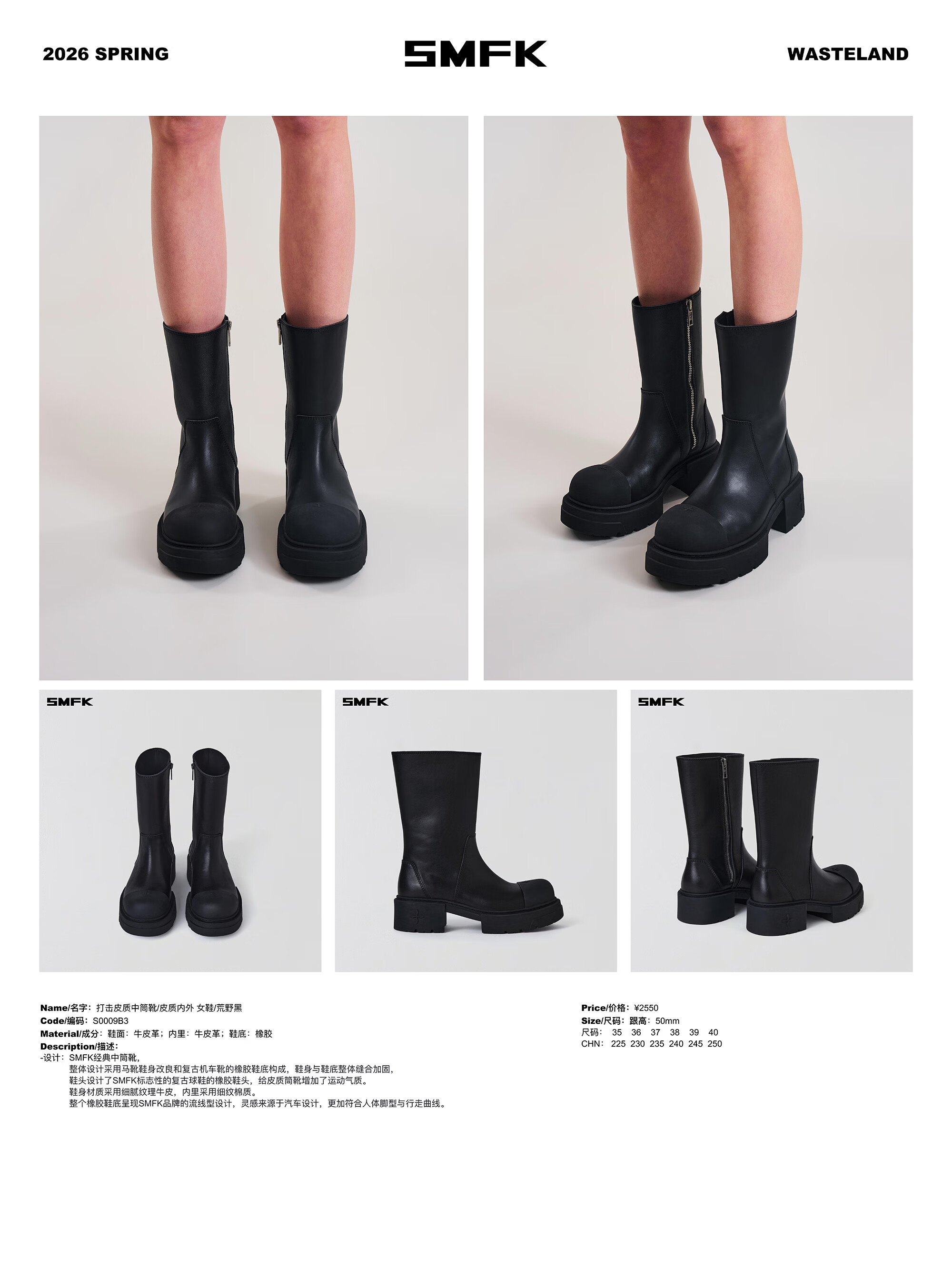 SMFKKICK BOOTS/LEATHER strike leather mid-calf boots/leather inside and outside S0009B3/BW1/W3 WILD BLACK/wild black 36