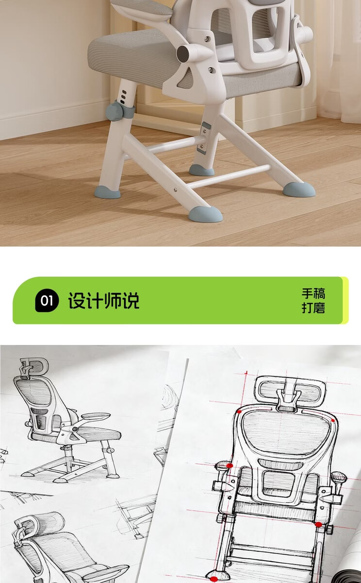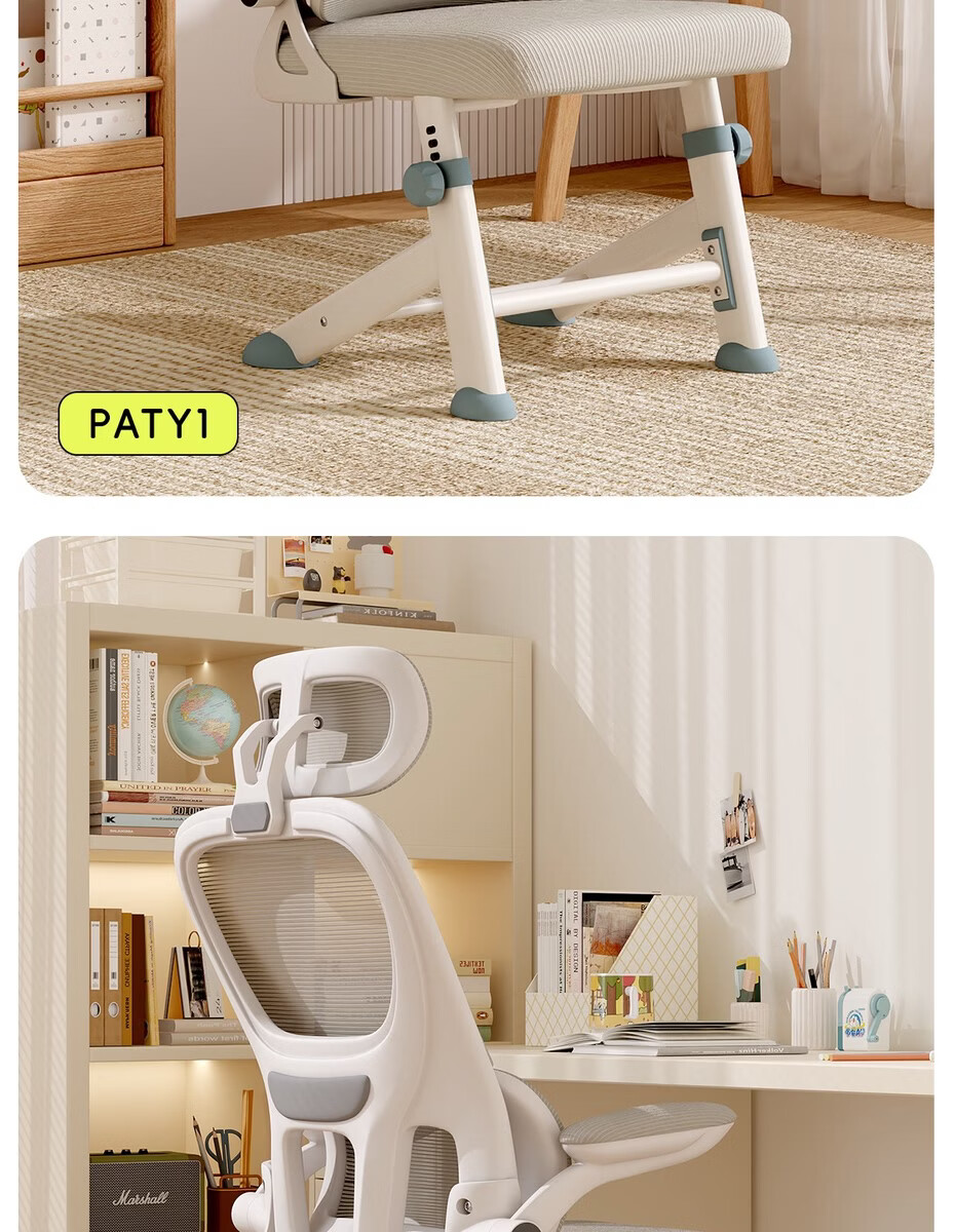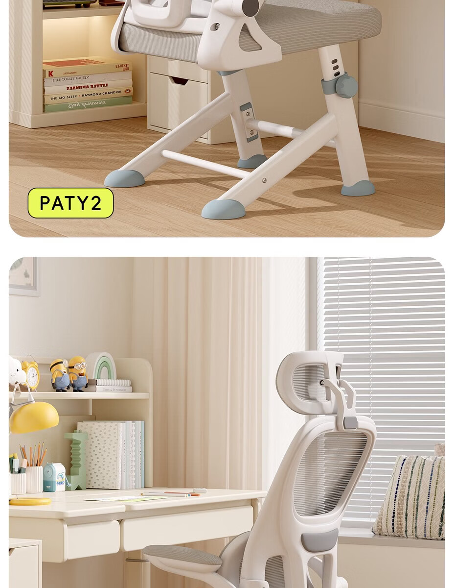 Fantasy children's learning chair lifts to correct sitting posture, special writing chair for primary school students and teenagers, waist support, home computer chair, automatic lumbar support, lifting legs, starry gray, 4D headrest, rotating armrests, high lift, steel feet, footrests