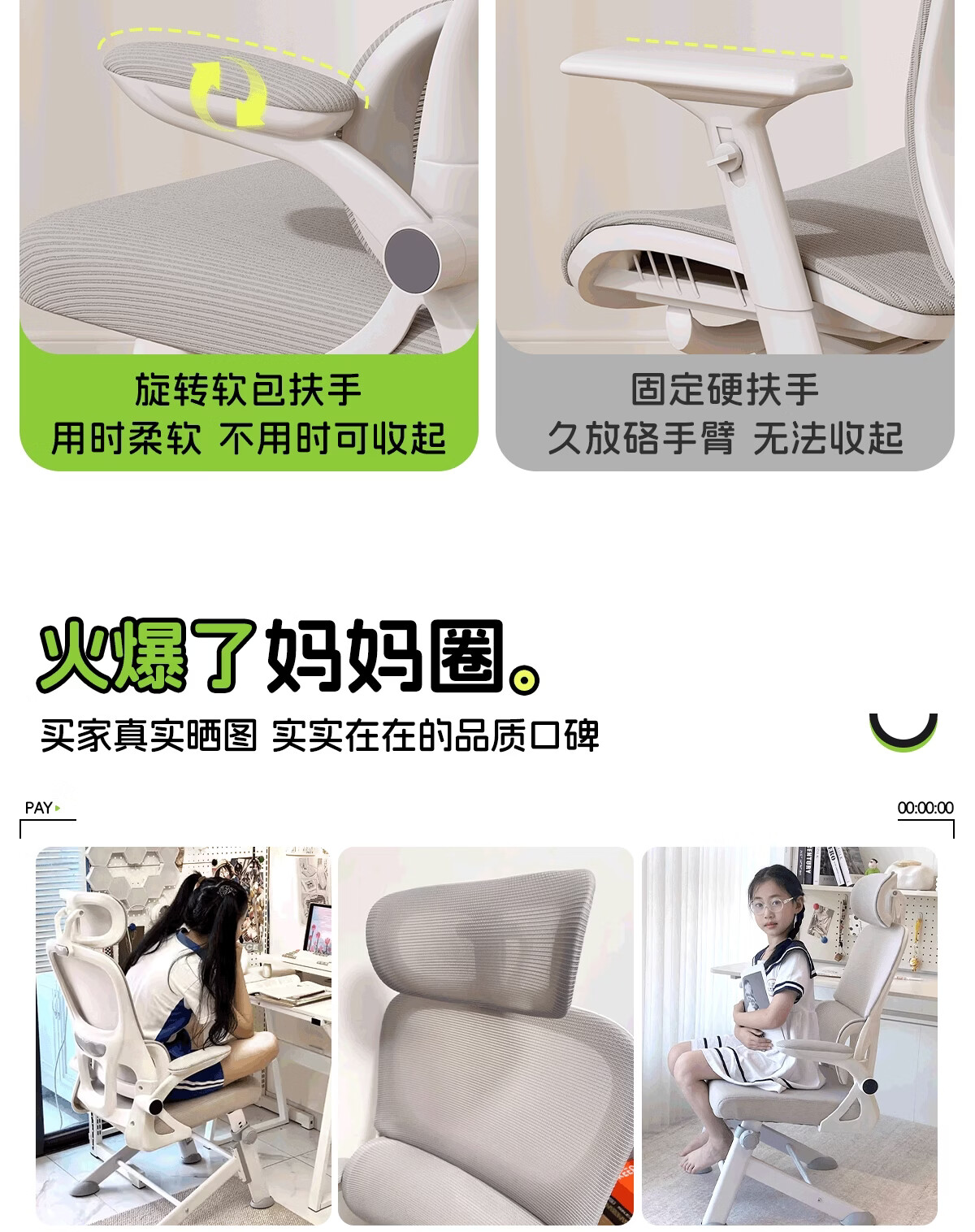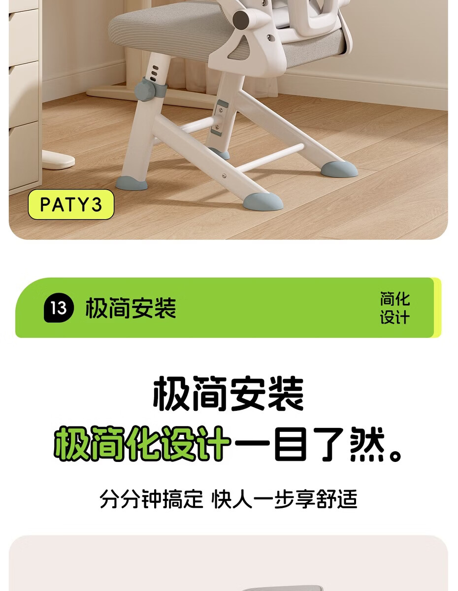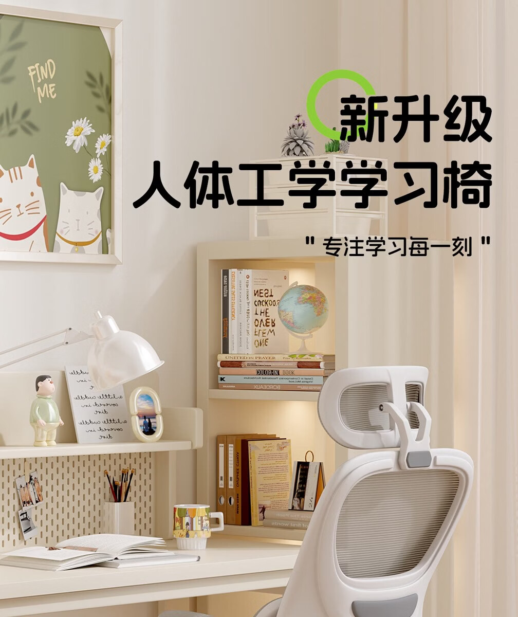 Fantasy children's learning chair lifts to correct sitting posture, special writing chair for primary school students and teenagers, waist support, home computer chair, automatic lumbar support, lifting legs, starry gray, 4D headrest, rotating armrests, high lift, steel feet, footrests