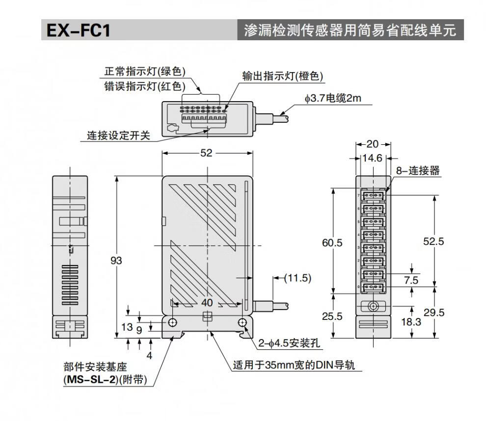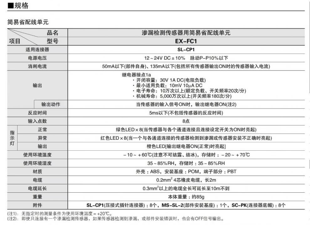 Leak detection sensor EX-F71/F72/F61/F62 simple wiring-saving wire control unit EX-FC1_simple wiring-saving unit