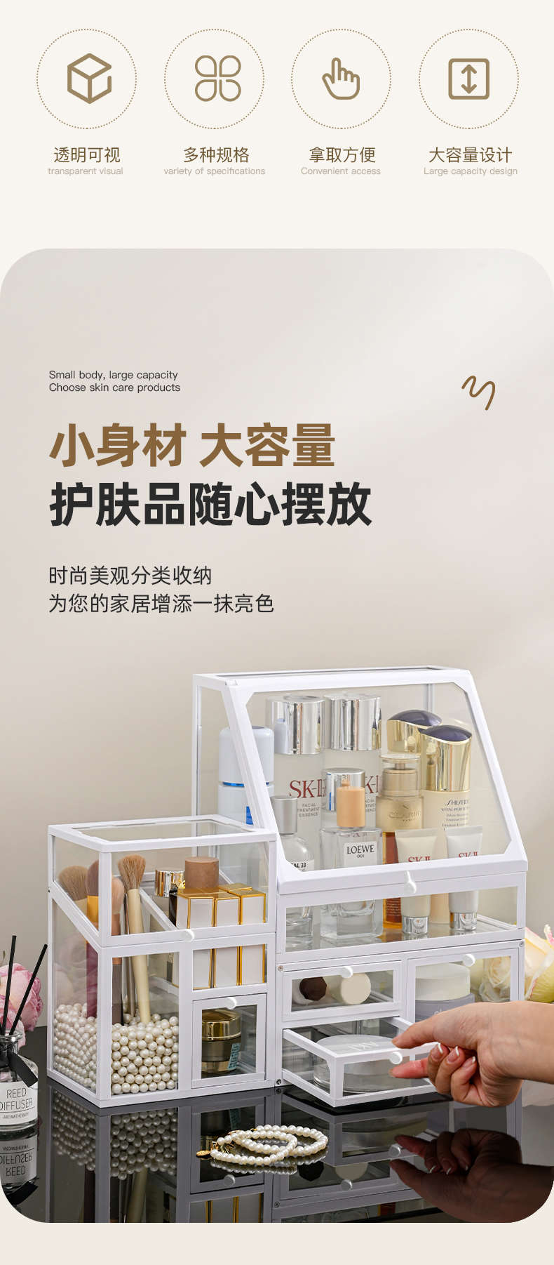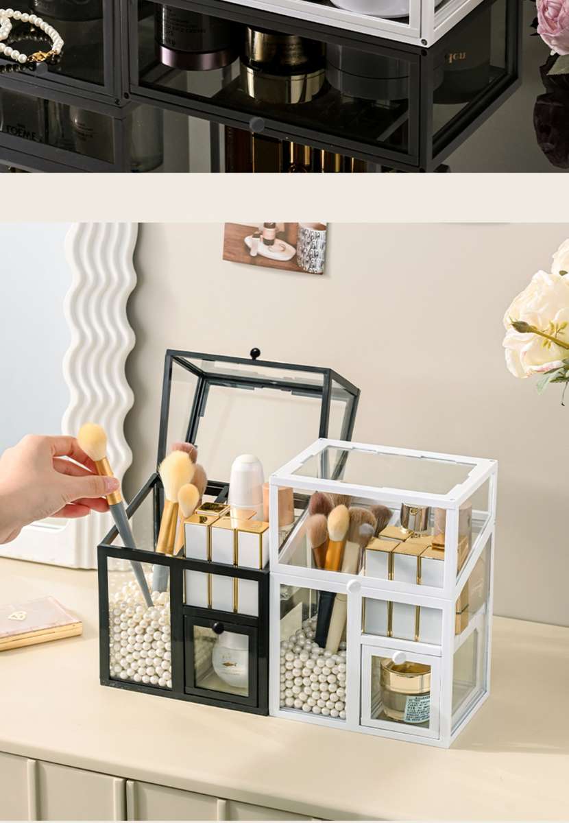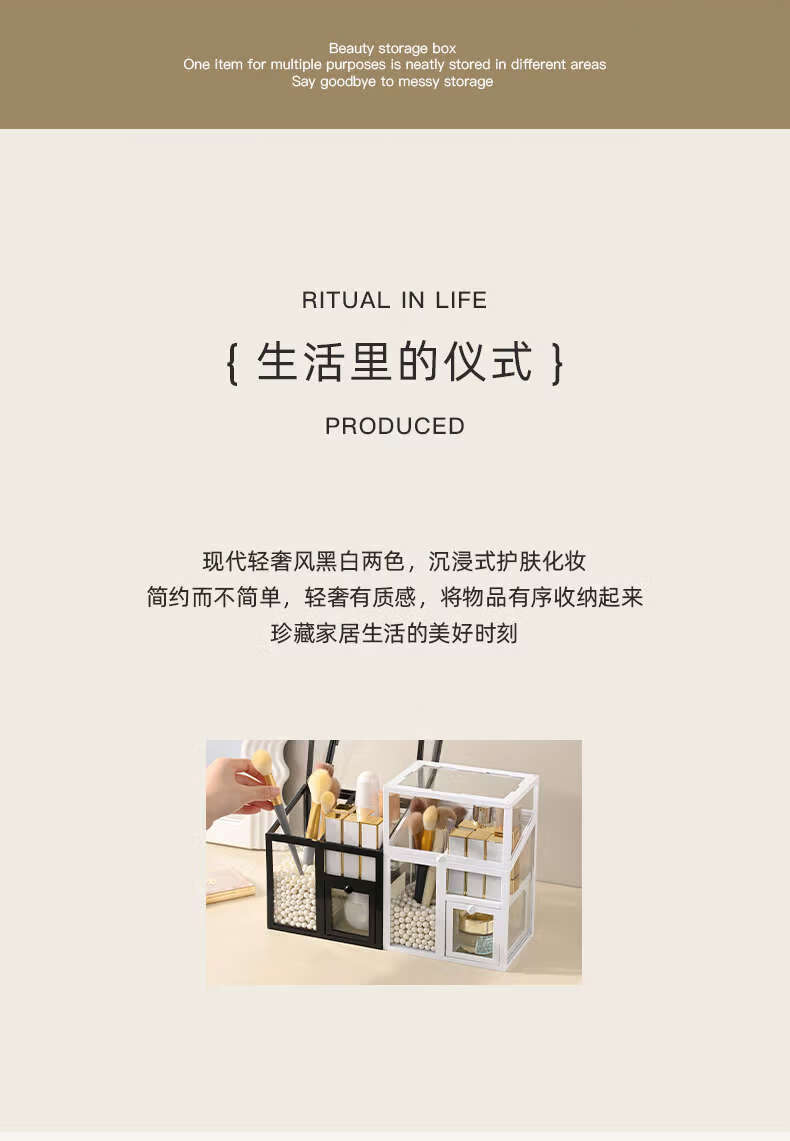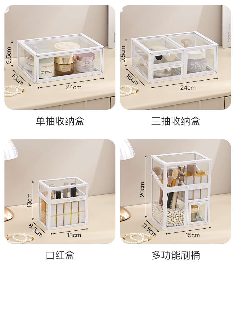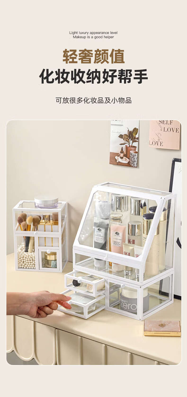 Yusenyi Desktop Storage Box High-end Sensory Dressing Table Skin Care Product Storage Rack Desktop Eyebrow Pen Brush Bucket Set of Two (Dust-proof Top with Three Drawers)