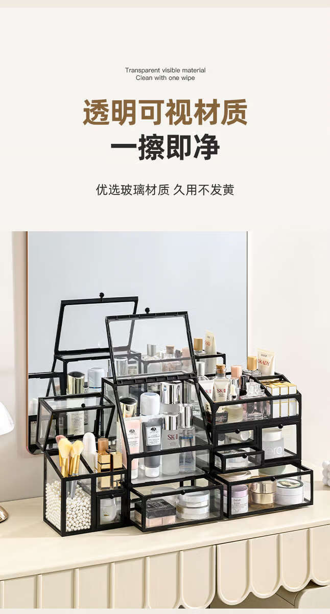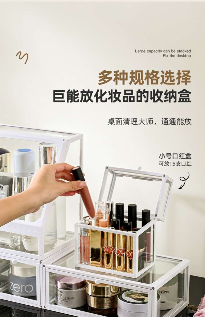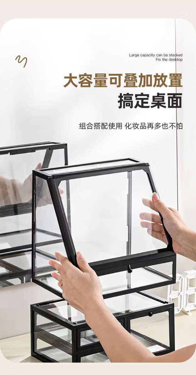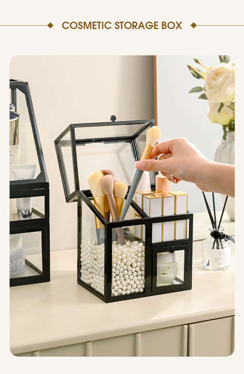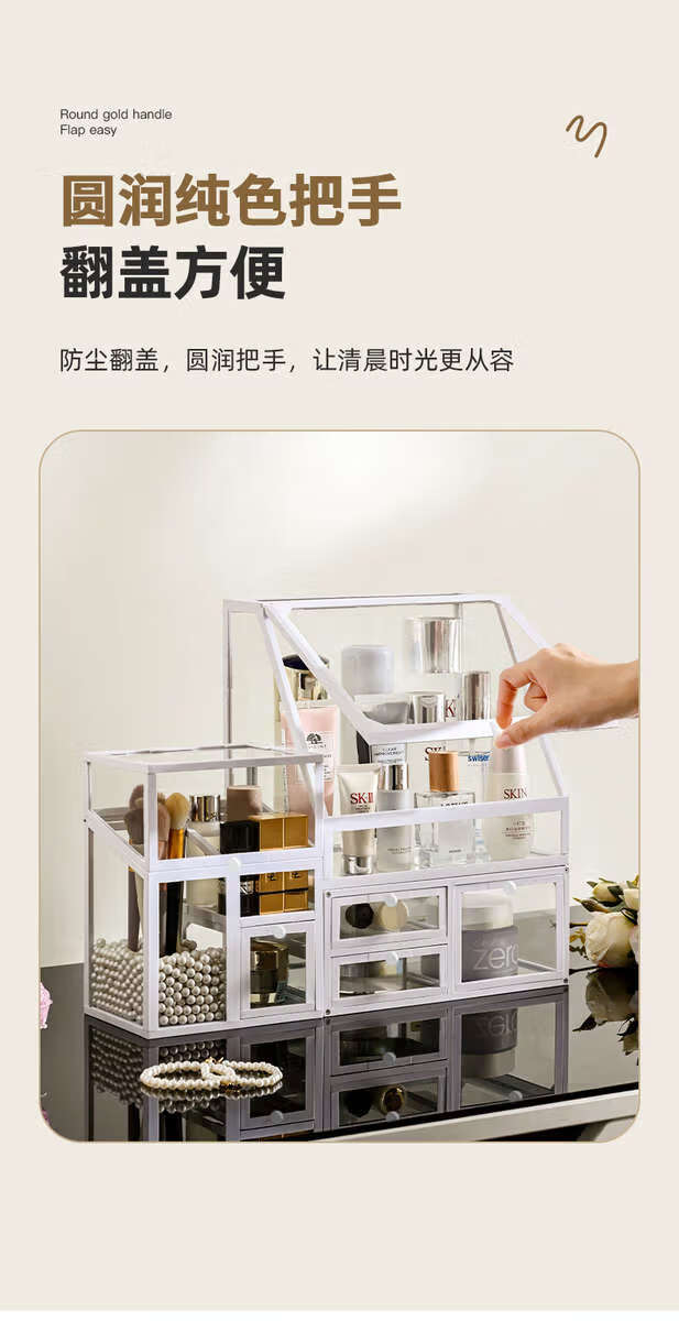 Yusenyi Desktop Storage Box High-end Sensory Dressing Table Skin Care Product Storage Rack Desktop Eyebrow Pen Brush Bucket Set of Two (Dust-proof Top with Three Drawers)