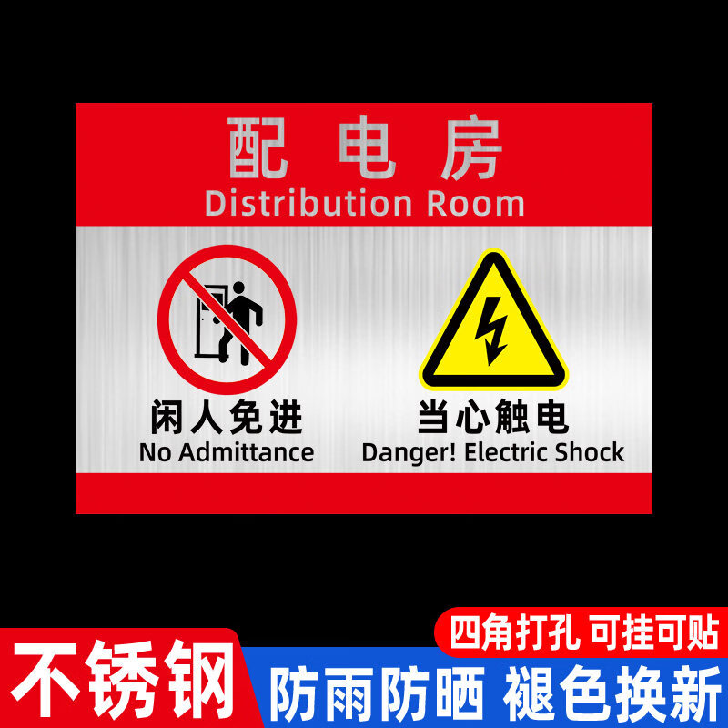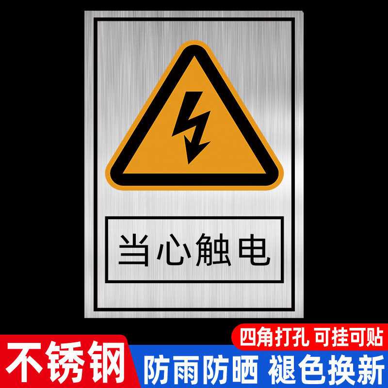 Stainless steel electrical hazard warning sign, machinery equipment sticker, beware of electric shock warning sign, electric construction attention safety metal sign, cable sign, aluminum plate prompt sign, 3C electrical hazard warning sign 40x30cm