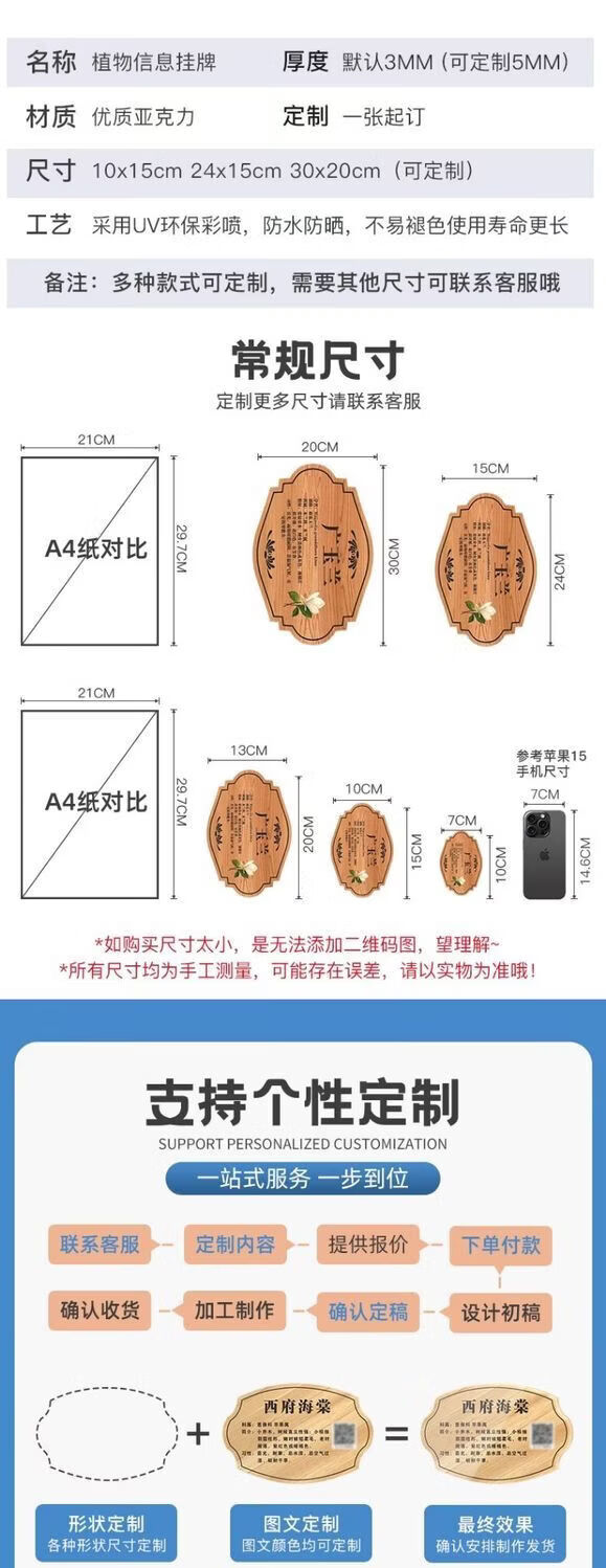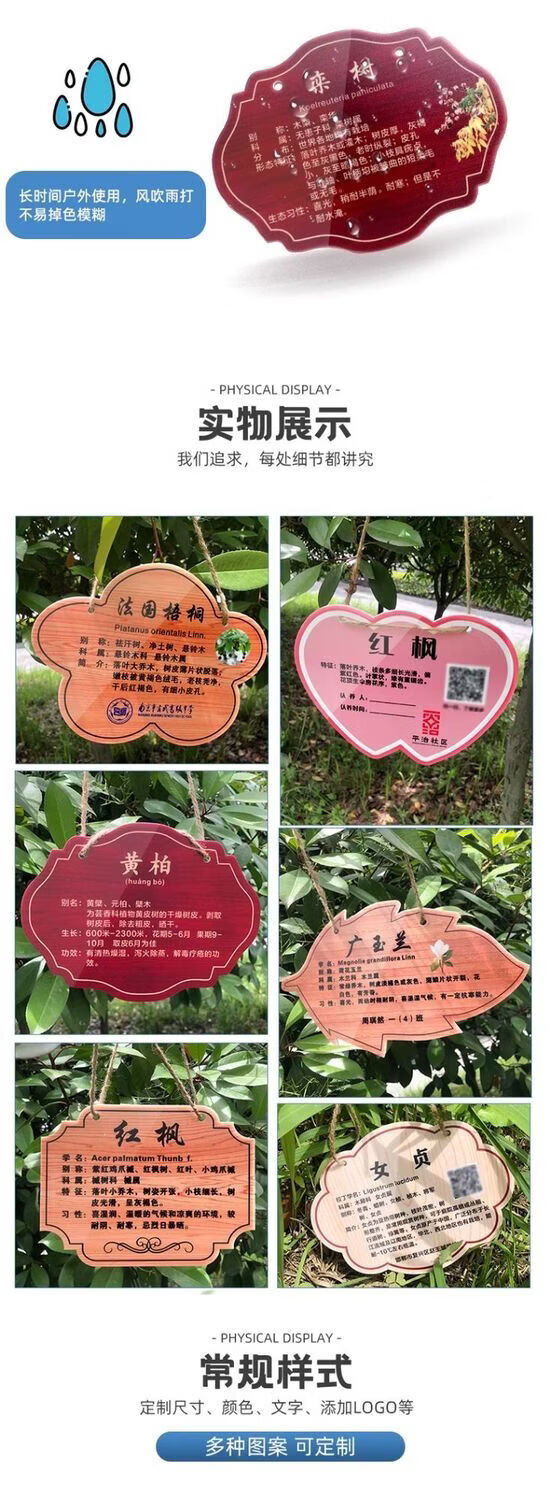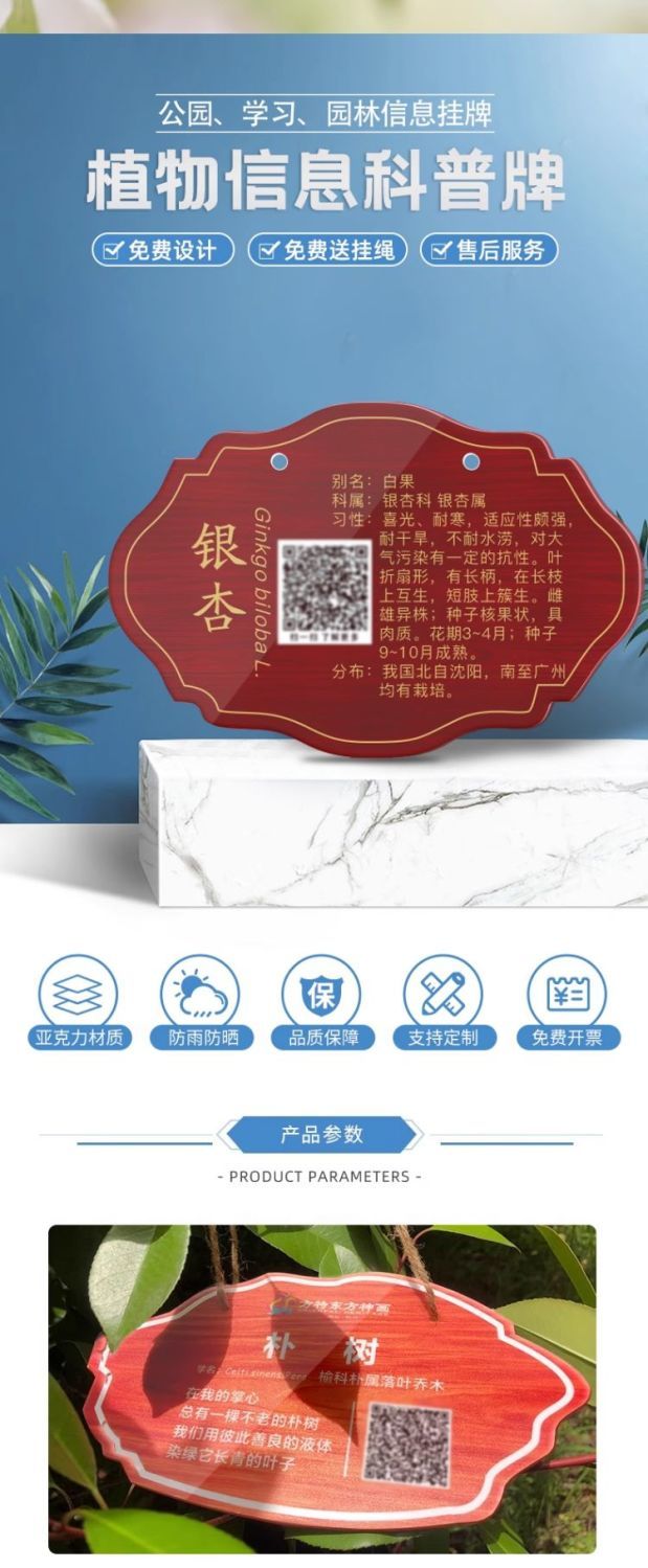 树牌挂牌植物介绍定制物业树木铭牌植树牌树木介绍标识牌亚克力 SP-38 30x20cm