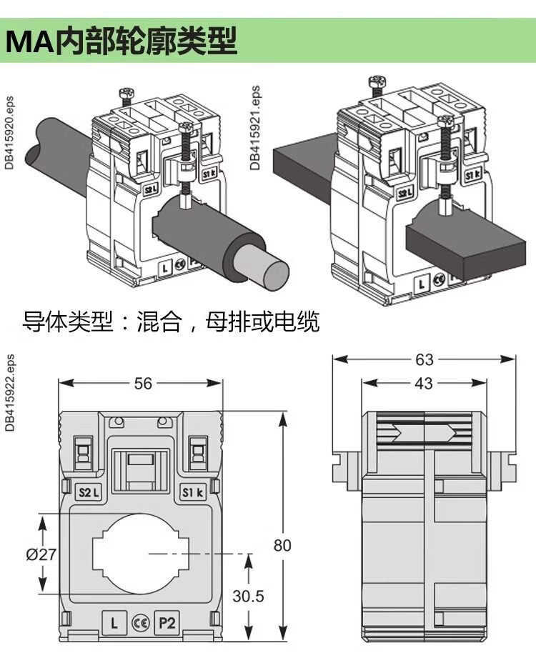 Schneider current transformer CT current ratio 150/5 ETSECT5015 cable or busbar METSECT5MA025_current ratio 250_5_27