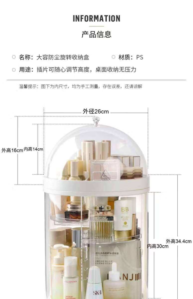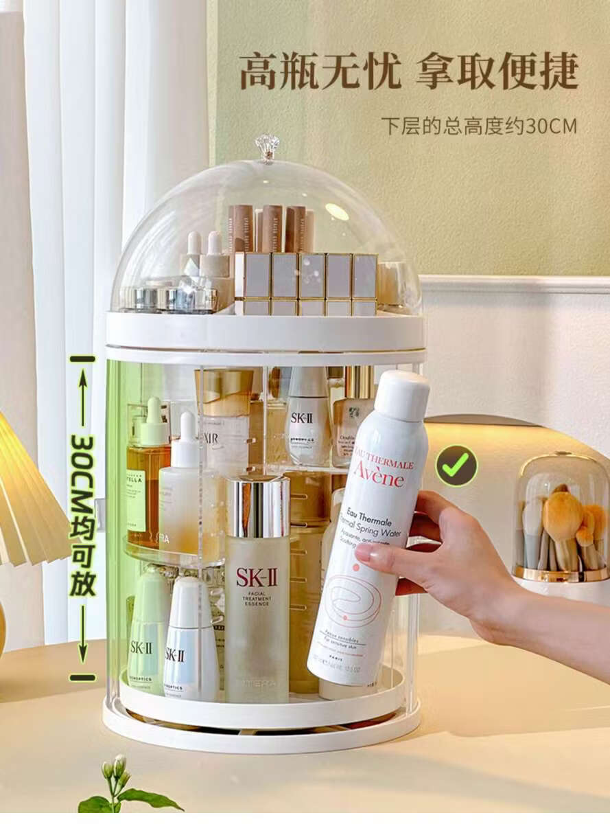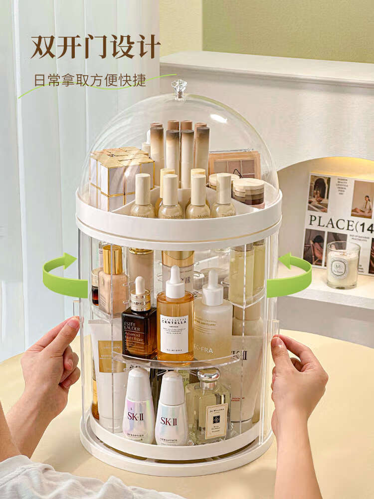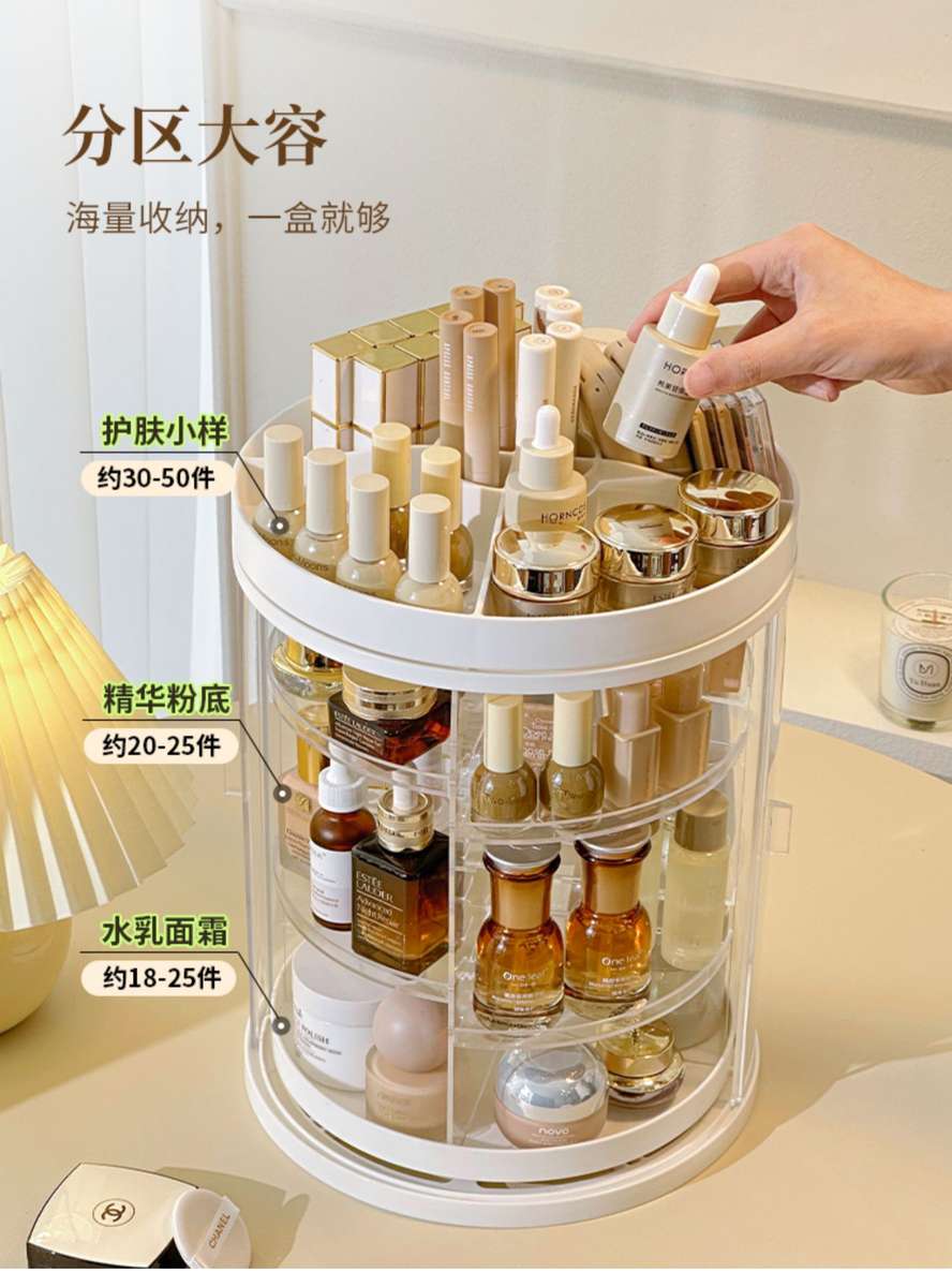 Yusenyi dust-proof rotating product storage box large-capacity desktop product storage rack skin care product layered shelf household supplies collection dust-proof rotating model (4 small partitions) + with lid SF0049G