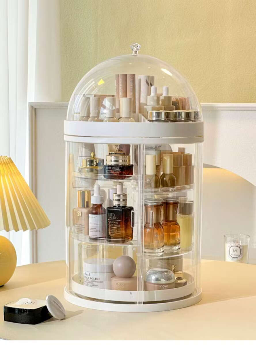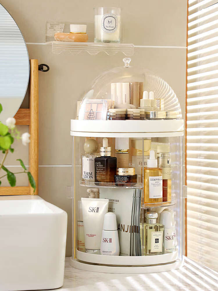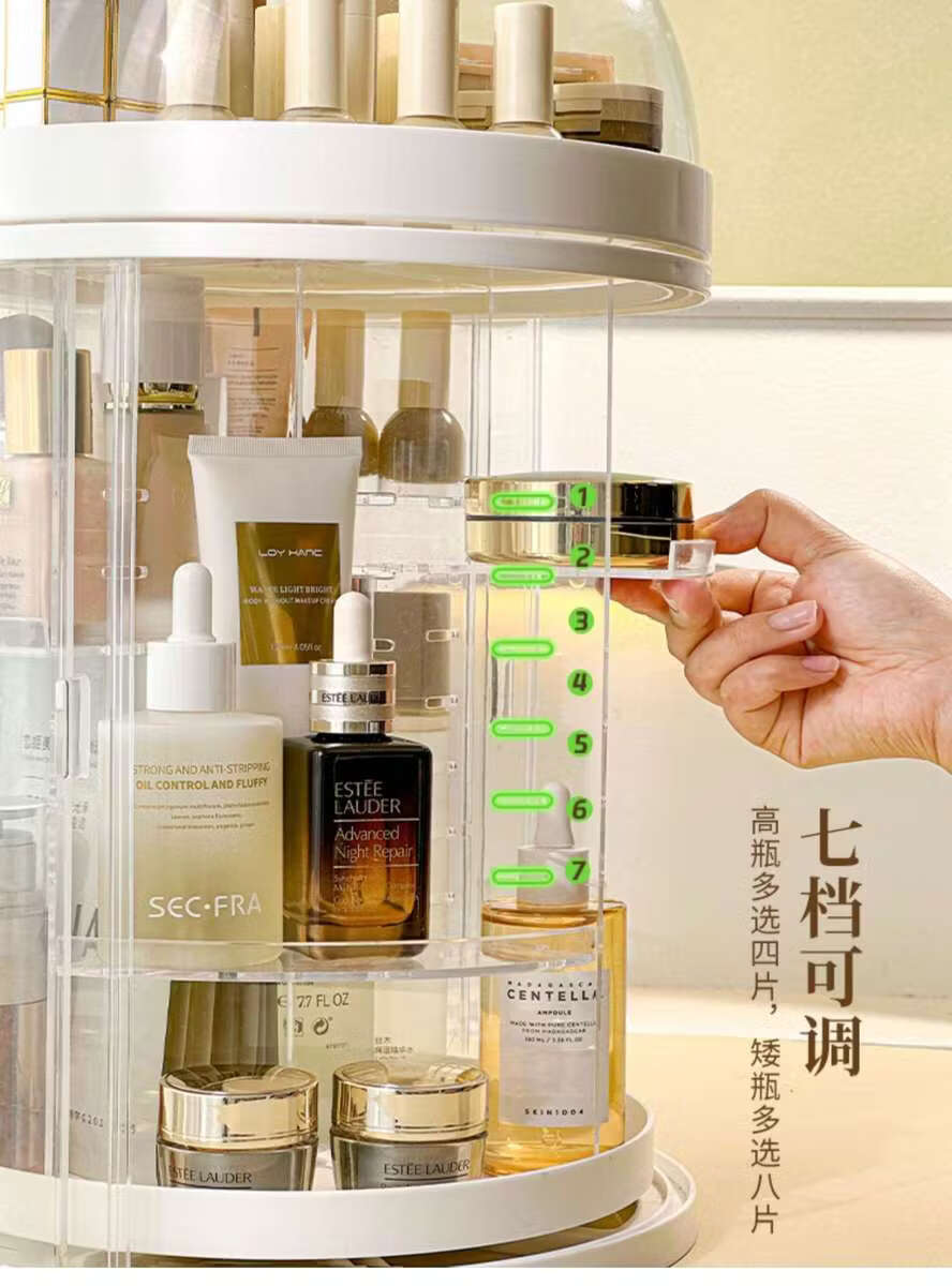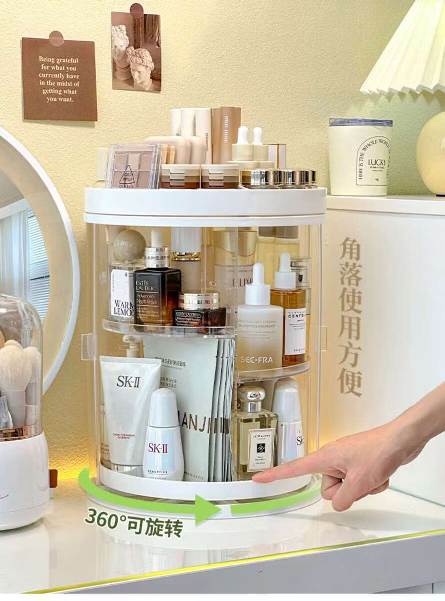 Yusenyi dust-proof rotating product storage box large-capacity desktop product storage rack skin care product layered shelf household supplies collection dust-proof rotating model (4 small partitions) + with lid SF0049G