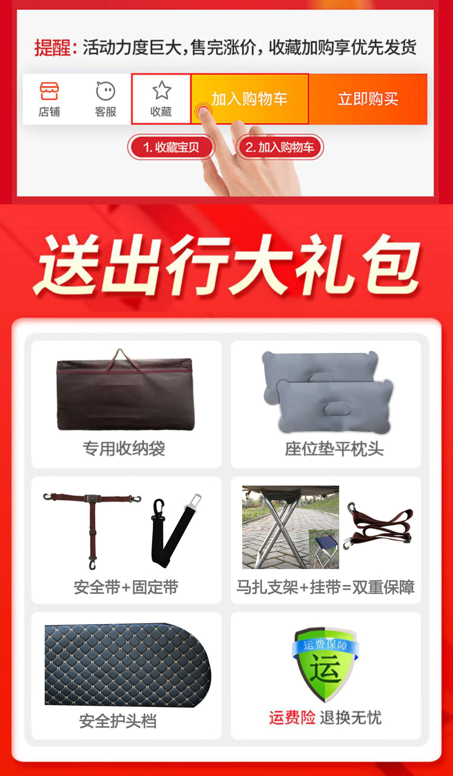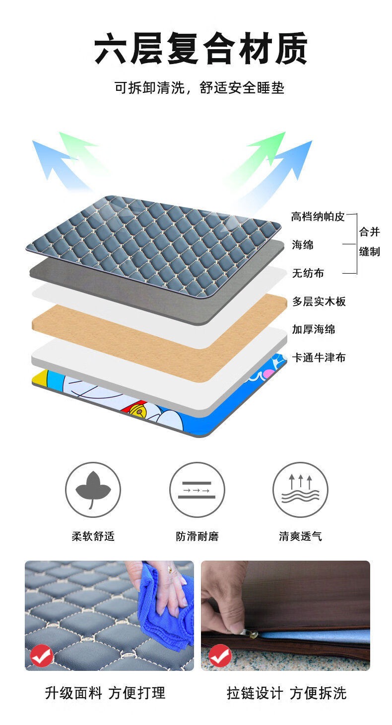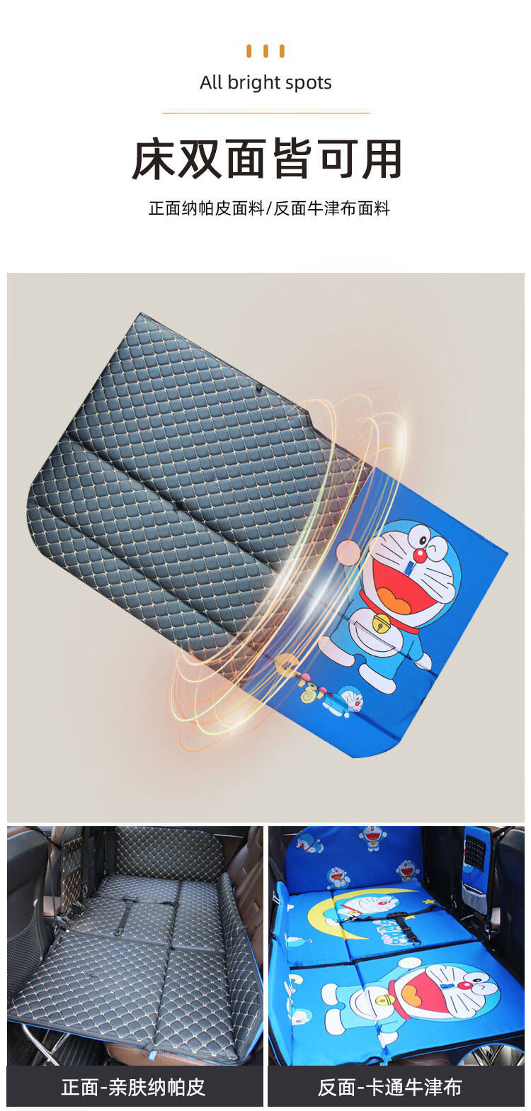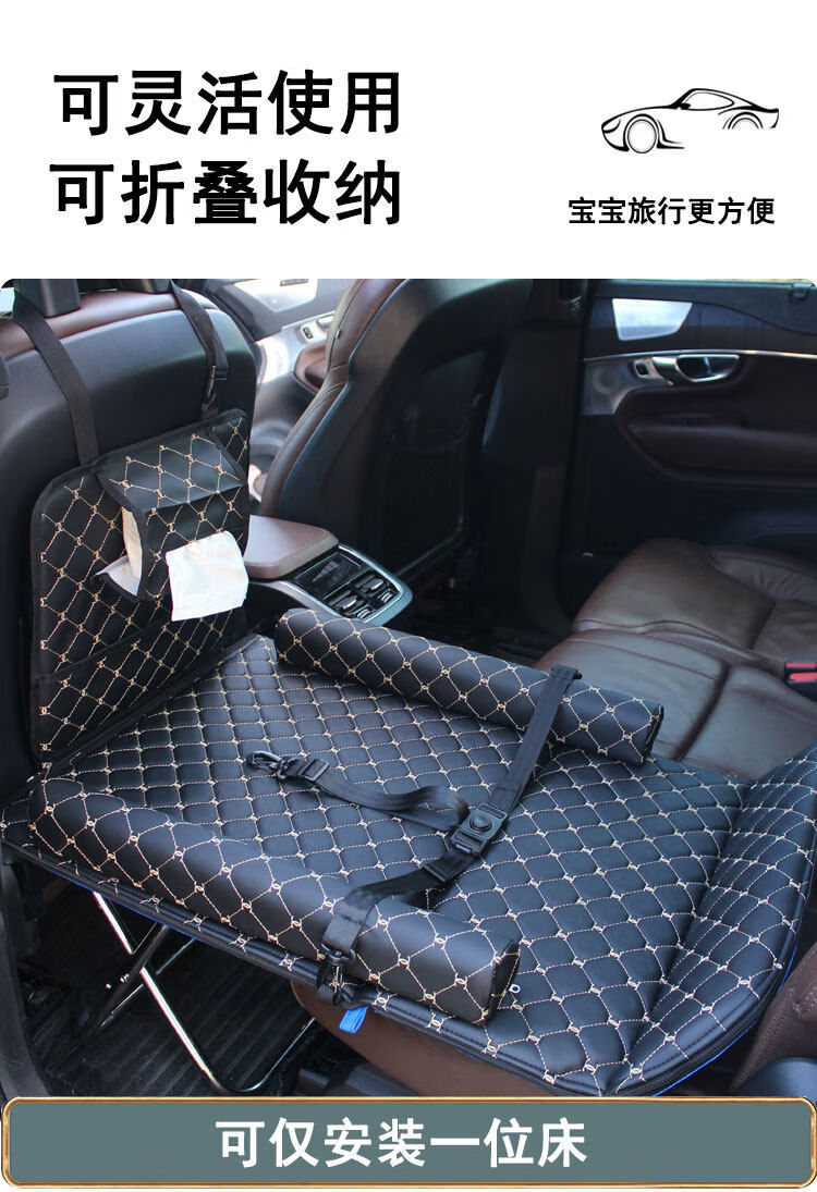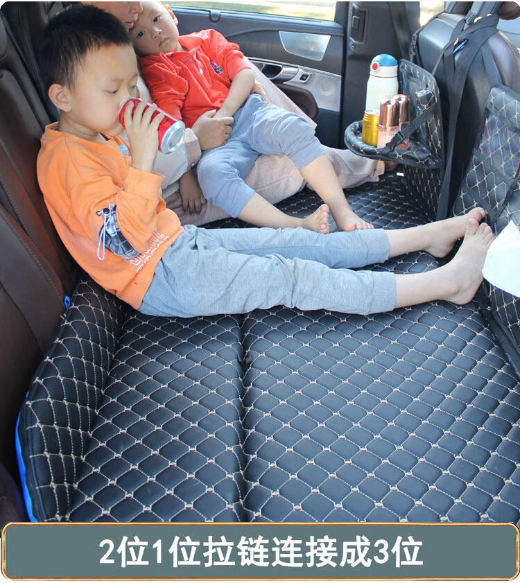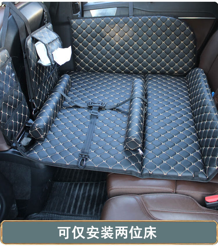 Car rear seat folding bed, car rear sleeping mat, children's car travel mattress, stroller sleeping artifact, double-sided standard French classic leather black and blue fat Oxford cloth + Mazar