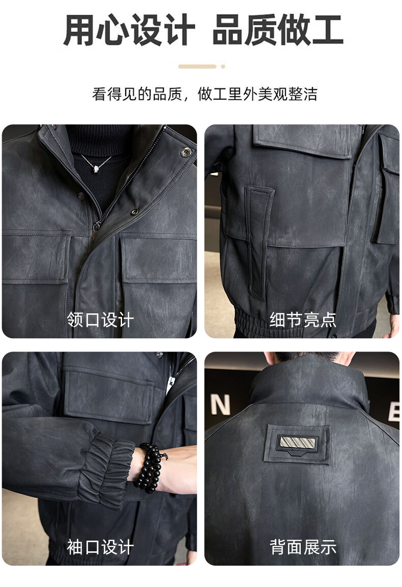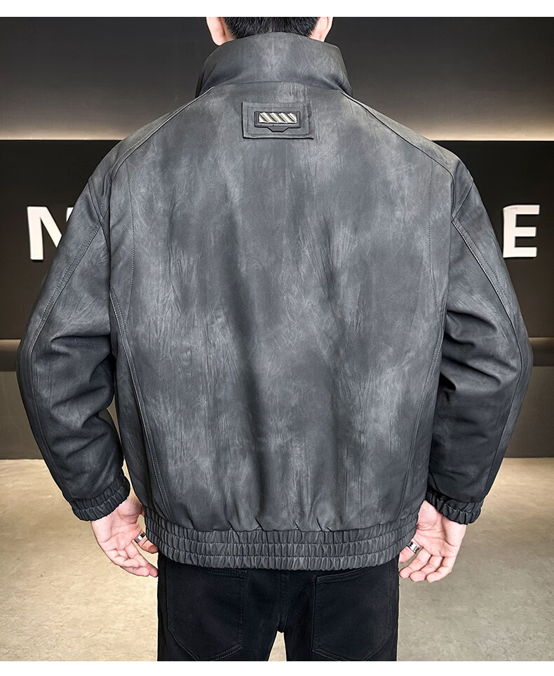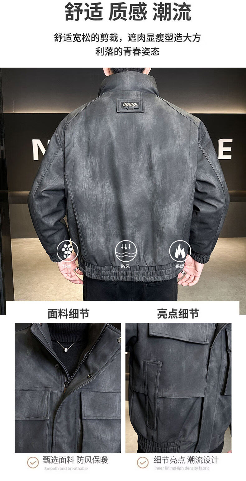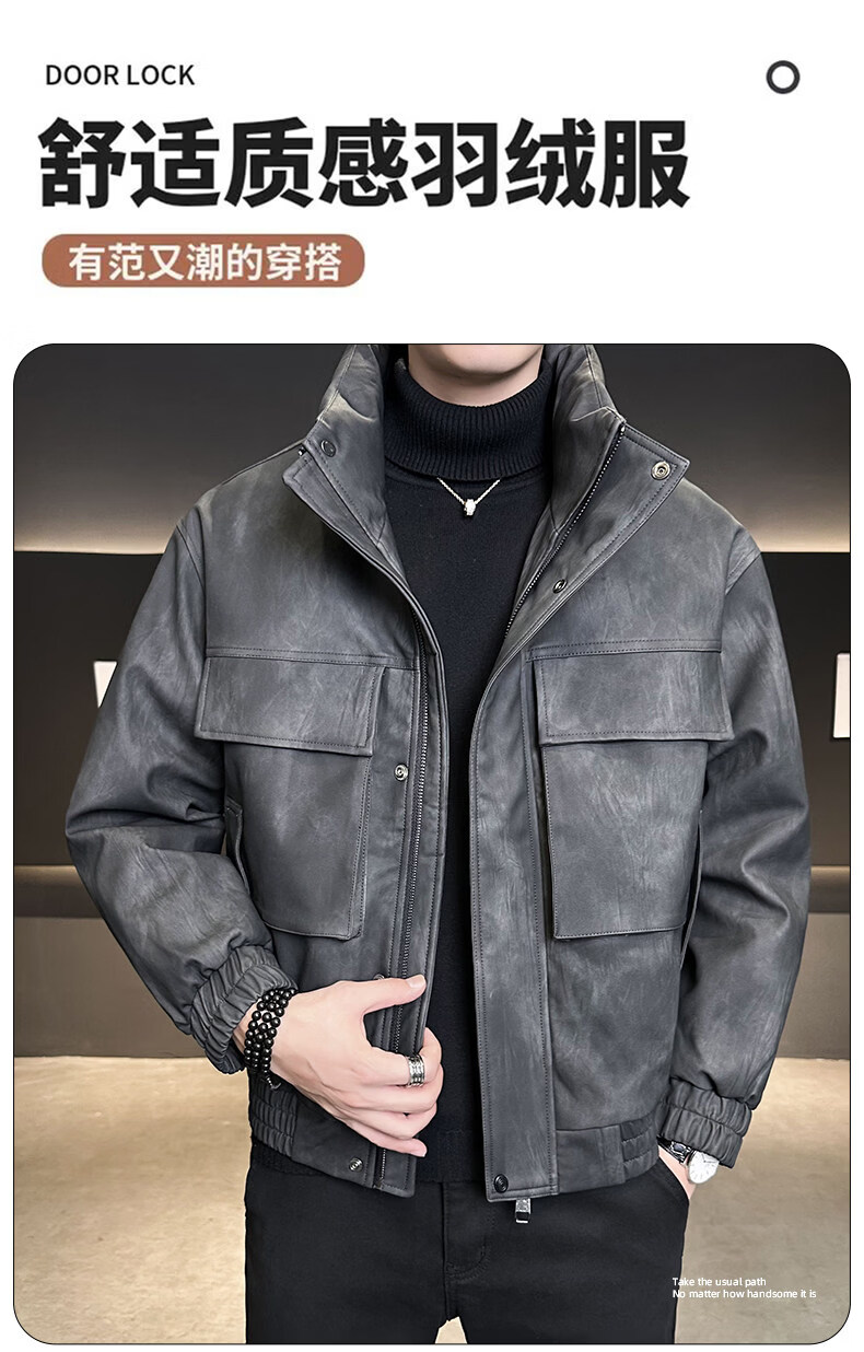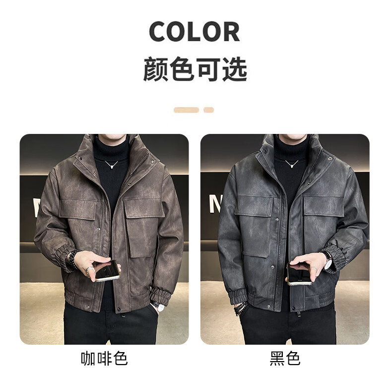 JEEP SPIRIT Leather Down Jacket Men's Winter Stand Collar 2025 New Casual Big Pocket American Retro Thickened Winter Jacket Brown M 100-130Jin Jin is equal to about 0.5 kg