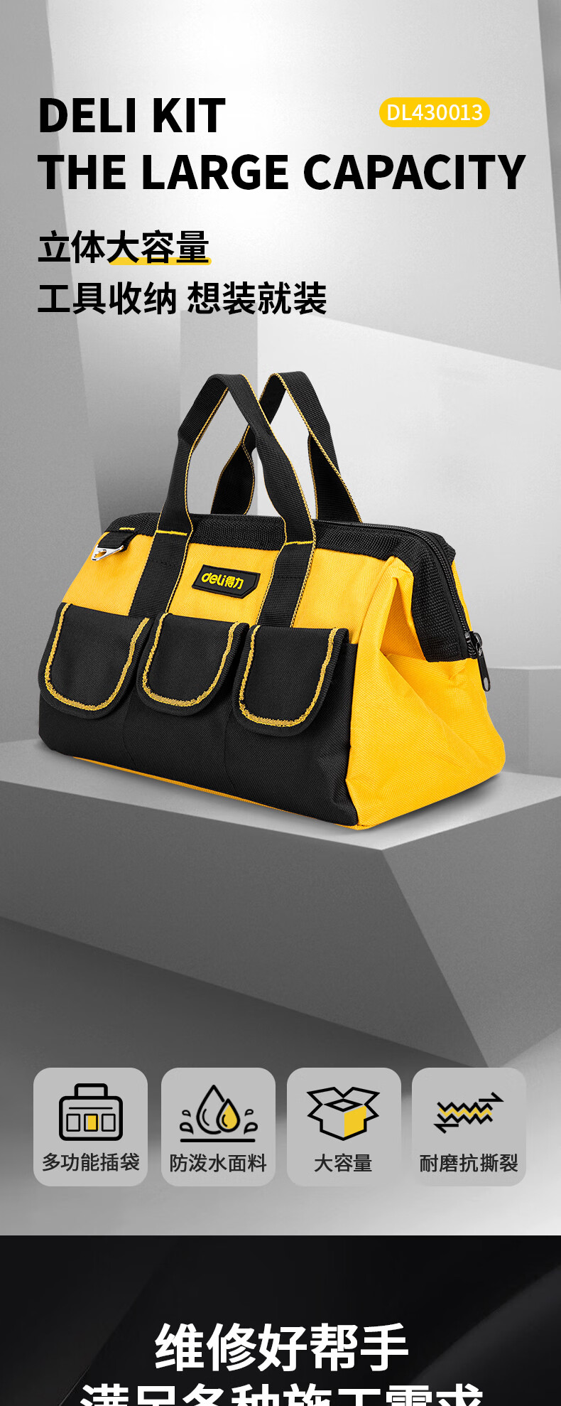 Sailoto multifunctional portable tool bag, sturdy and durable electrician canvas thickened tool bag, repair storage bag, 16-inch double-layer tool bag 400*180*280m