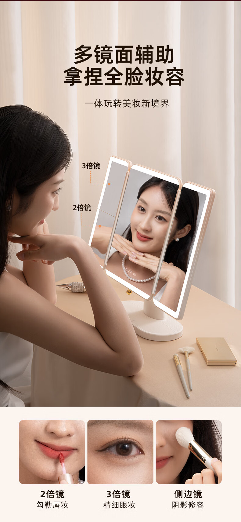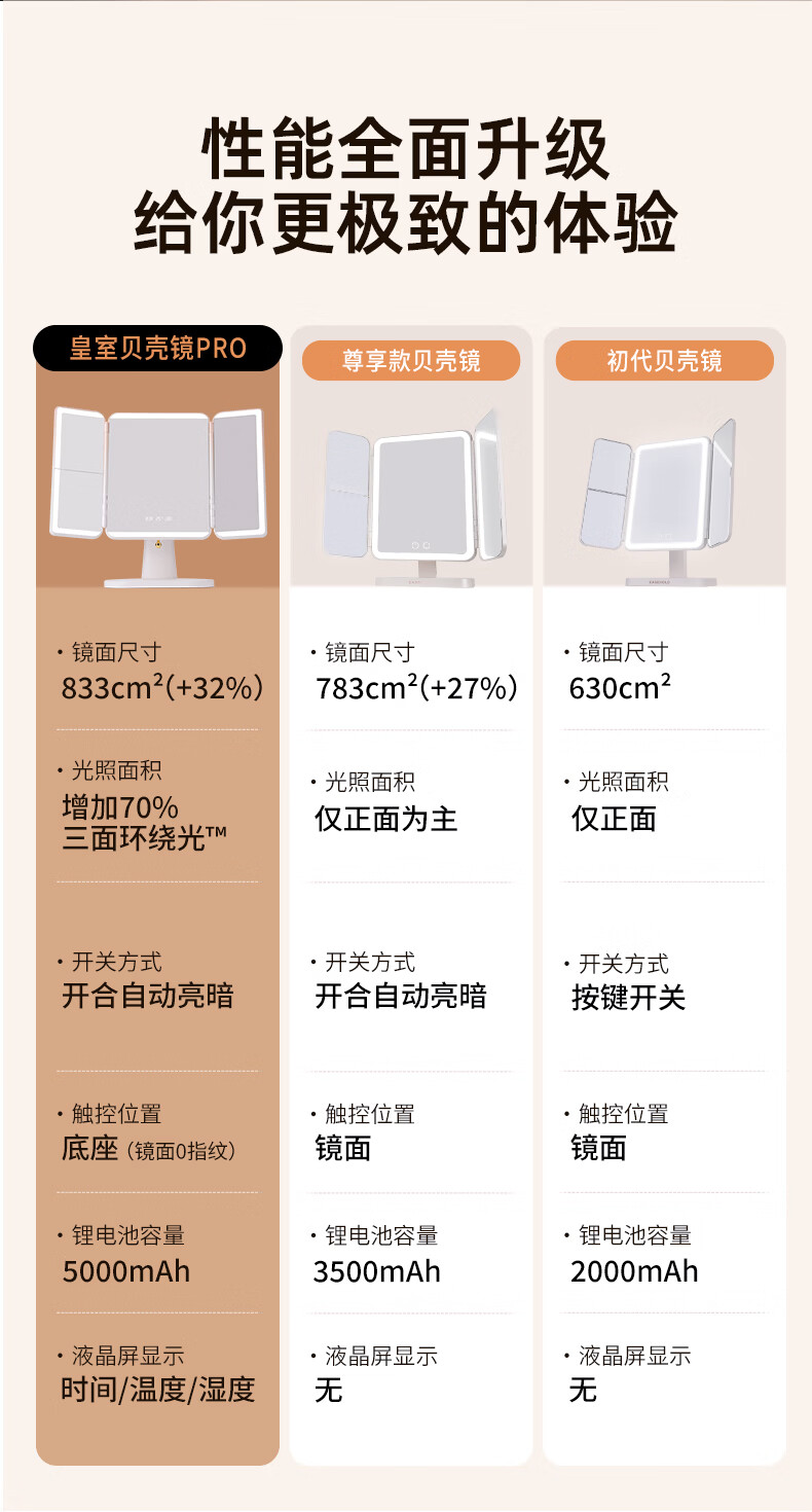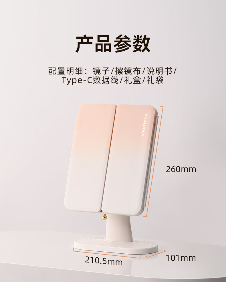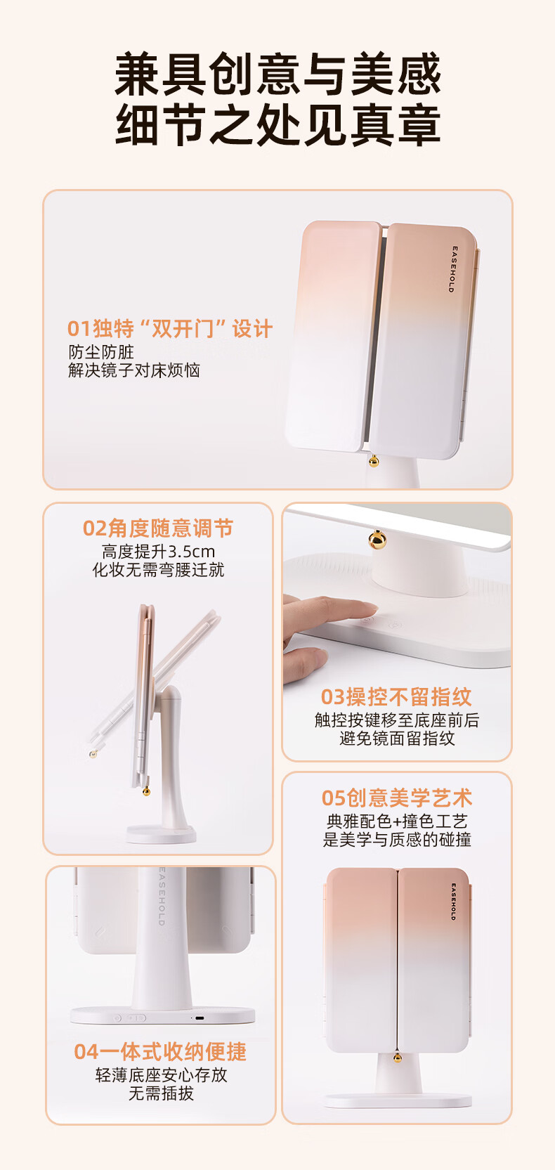 EASEHOLD Yijing Royal Shell Makeup Mirror Smart Desktop Desktop Lighted Mirror Dressing Royal Shell Mirror/Sunset Orange Light HD Mirror + 5000 mAh + 3 Surround Lights + 1