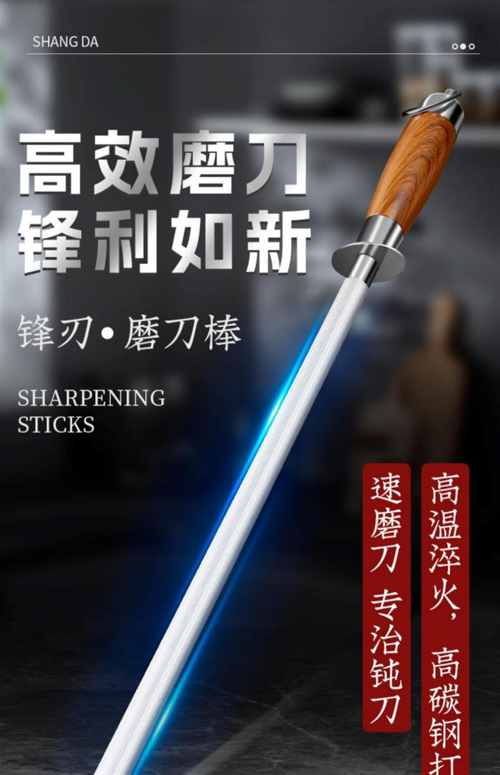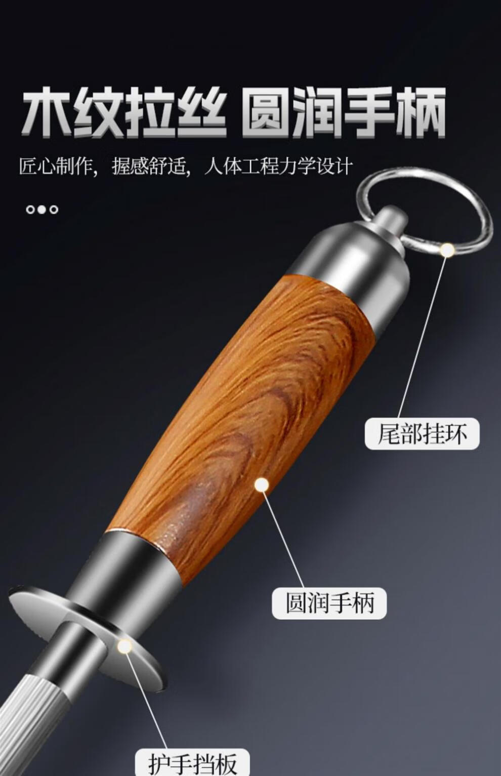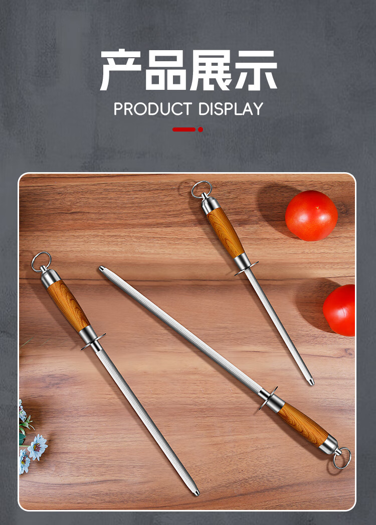 Sailuto Grinding Rod Steel Rod Butcher's Household Grinding Stick Butcher's Shop Fine-grained 10-inch Black Pearl Grinding Rod - Aluminum Alloy Handle - Flat Rod