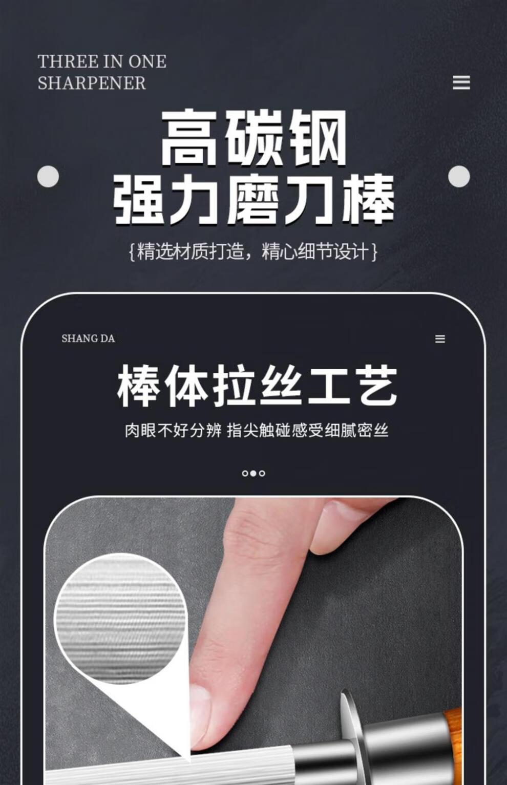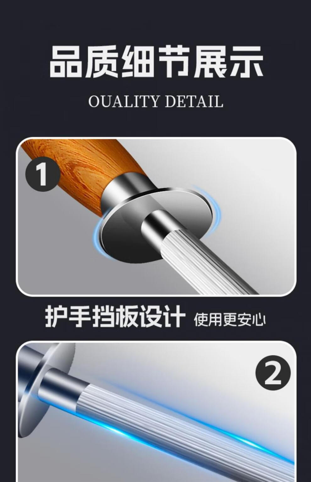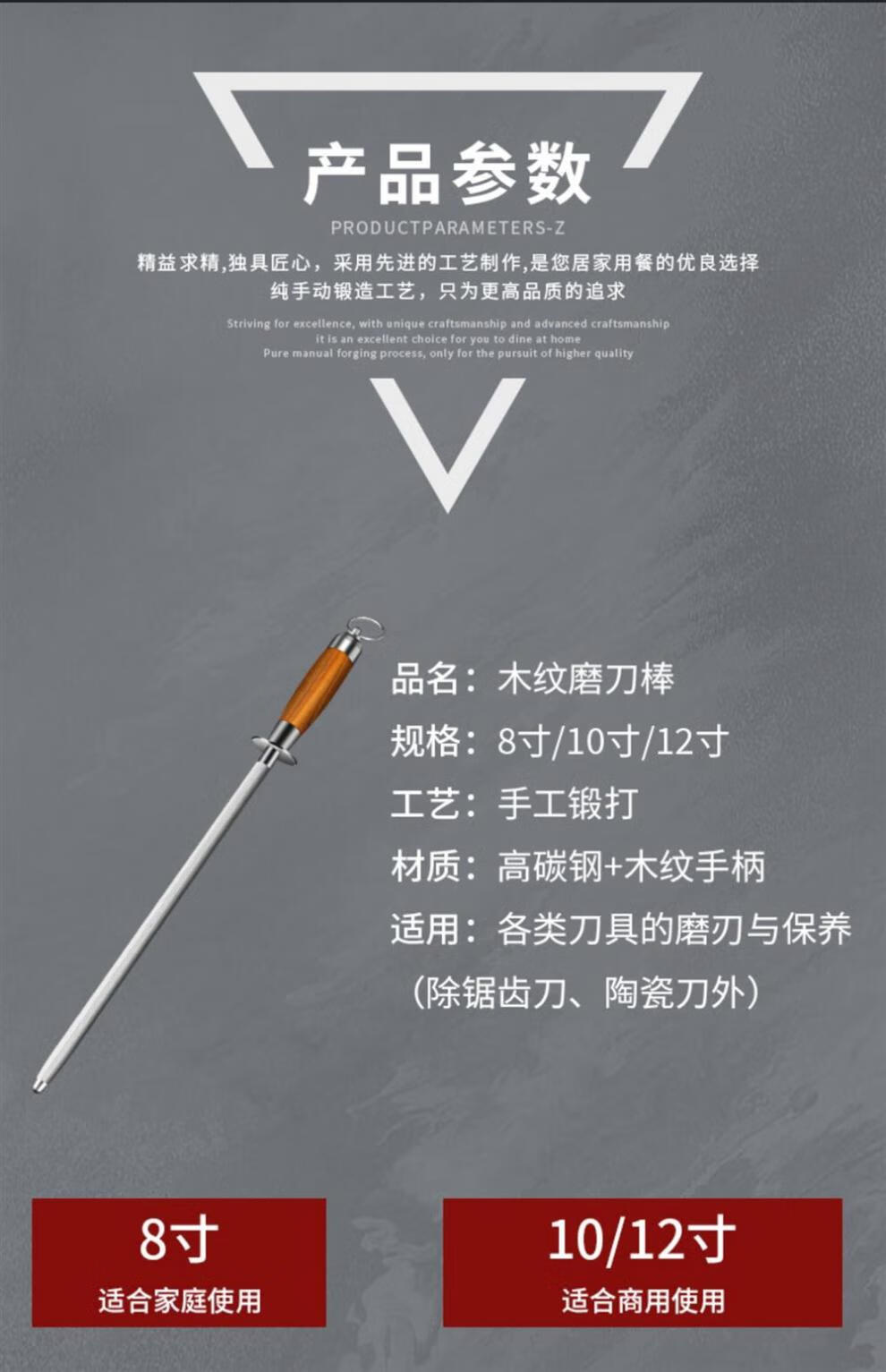 Sailuto Grinding Rod Steel Rod Butcher's Household Grinding Stick Butcher's Shop Fine-grained 10-inch Black Pearl Grinding Rod - Aluminum Alloy Handle - Flat Rod