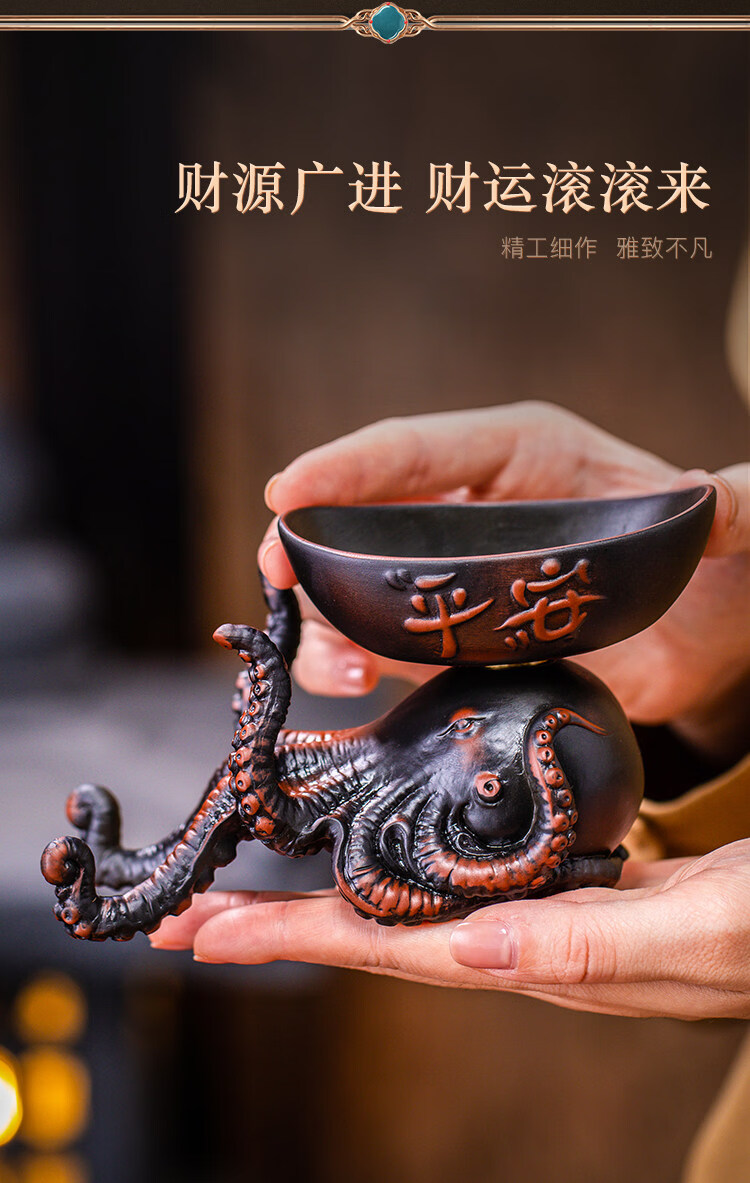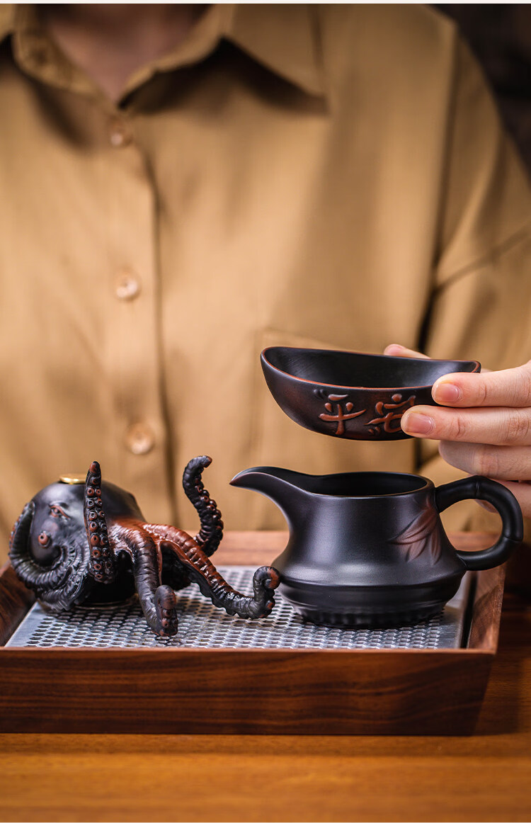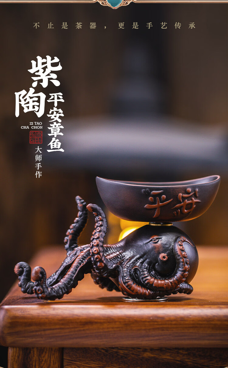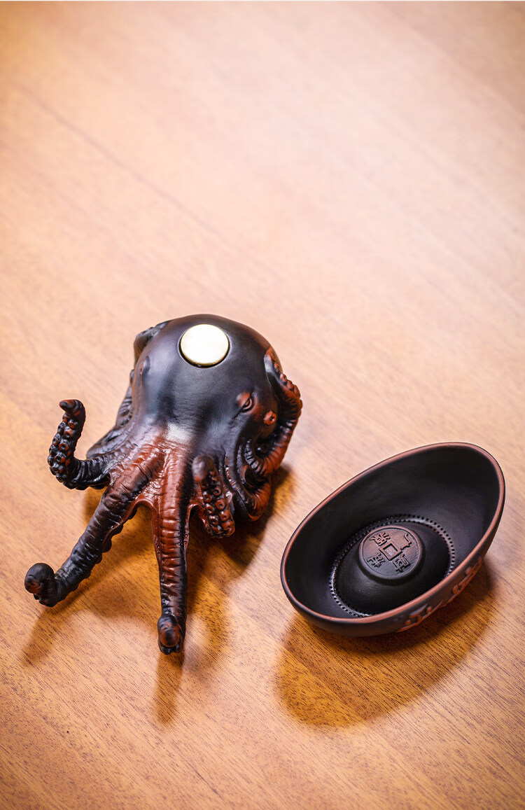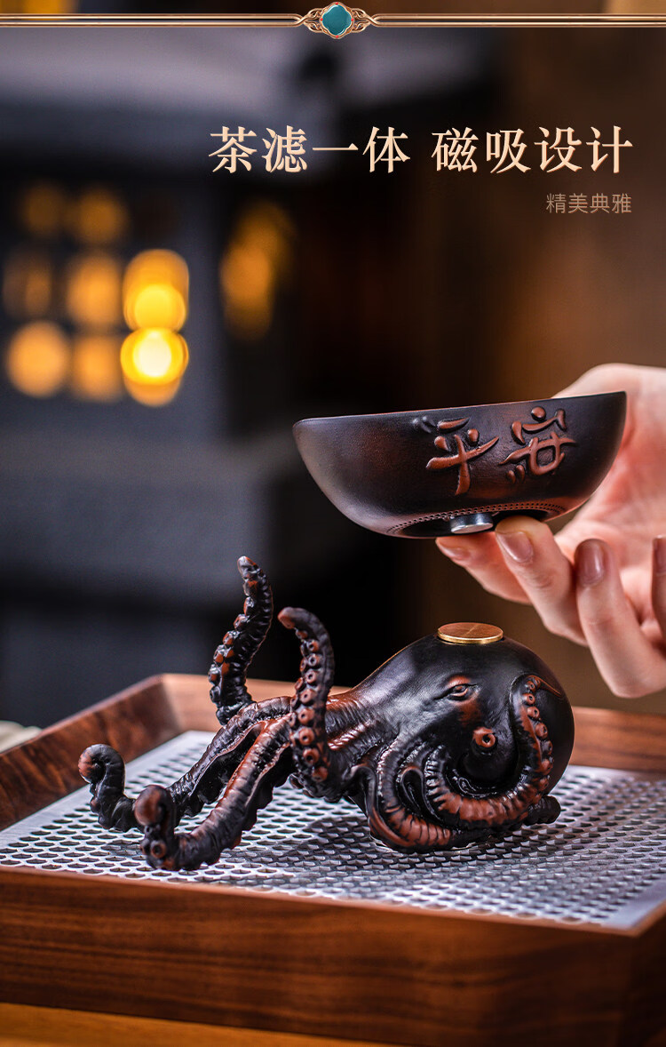 He Jiagong's light luxury creative octopus tea filter, purple pottery hand-carved tea set, filtered tea residue, tea ceremony accessories, Bafang Laicai Tea, Purple pottery Octopus tea leaking tea filter, high-end gift box