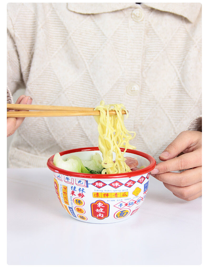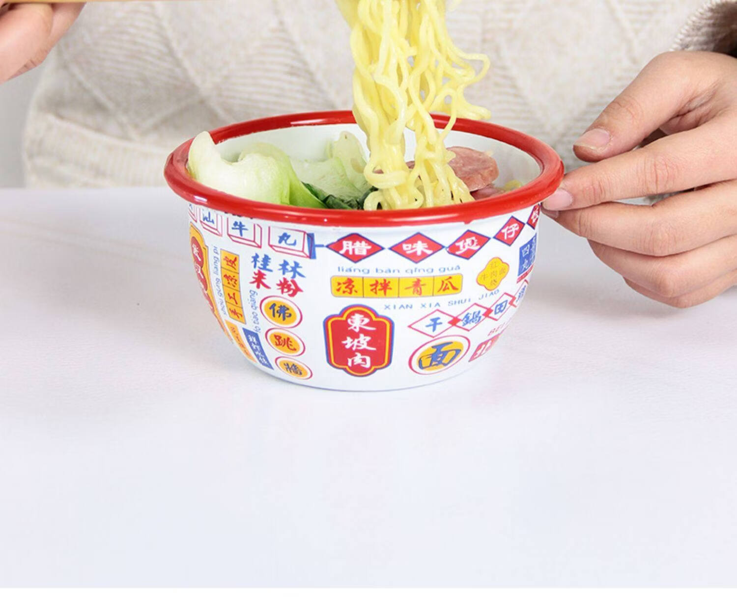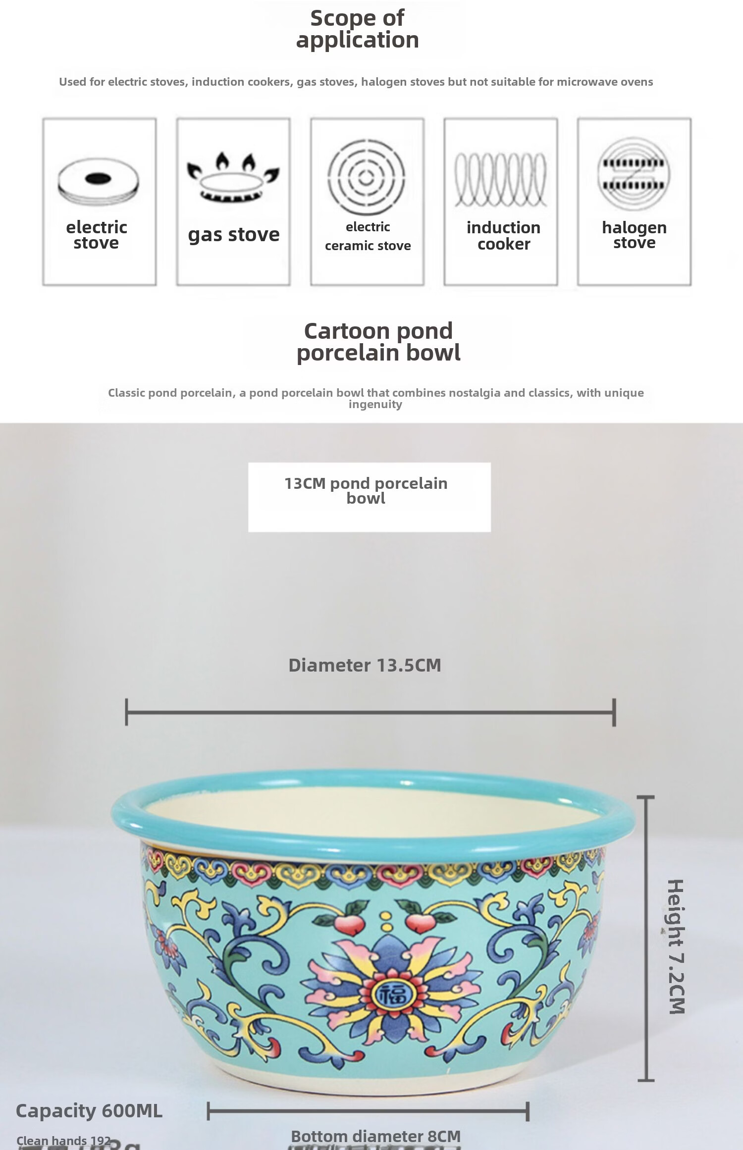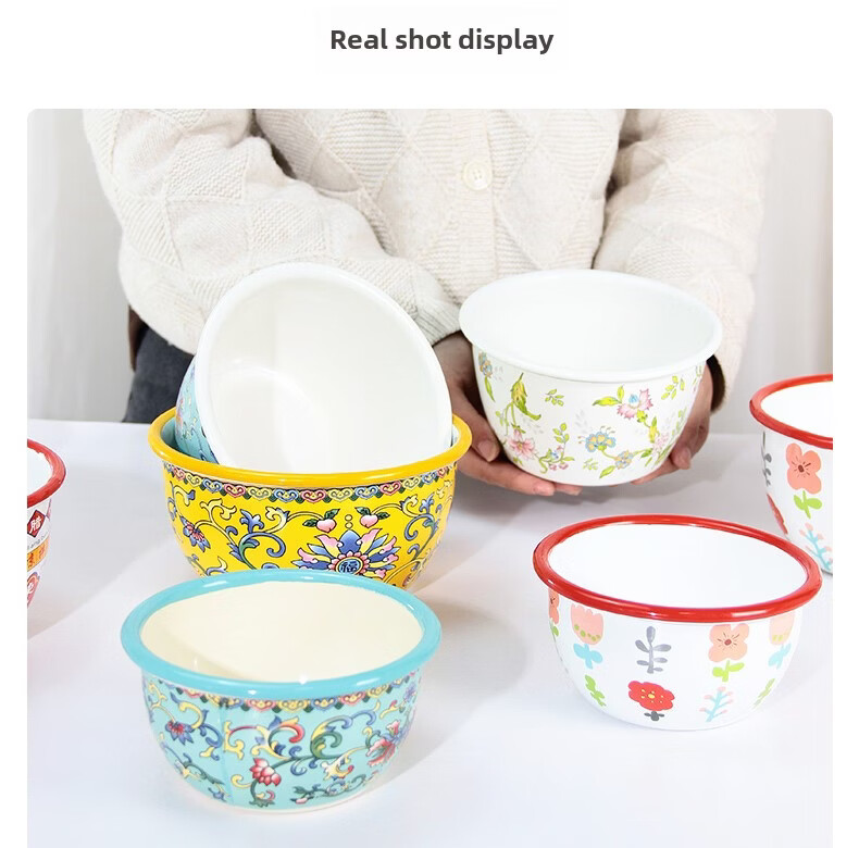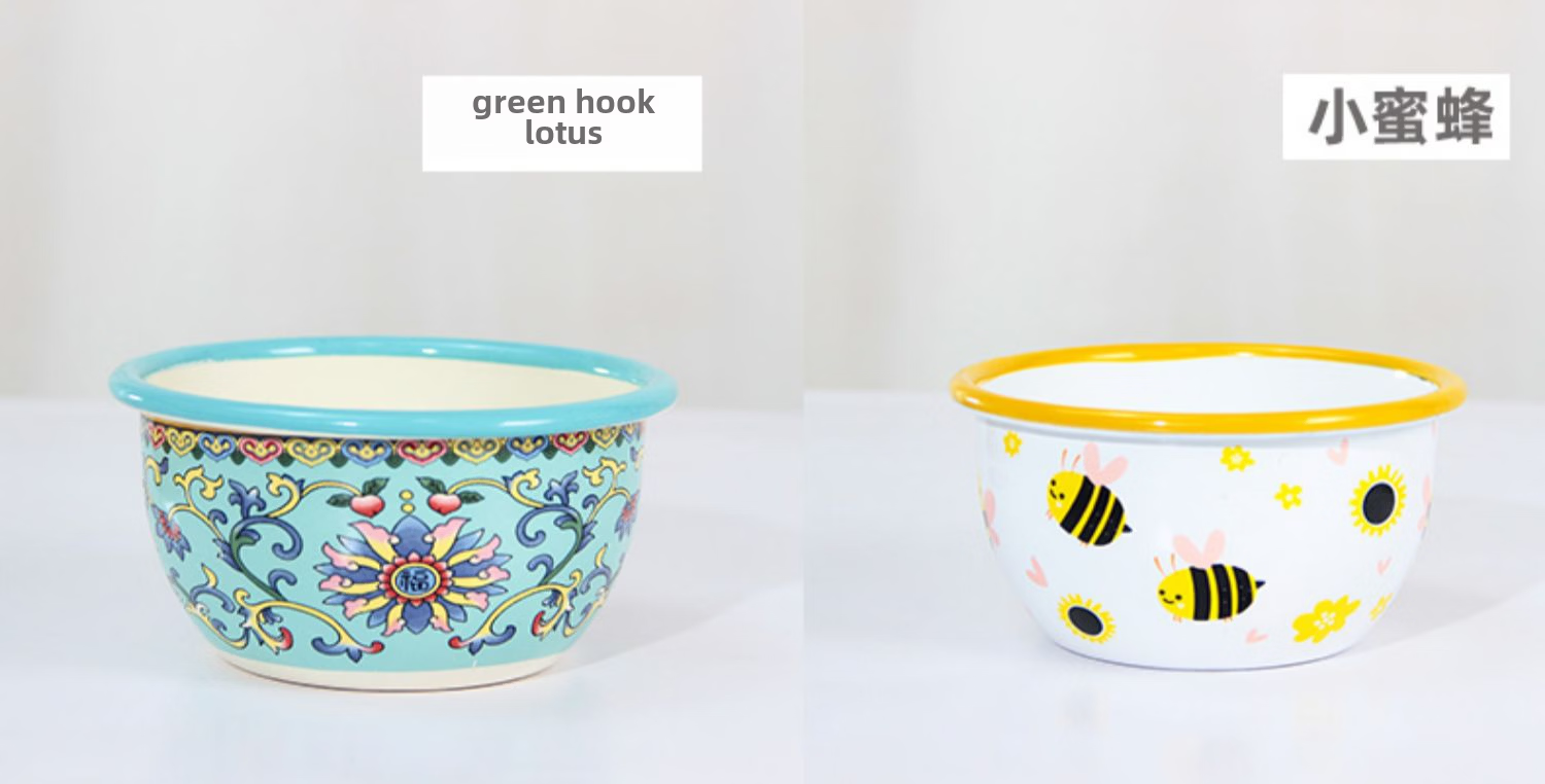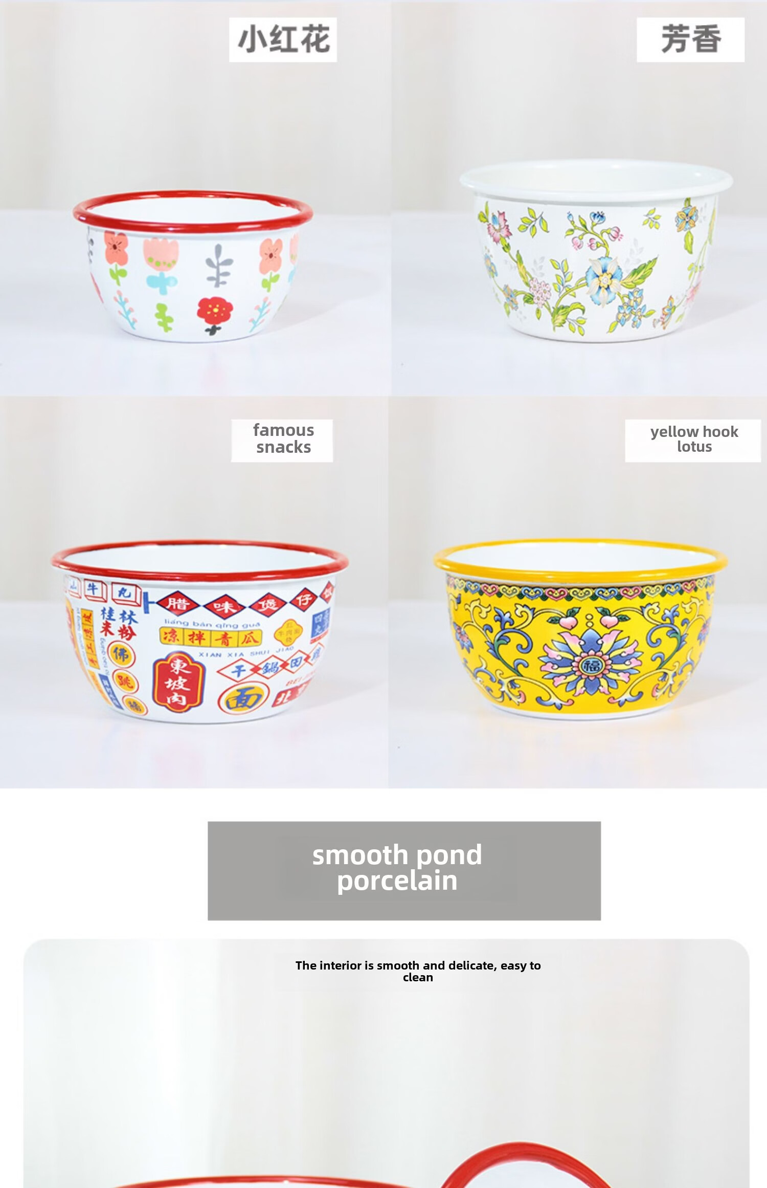 Xushansi enamel bowl Korean soup bowl noodle bowl deep bowl ancient bowl lard basin dumpling filling cold vegetable noodle bowl 13CM green hook lotus bowl