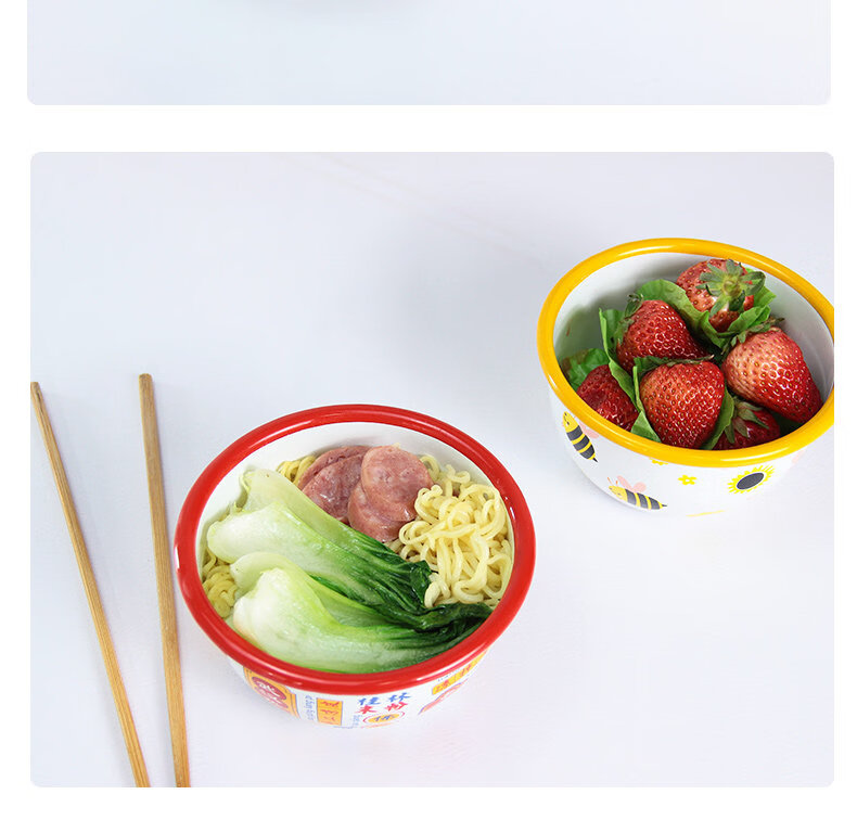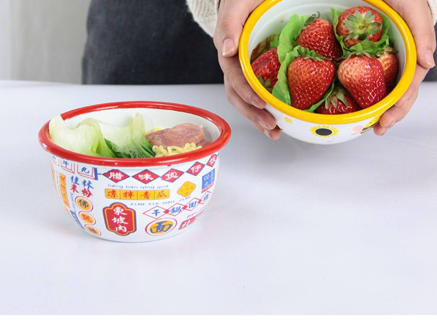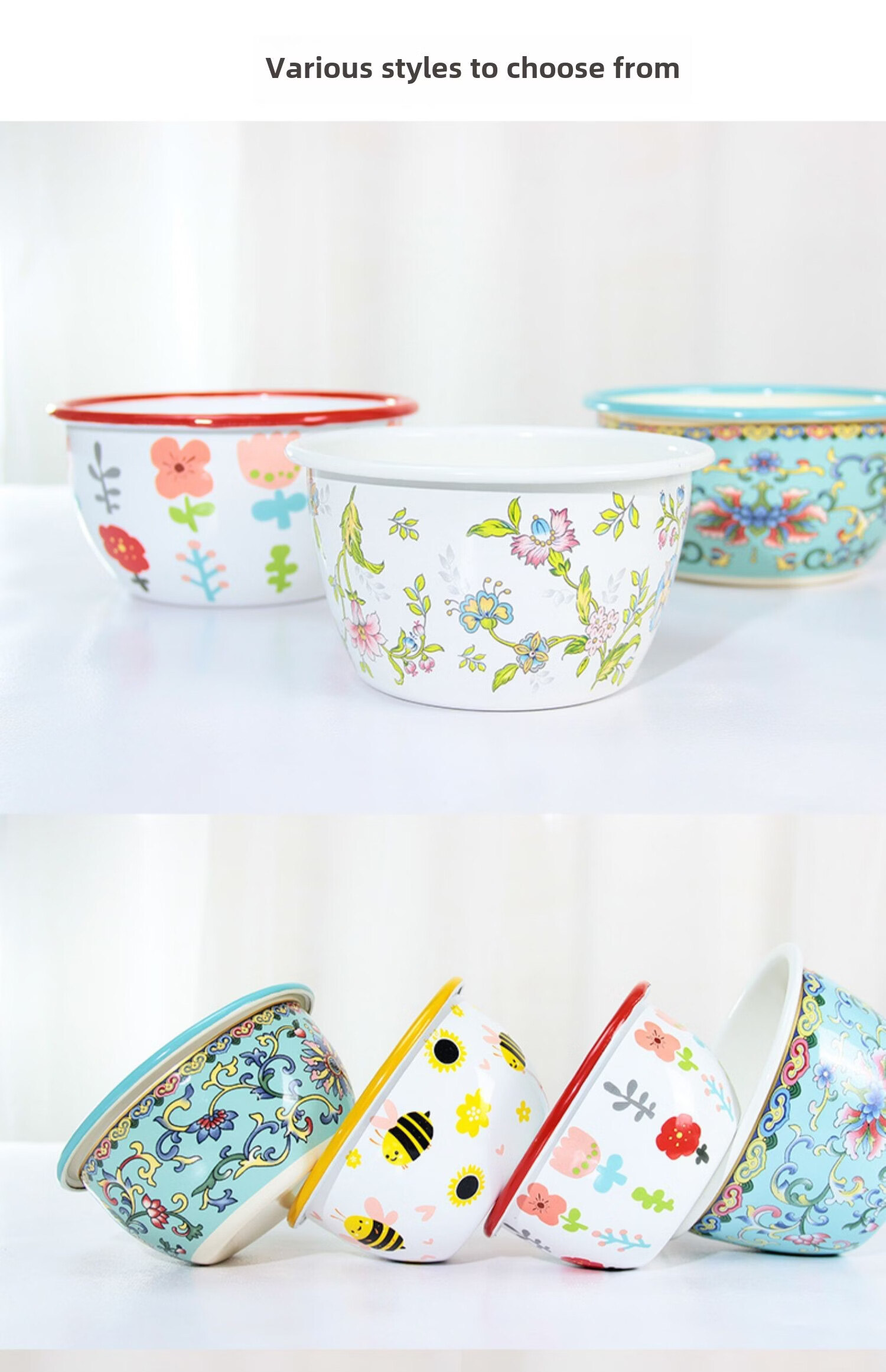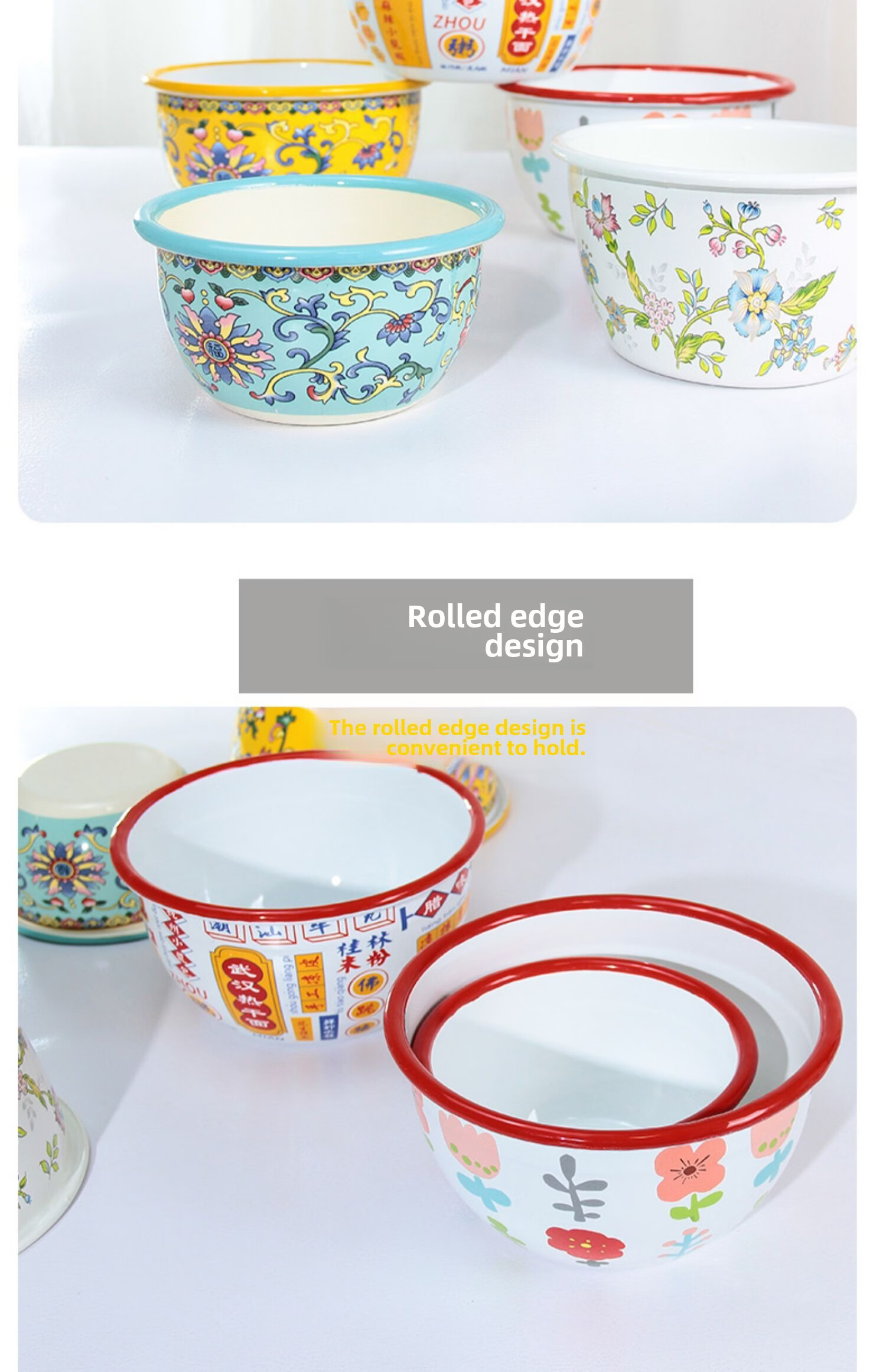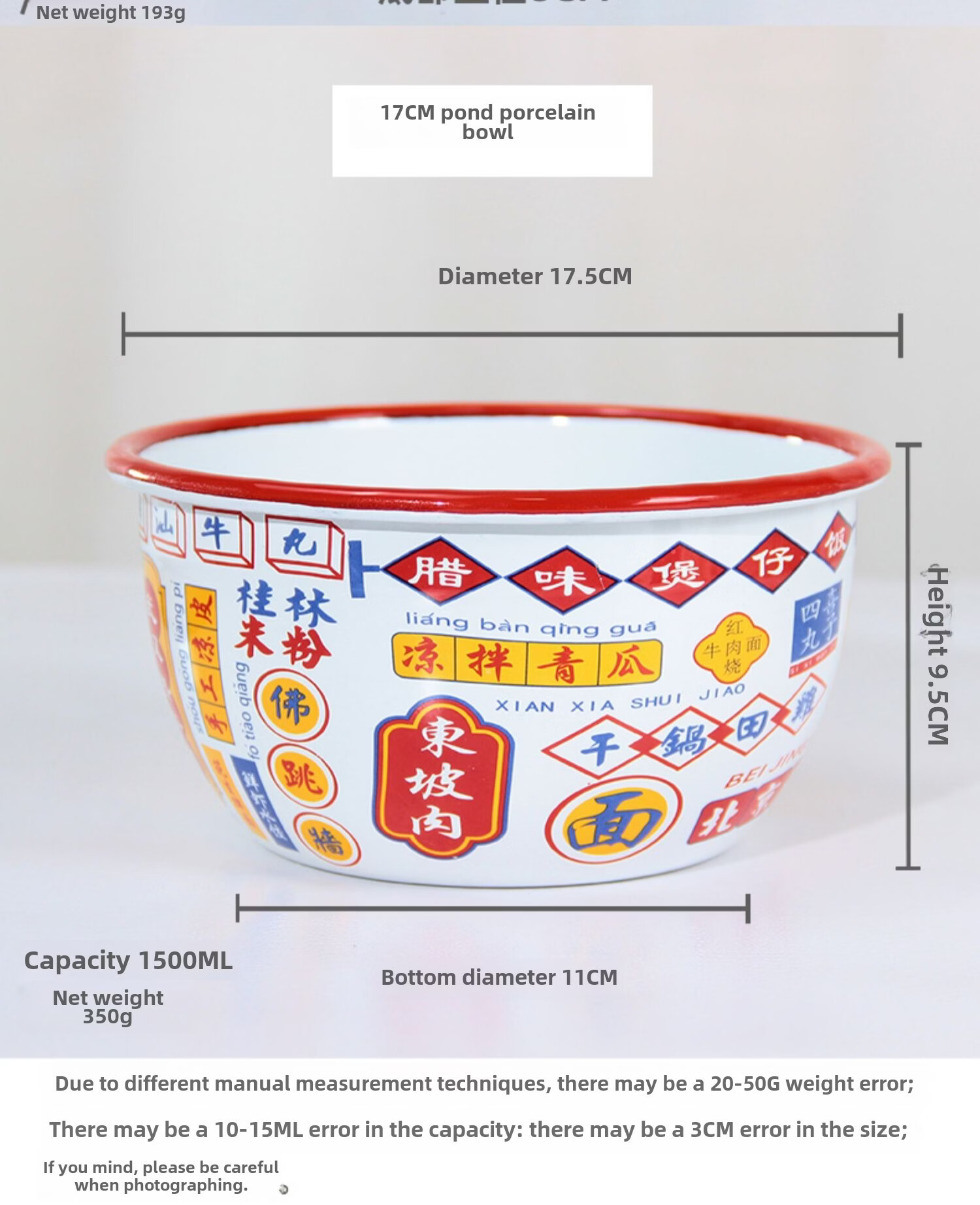 Xushansi enamel bowl Korean soup bowl noodle bowl deep bowl ancient bowl lard basin dumpling filling cold vegetable noodle bowl 13CM green hook lotus bowl