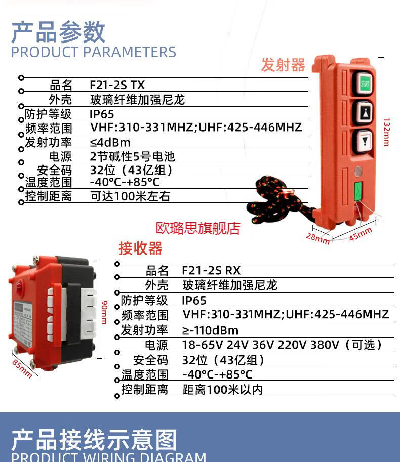 Sailoto wireless industrial remote control traveling crane crane gantry lift electric hoist winch universal switch 36V-2 send 1 receive full set free battery cable accessories package