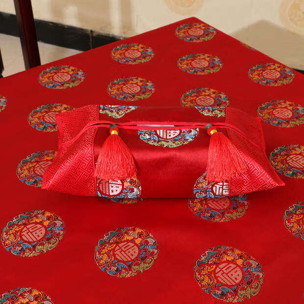 Yusen Yiyi Bixu Pastoral Table Flag Tablecloth Chair Cover Fabric Dining Table Cloth Coffee Table Cloth Table Flag Square Tablecloth Tablecloth Cover Red Fortune Character 120x160cm
