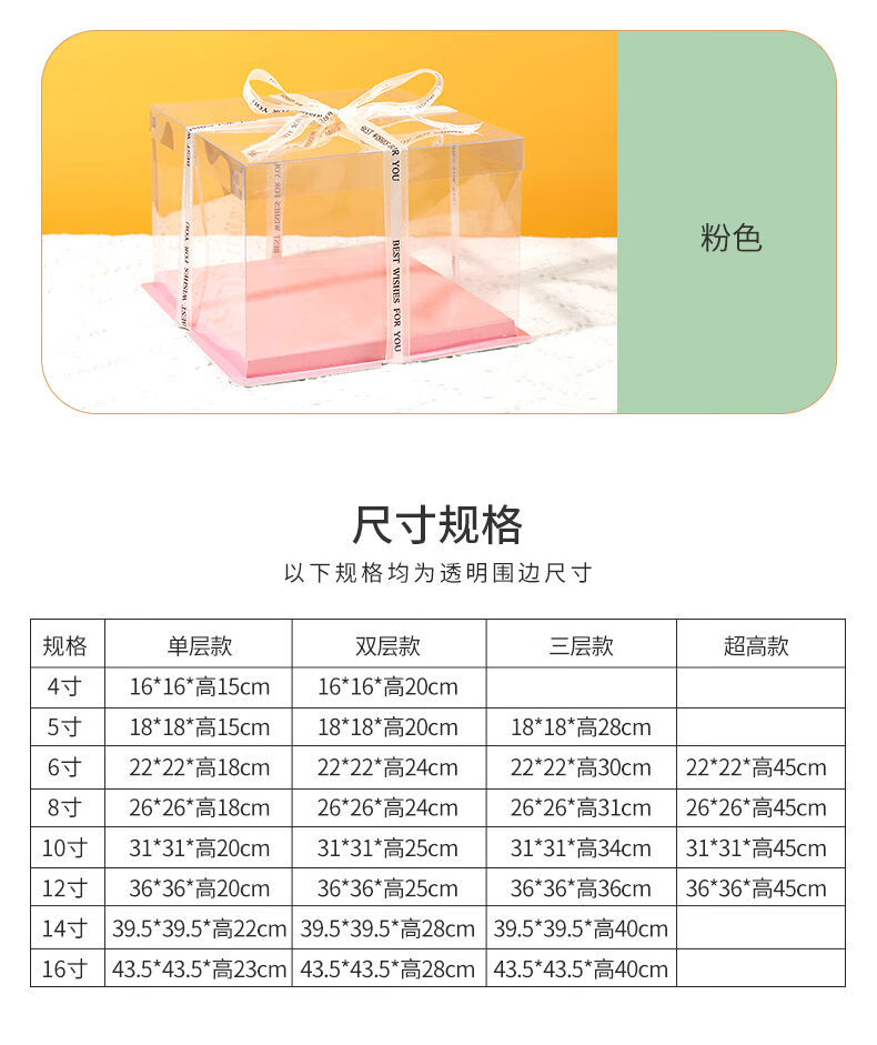 Fantasy cake box 456810121416 inch single layer double layer three layer birthday transparent cake box transparent box white bottom x50 set 8 inch single layer 26x26x18cm