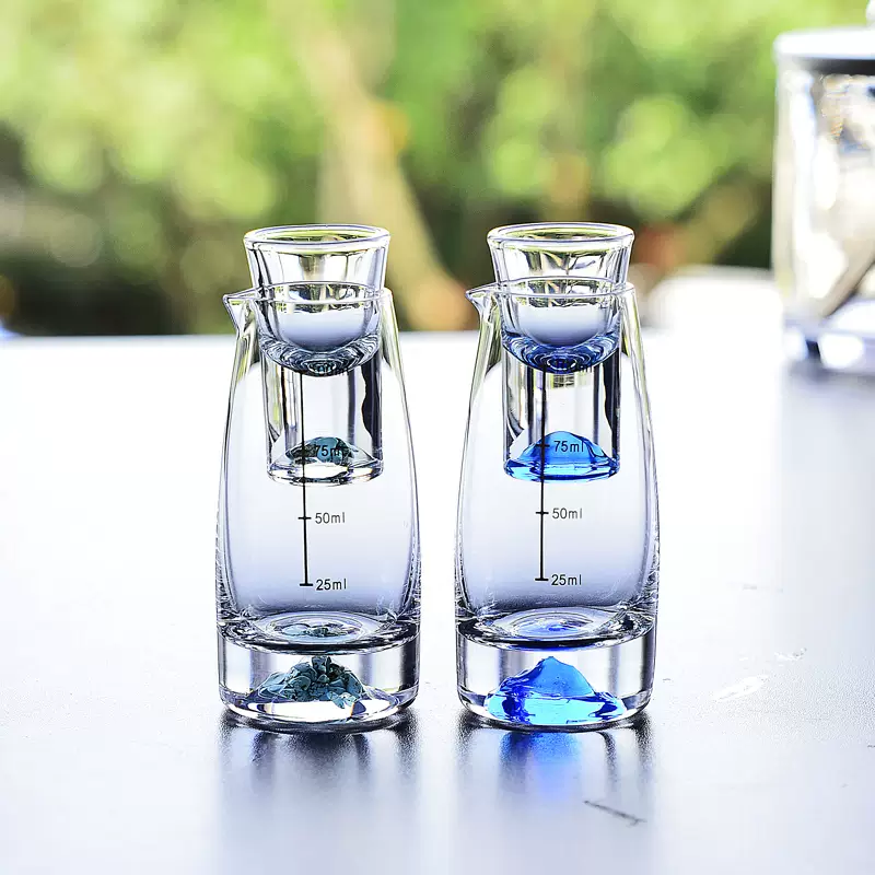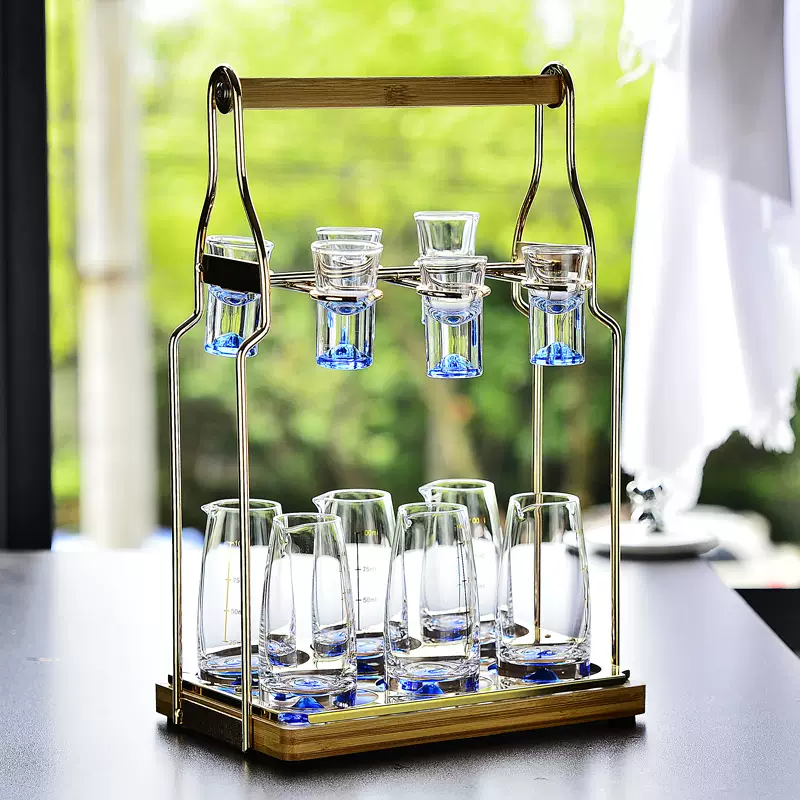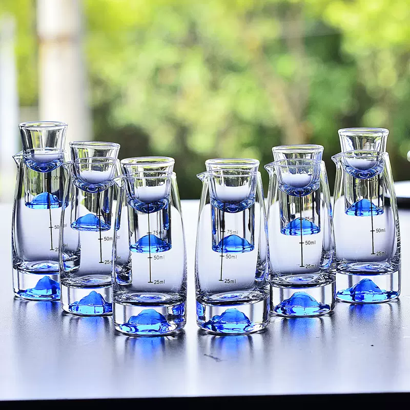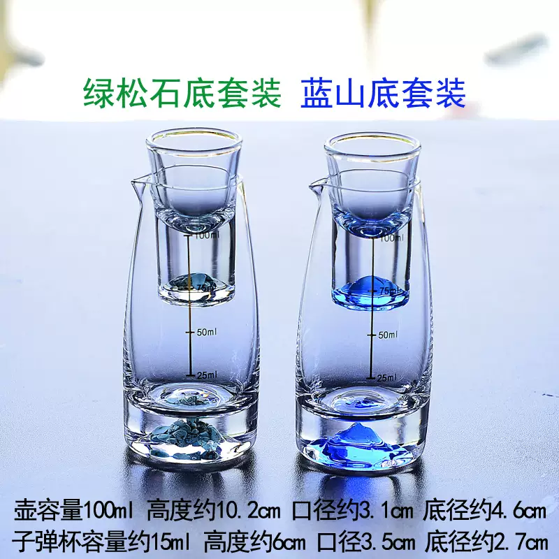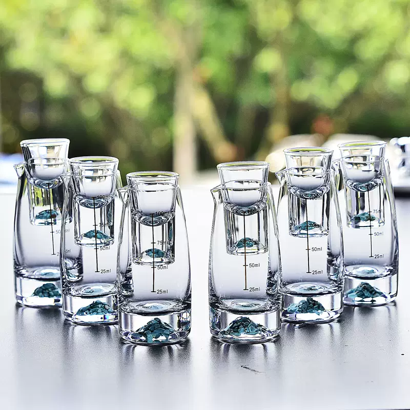 Yusenyi Lanshan crystal glass high-end white wine glass set with scale wine divider and jug set for household light luxury spirits one cup without handle turquoise 1 pot 6 cups