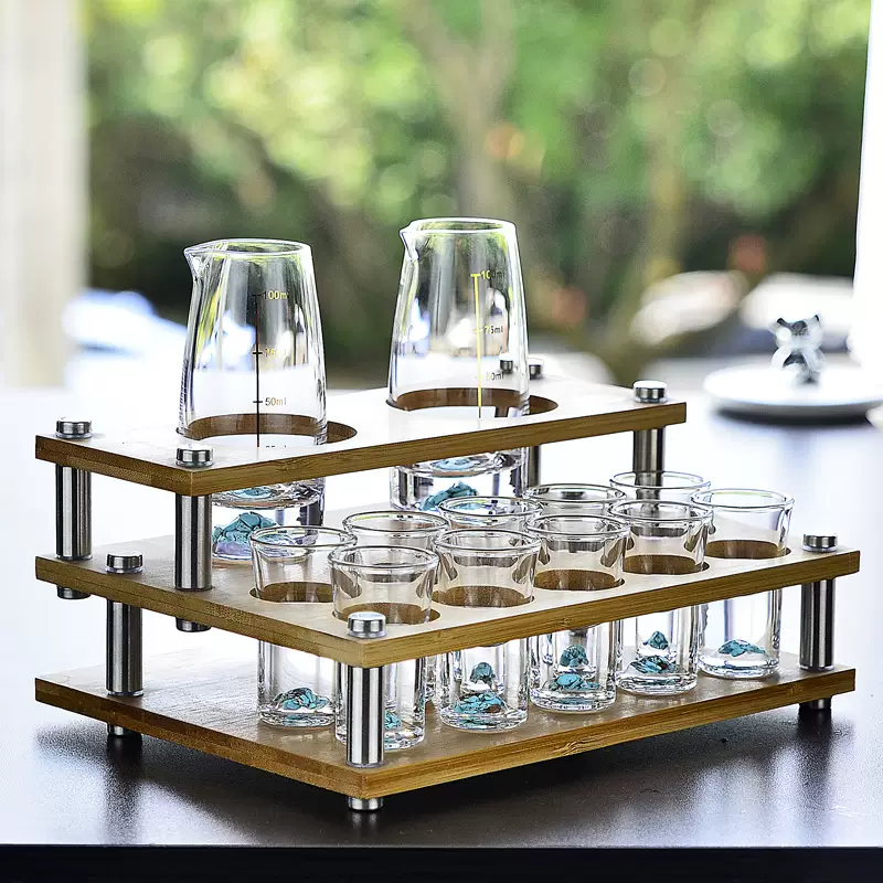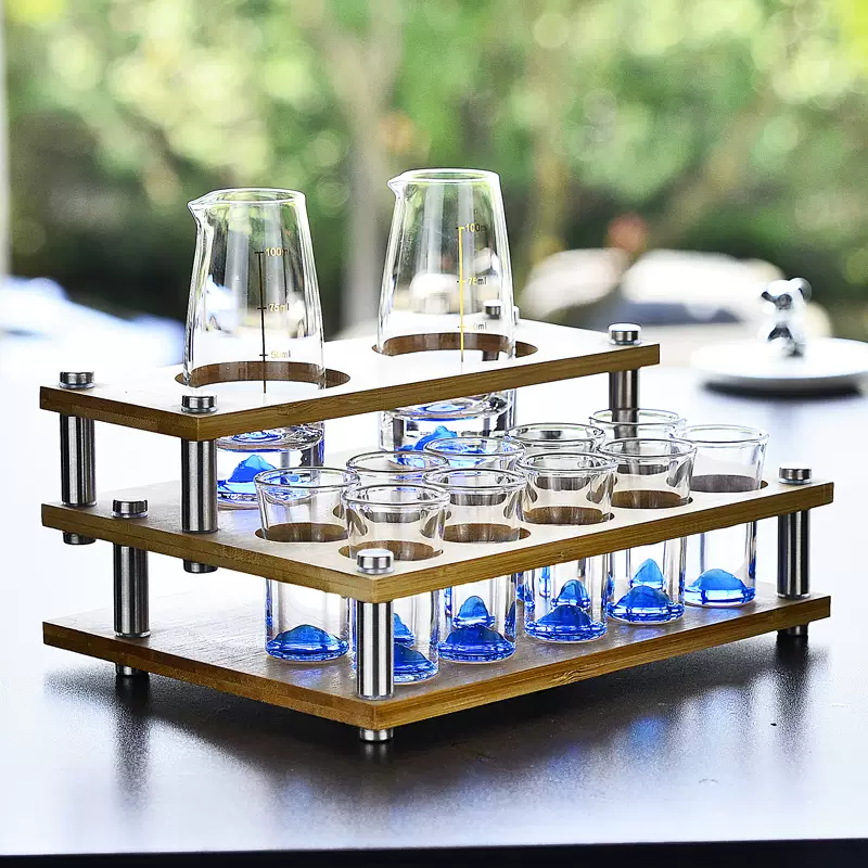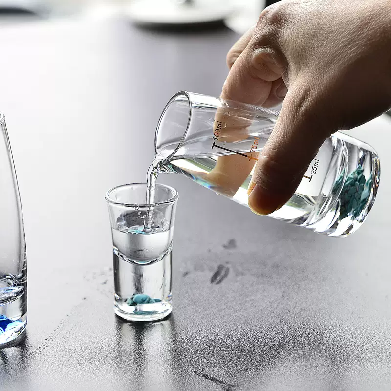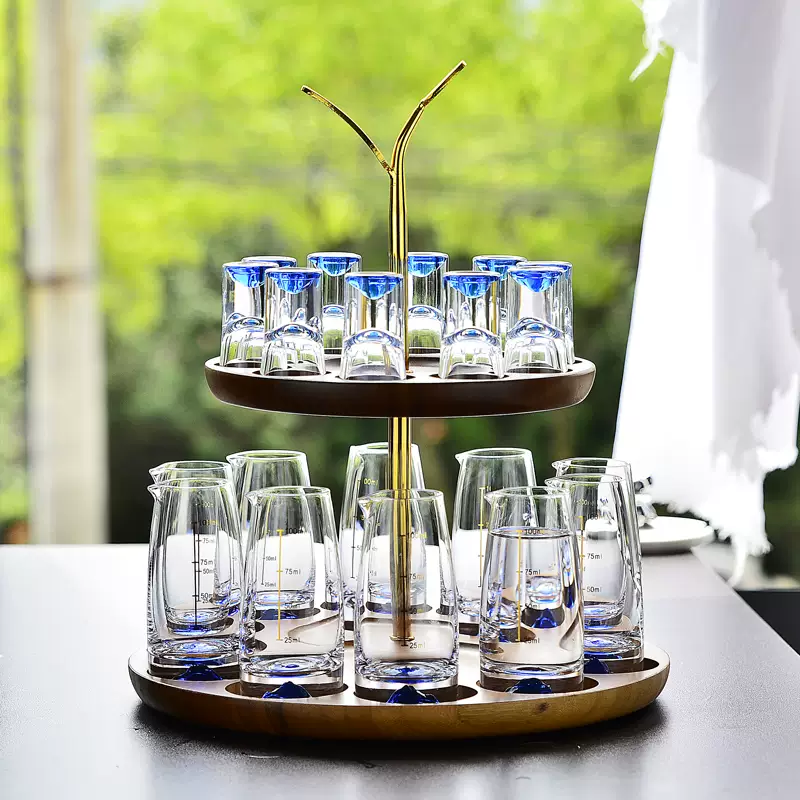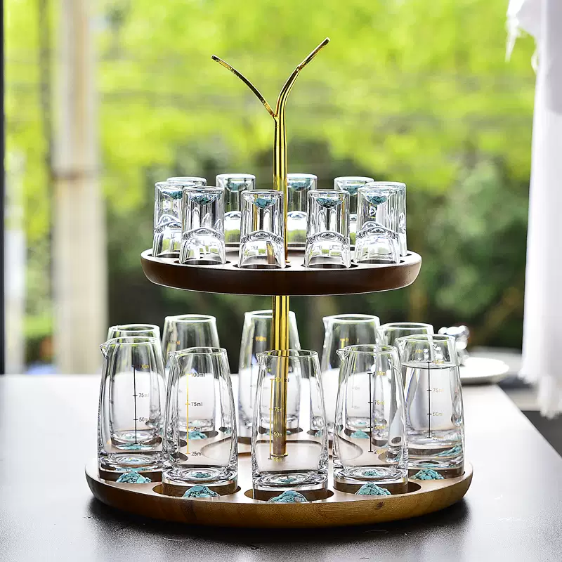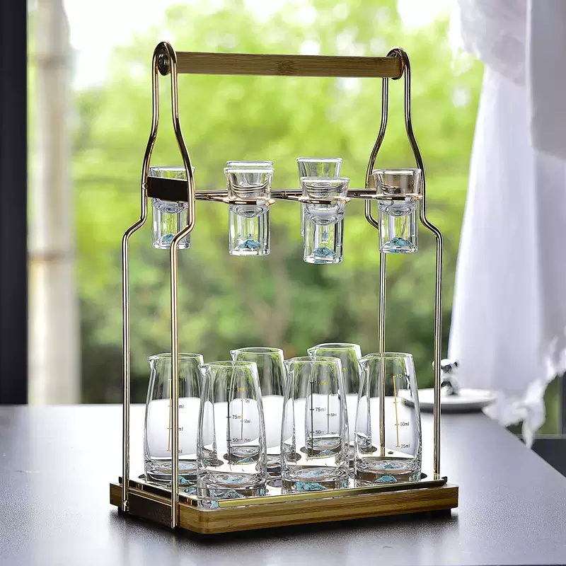 Yusenyi Lanshan crystal glass high-end white wine glass set with scale wine divider and jug set for household light luxury spirits one cup without handle turquoise 1 pot 6 cups