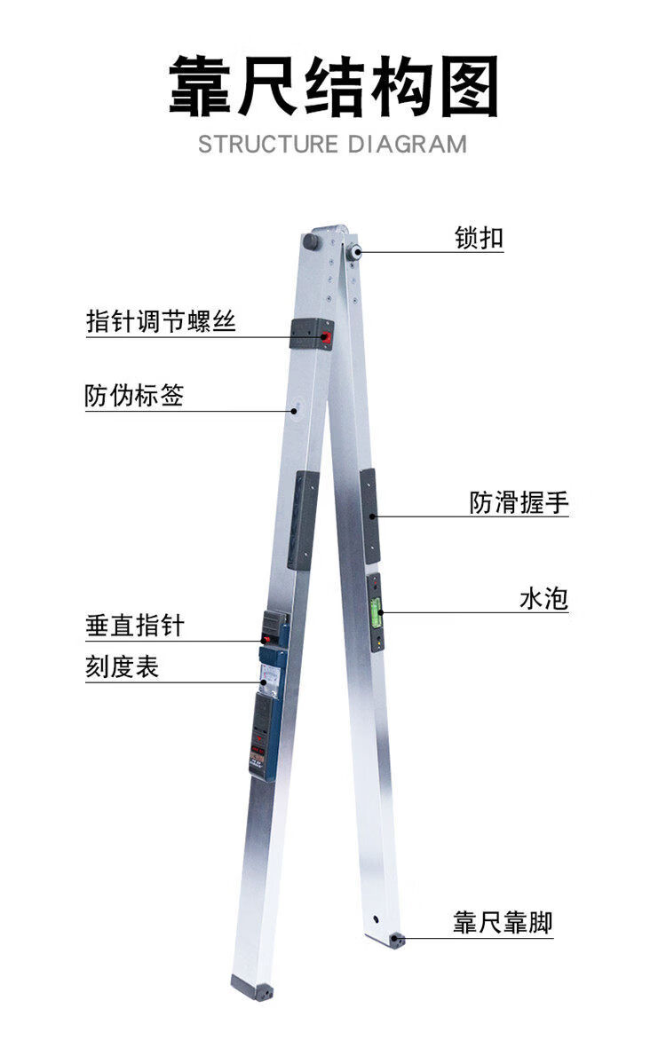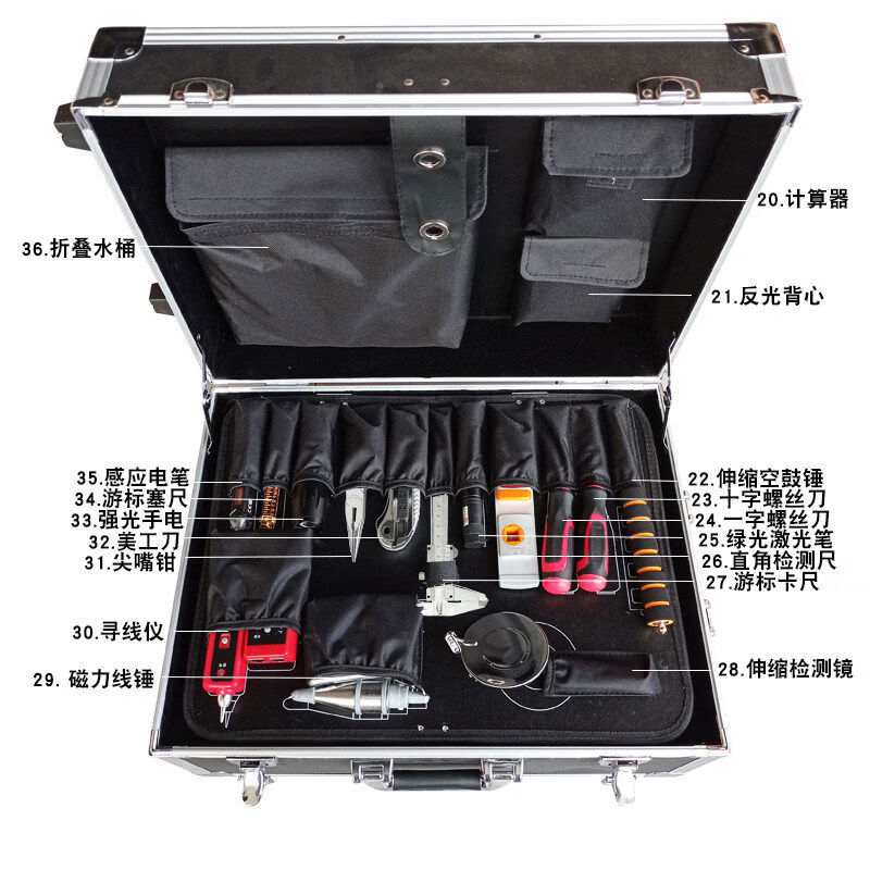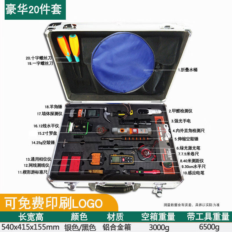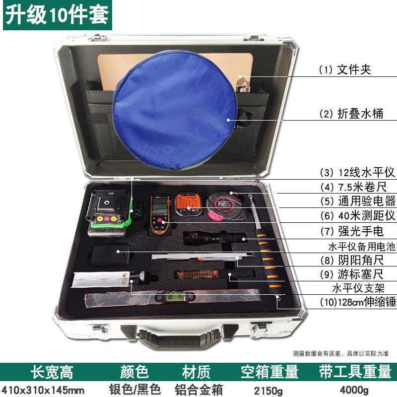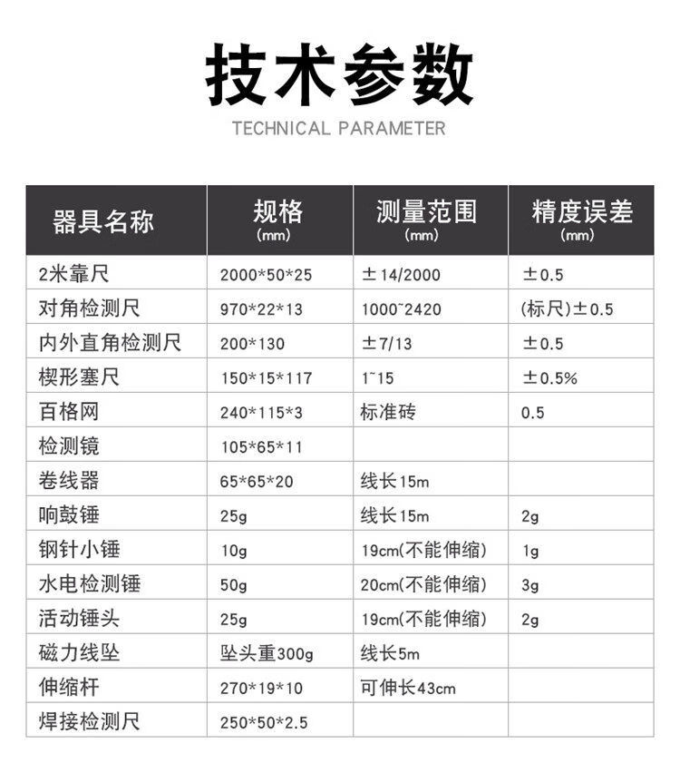 2-meter ruler, two-meter project vertical flatness detection ruler, folding level ruler, house inspection tool set, empty drum hammer, luxury 16-piece set including 12-line level