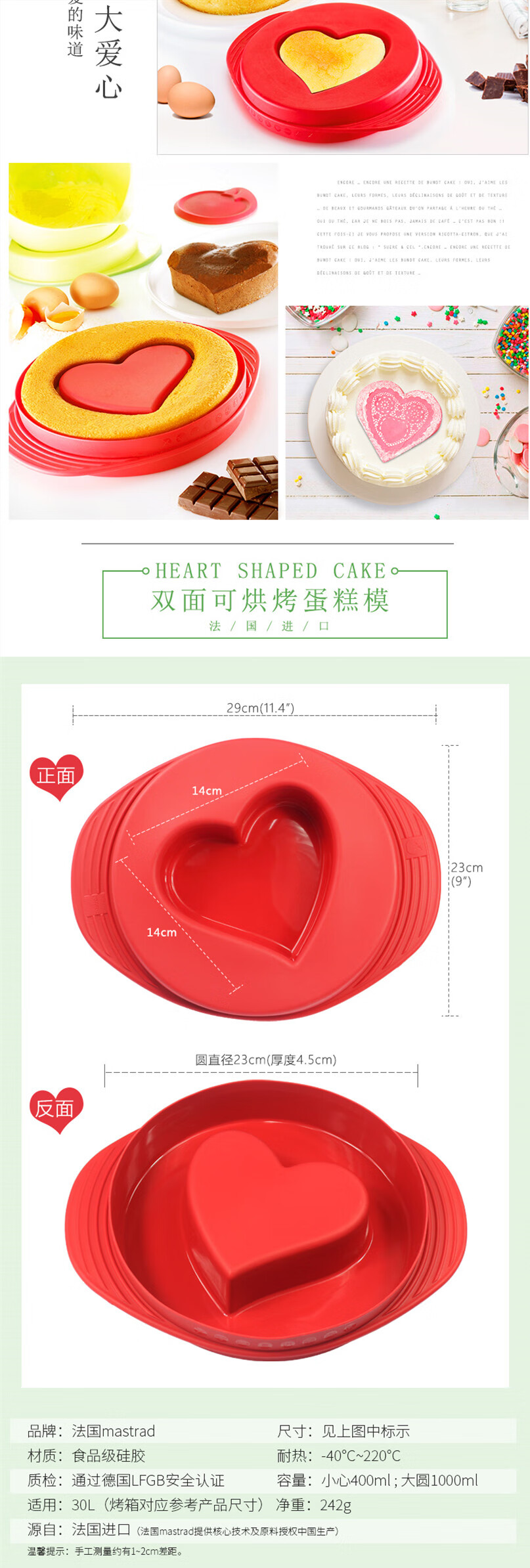French baking tool mold baking pan steamed bread baby steamed cake food supplement oven heart-shaped double-sided big heart double-sided big heart