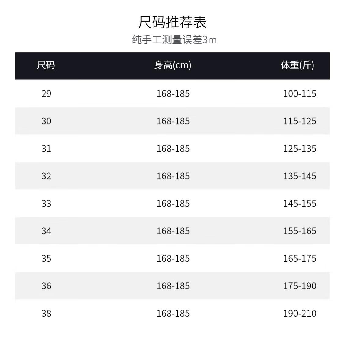 USA(inch) 28-30 30-32 32-34 34-38 38-42