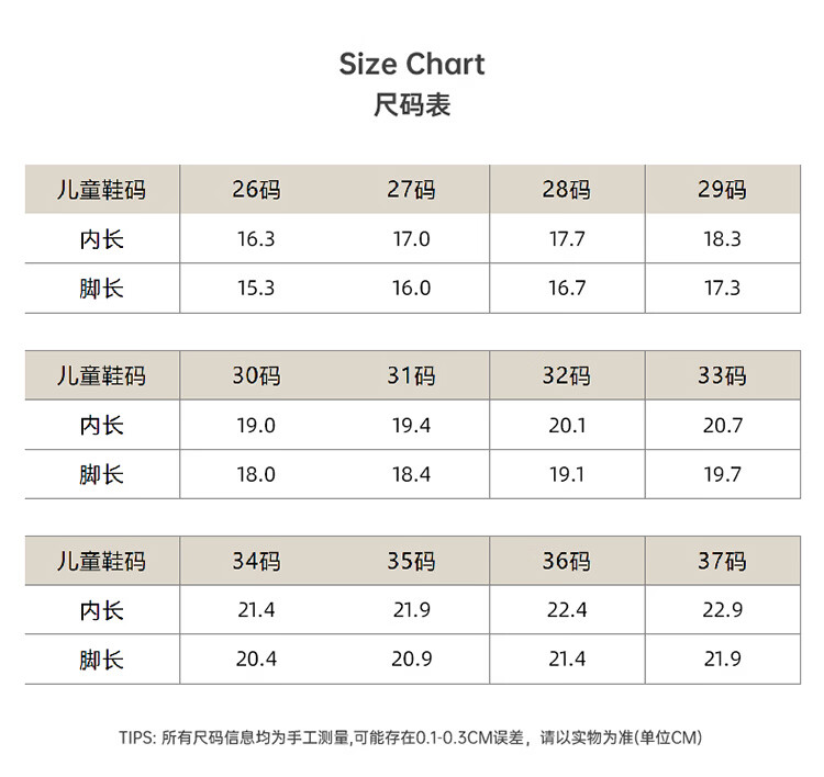 China (cm) 36 - 37 38 - 39 40 - 42 43 - 44 45 - 47