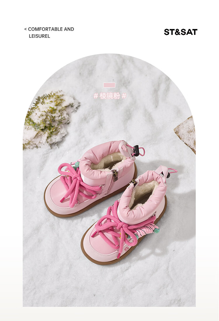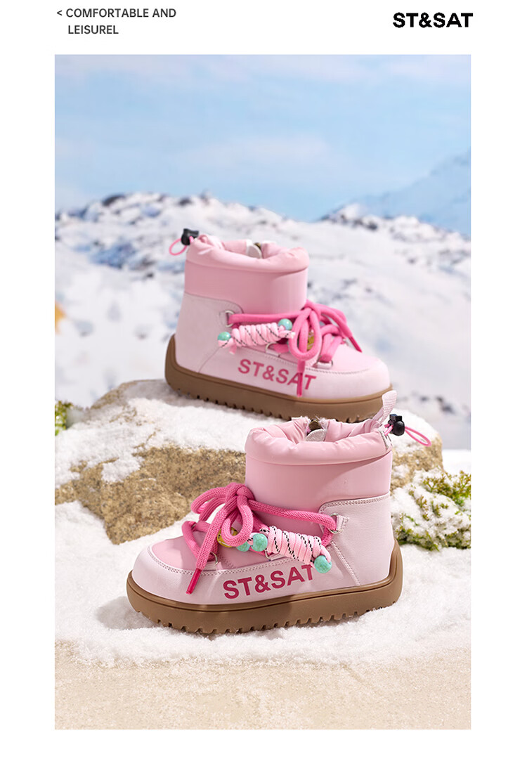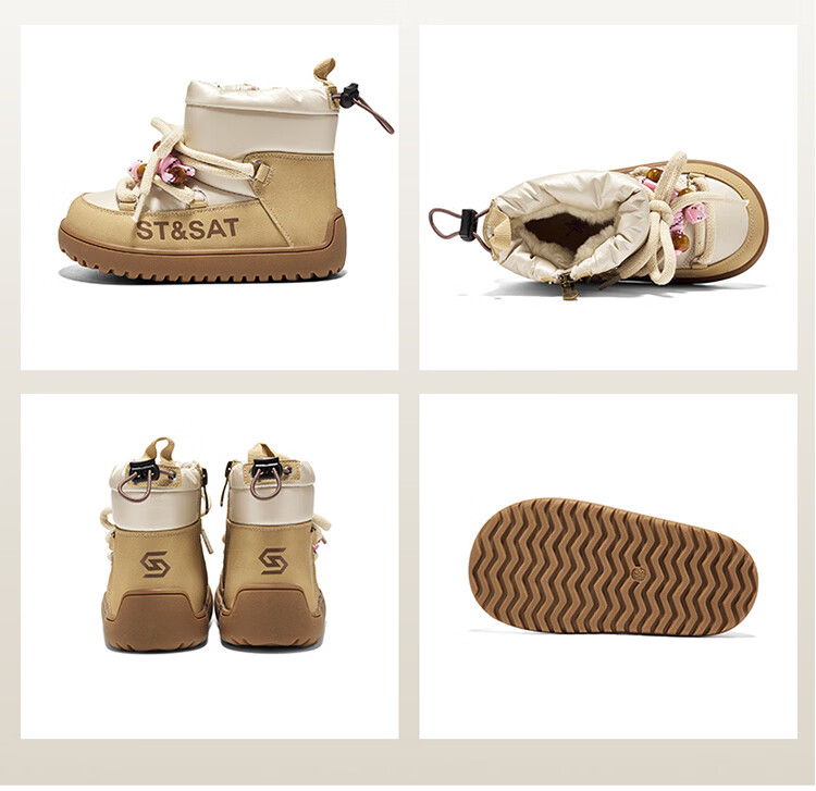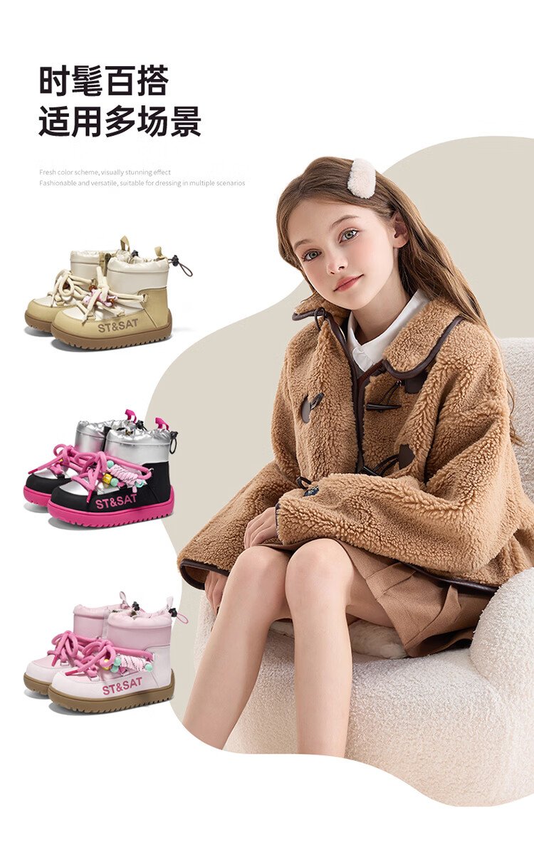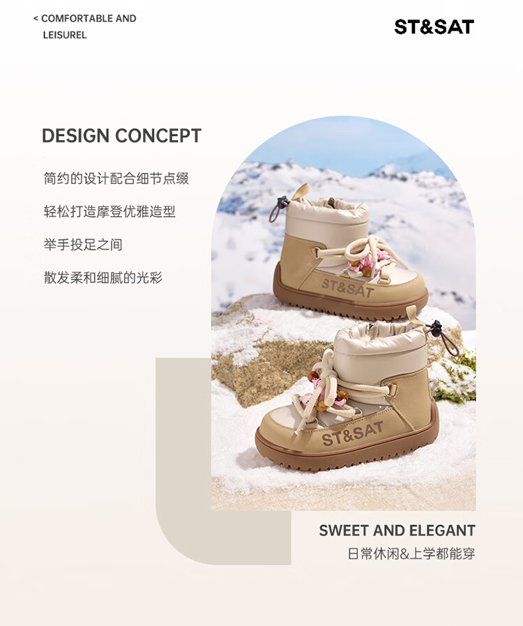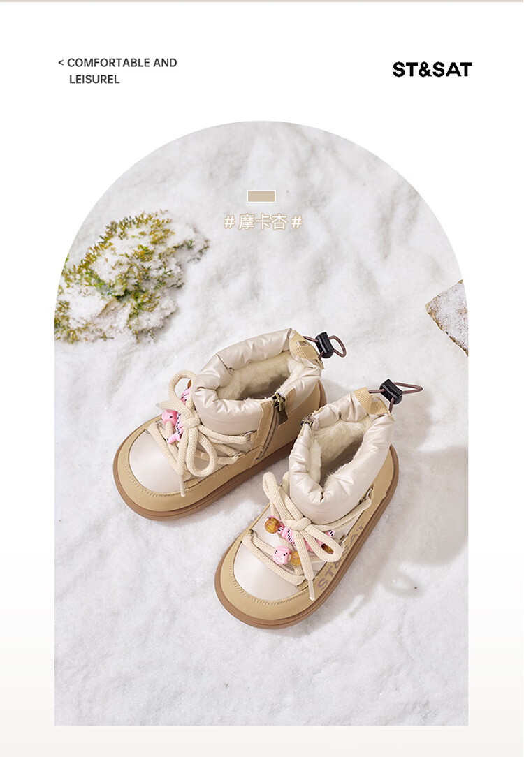 Saturday (St&Sat) children's shoes plus velvet to keep warm girls' outdoor snow boots 2025 winter new lightweight soft sole thickened boys' cotton boots Mocha Apricot 27 The inner length of the shoe is about 17.1cm