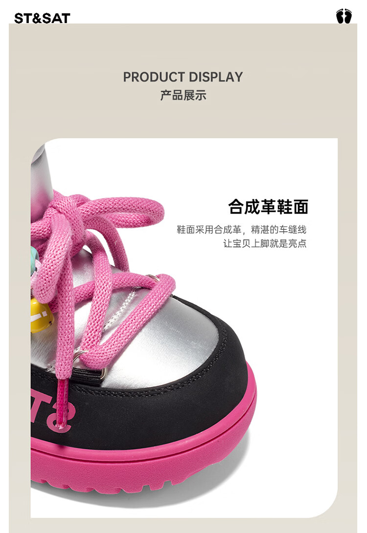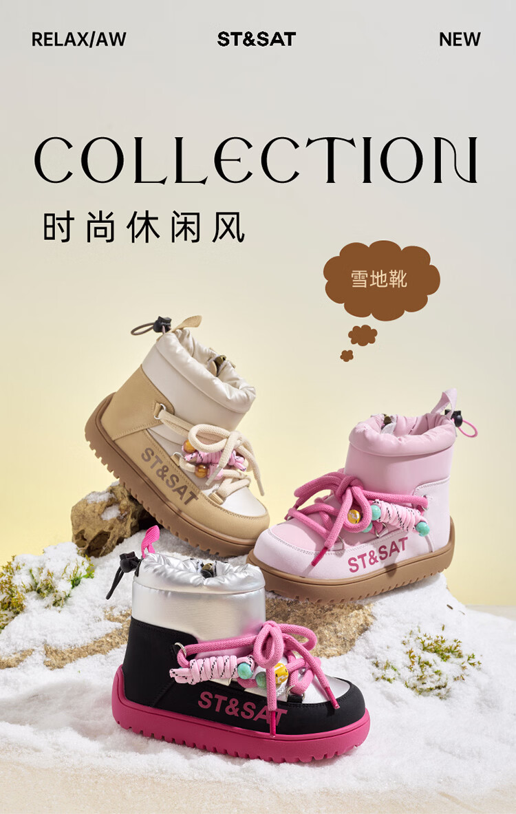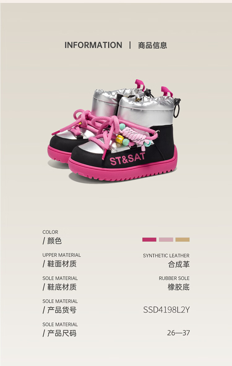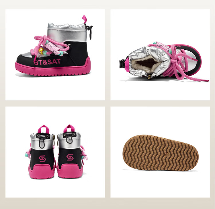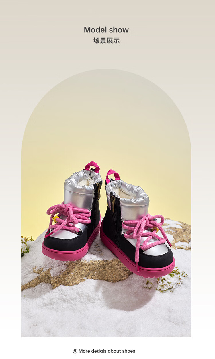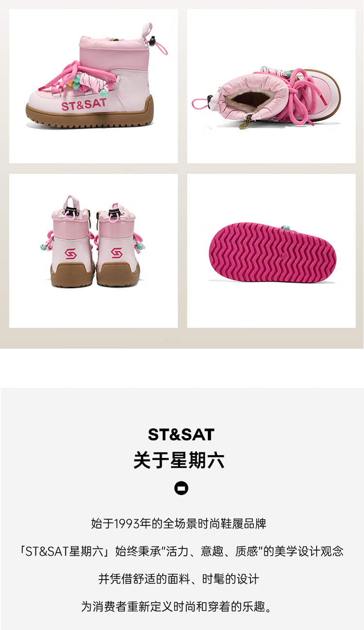 Saturday (St&Sat) children's shoes plus velvet to keep warm girls' outdoor snow boots 2025 winter new lightweight soft sole thickened boys' cotton boots Mocha Apricot 27 The inner length of the shoe is about 17.1cm