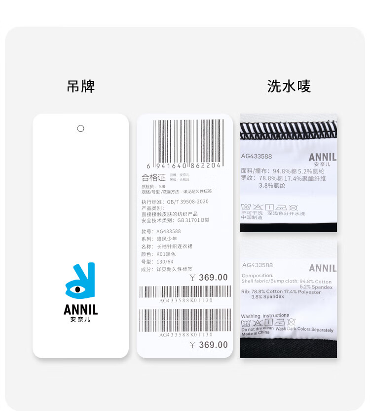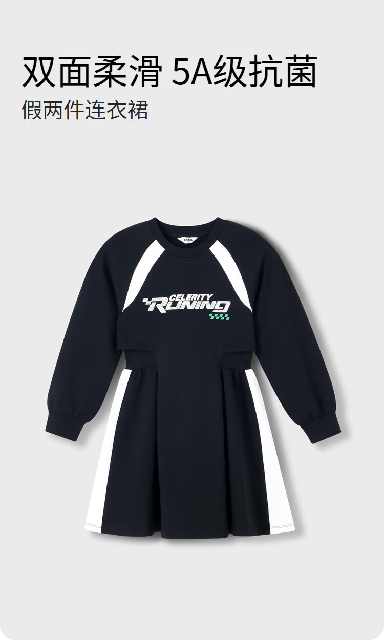 Annil children's clothing girls' long-sleeved knitted dress 2024 autumn new style black 120