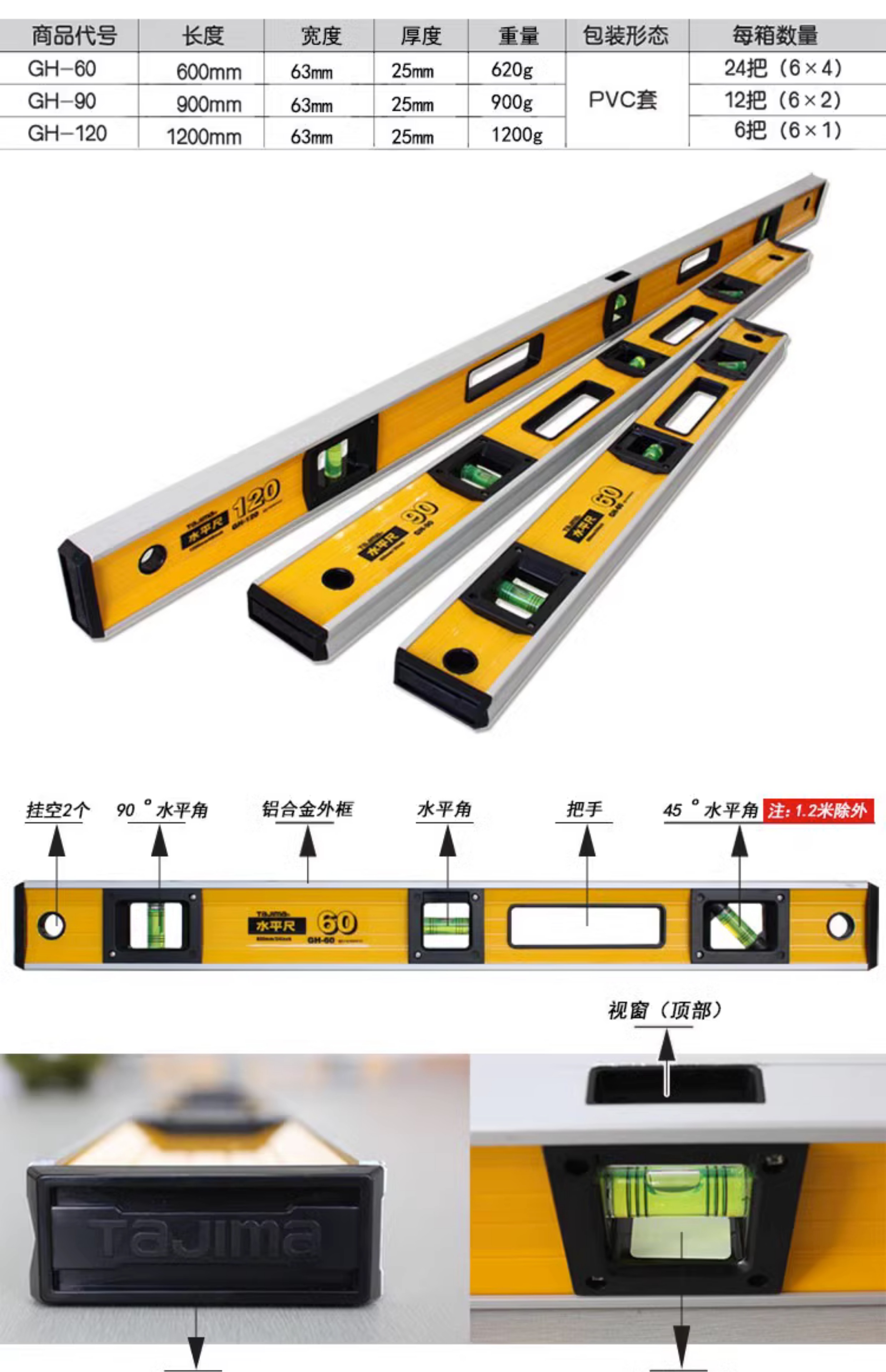 TaJIma imported from Japan GH6090120180 heavy-duty anti-fall high-precision horizontal ruler and vertical ruler GH60600mm reinforced heavy-duty 10040181
