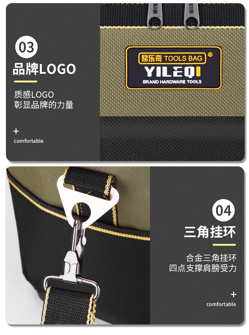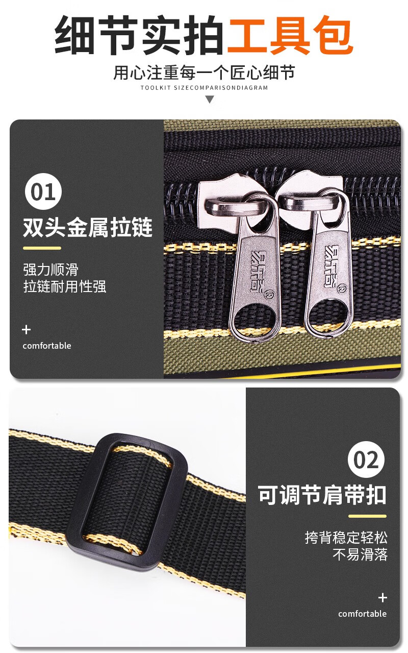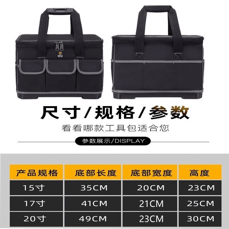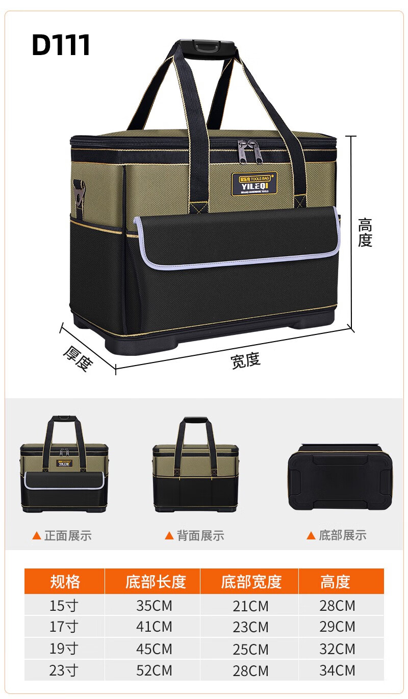 Yiluqi large-capacity tool bag thickened wear-resistant electrician wood electrician bag plastic bottom repair tool box green 23-inch plastic bottom with shoulder strap