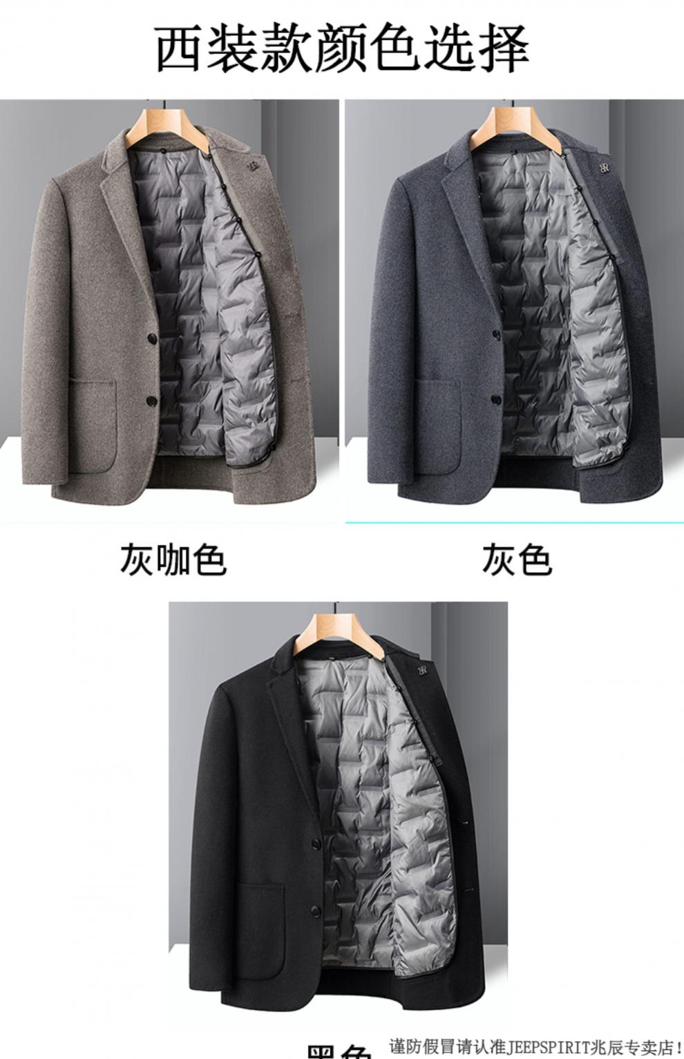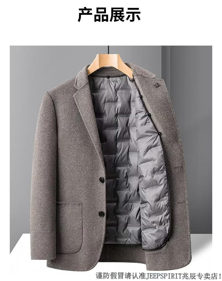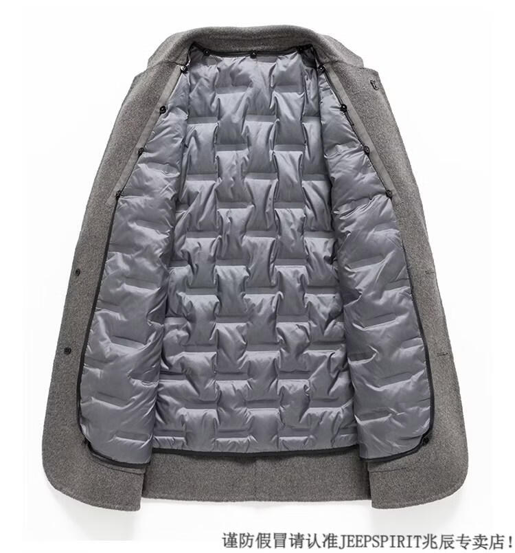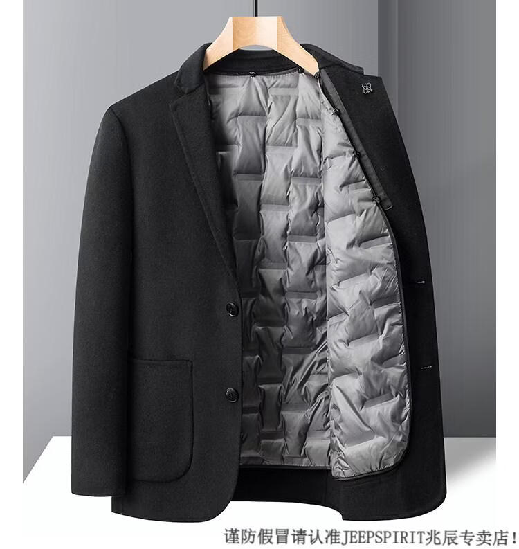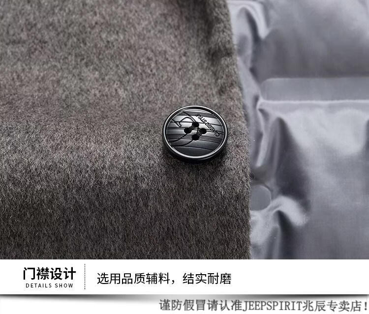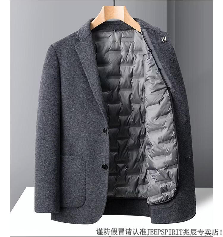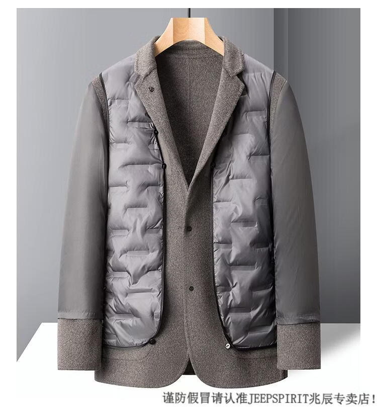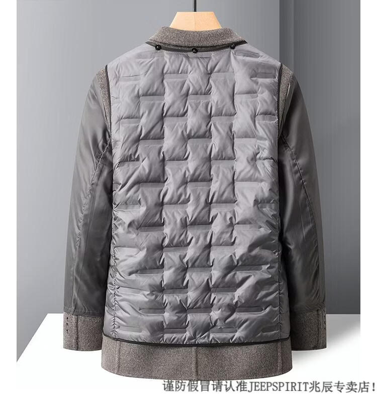 JEEP SPIRIT new double-sided woolen coat men's wool woolen suit casual suit winter velvet thickened short coat gray brown removable down liner M 170 recommended 95-115Jin Jin equals 0.5 kg