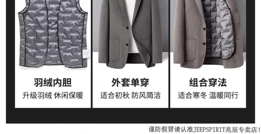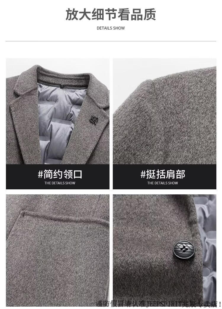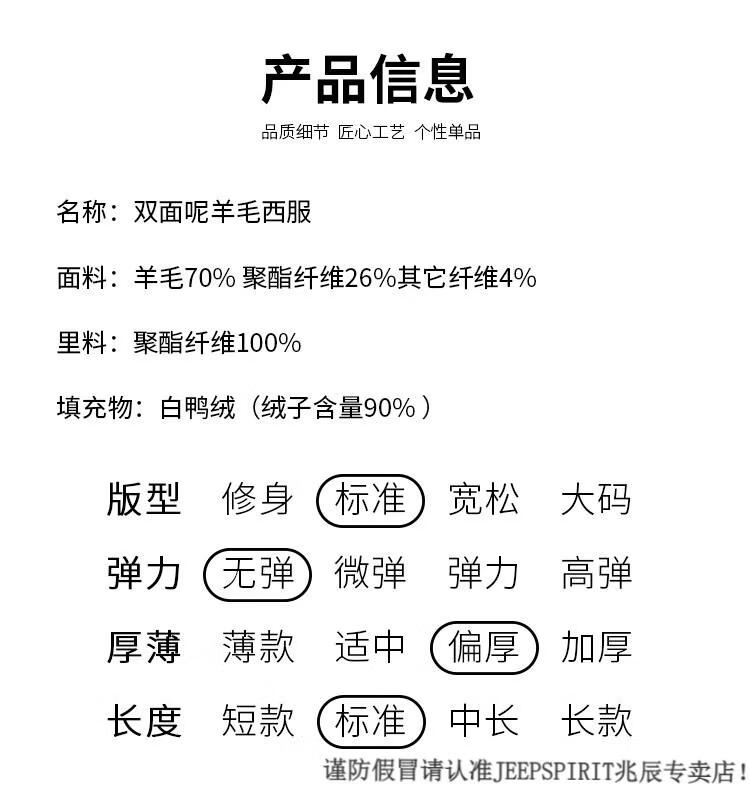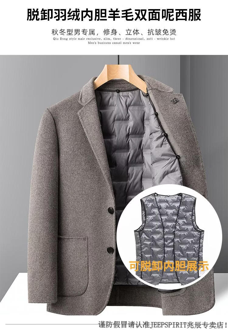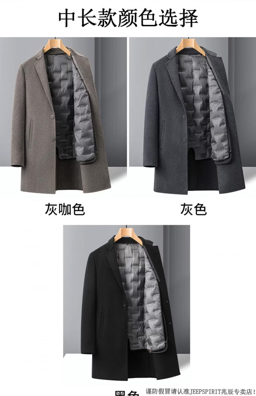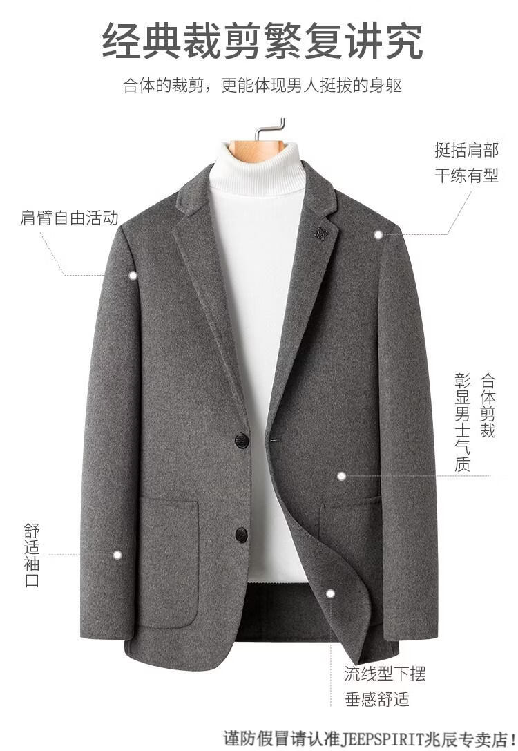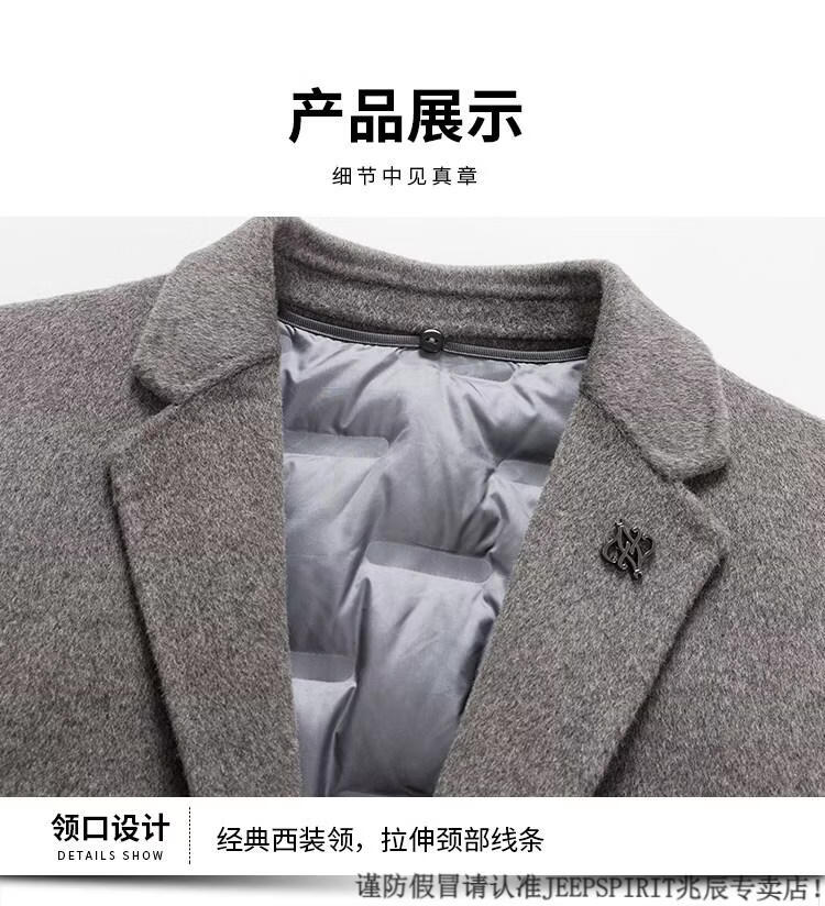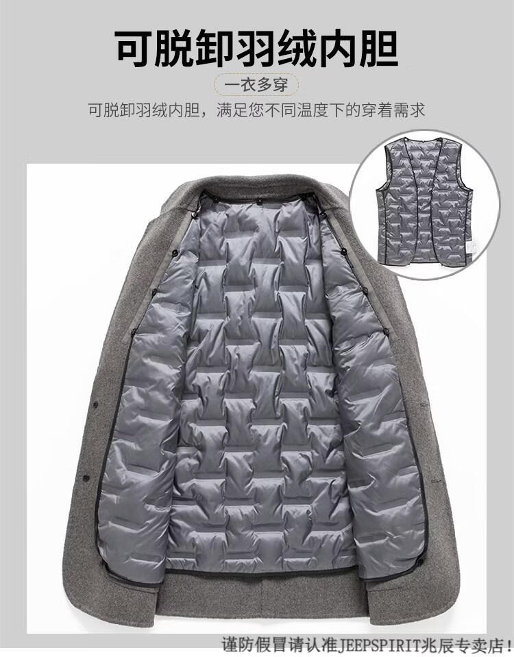 JEEP SPIRIT new double-sided woolen coat men's wool woolen suit casual suit winter velvet thickened short coat gray brown removable down liner M 170 recommended 95-115Jin Jin equals 0.5 kg