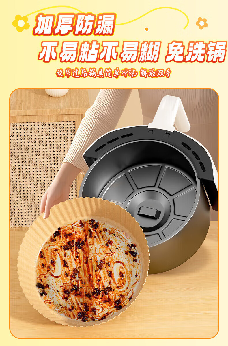 Special paper baking pan for rice air fryer, oil-absorbing paper pad, household food silicone paper, tinfoil bowl, baking pot, deep-frying, thickened large, round 50 sheets + pet dust box, 3-5 liter fryer