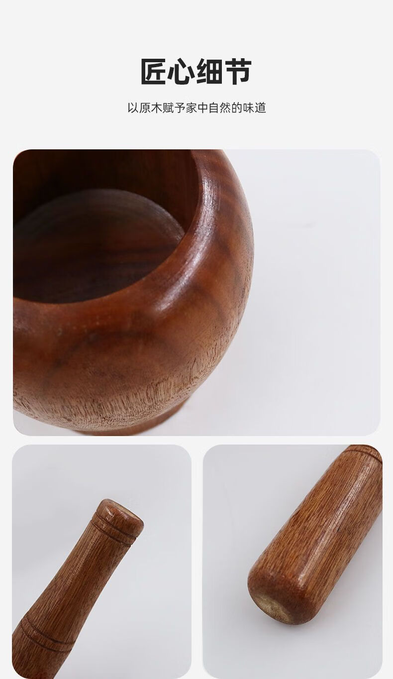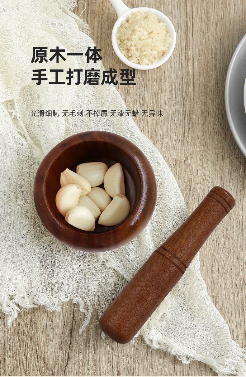 Large garlic masher, garlic mortar, old-fashioned garlic mashing jar, wooden handmade household wooden mortar, sesame seeds, sesame seeds