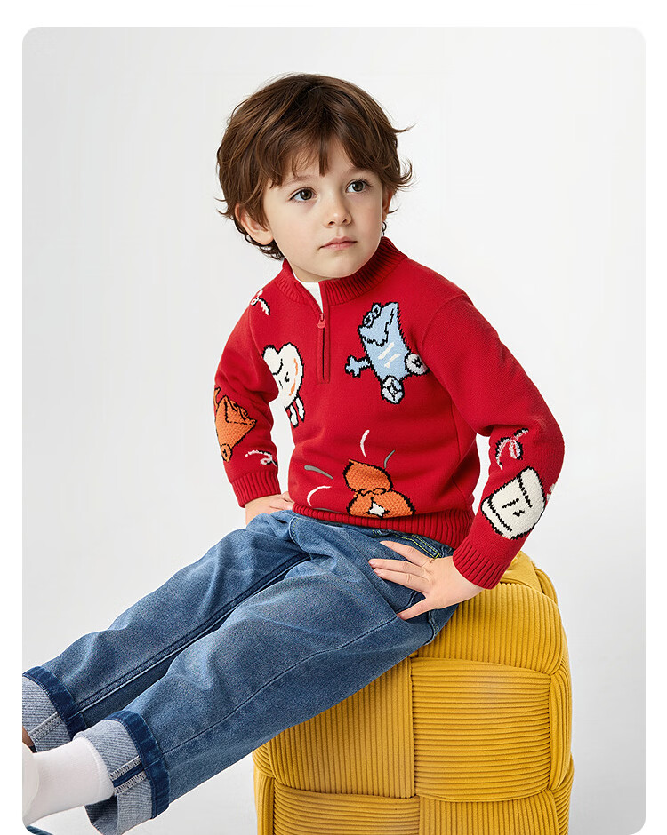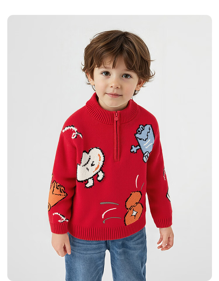 Balabala shopping mall same style Balabala children's sweater boys 2026 spring and autumn half-cardigan sweater zipper off-white 10302 130