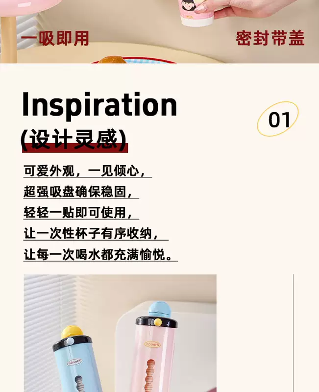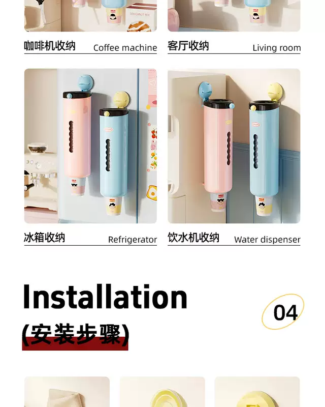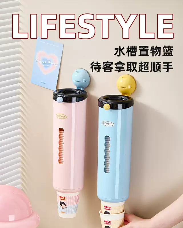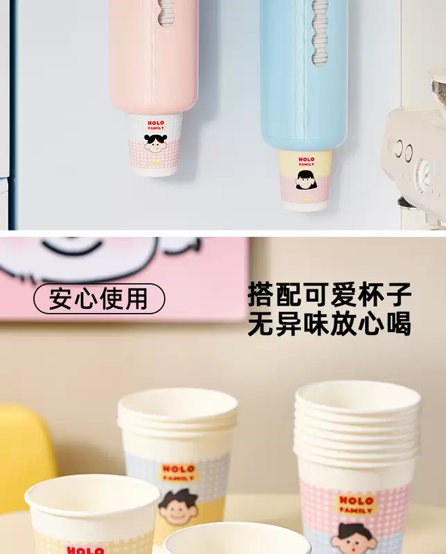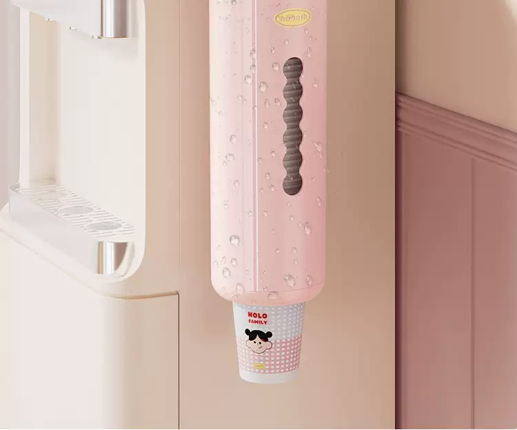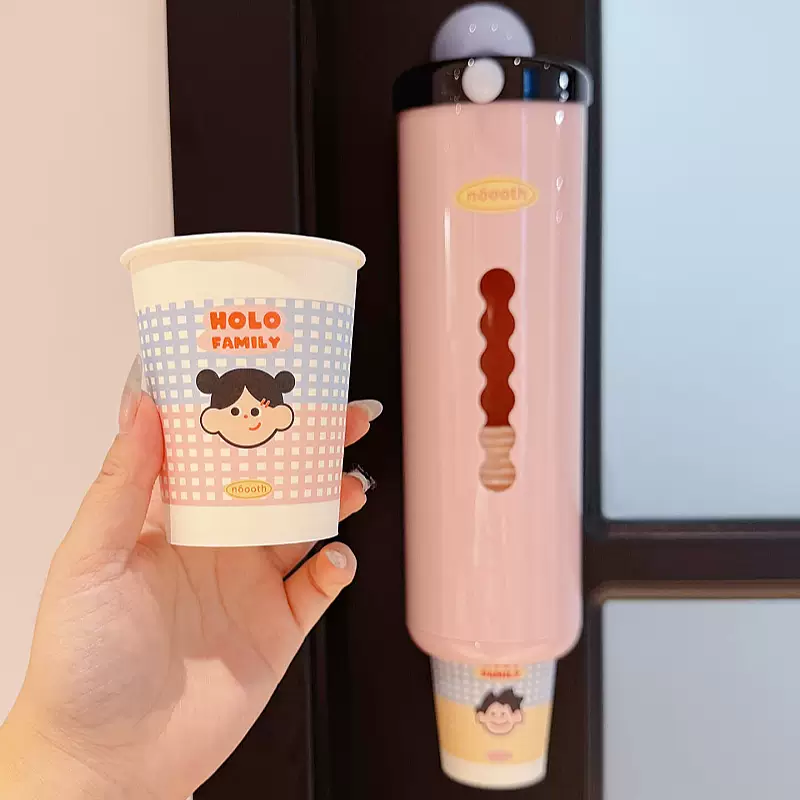 Yusenyi Disposable Storage Rack Paper Cup Holder Dustproof Cup Holder Household Cup Wall-mounted Punch-Free Suction Cup Large Capacity Pink Cup Taker Food Grade PET (High Quality Quick Delivery)