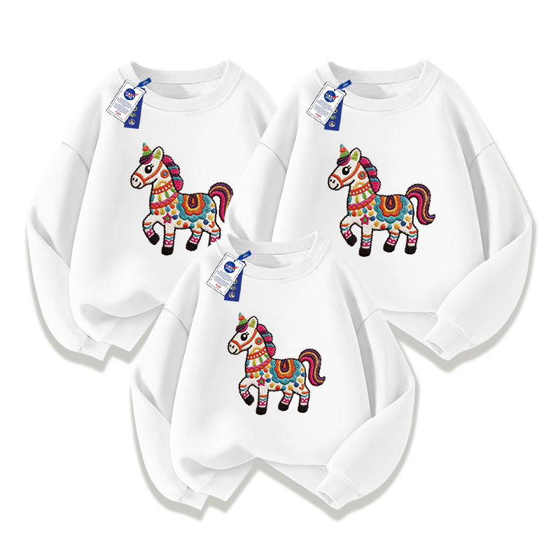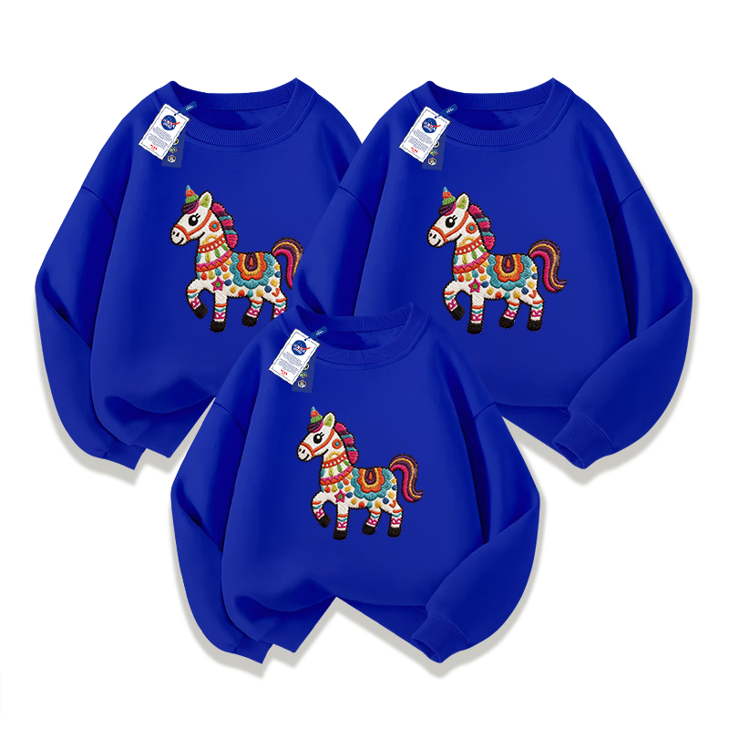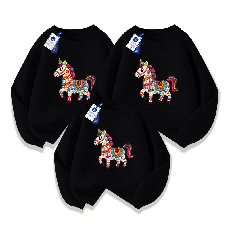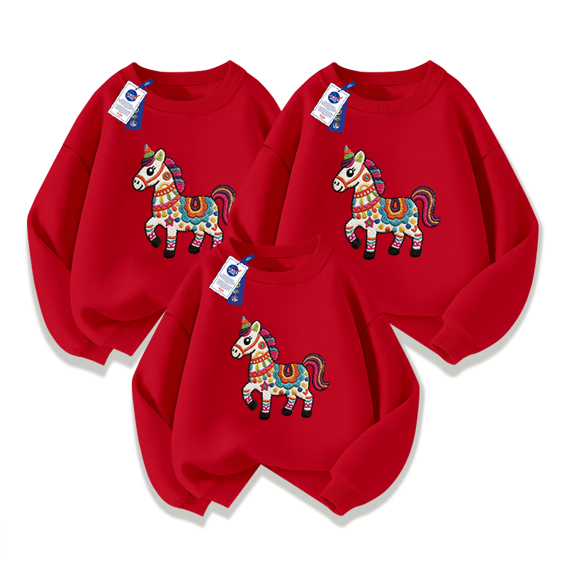 NASA STONE joint parent-child clothing children's red New Year festive tops round neck sweatshirt 2026 new natal year of the horse clothes red spring and autumn style one 110 110cm children's size recommendation 30-38Jin Jin equals 0.5 kg