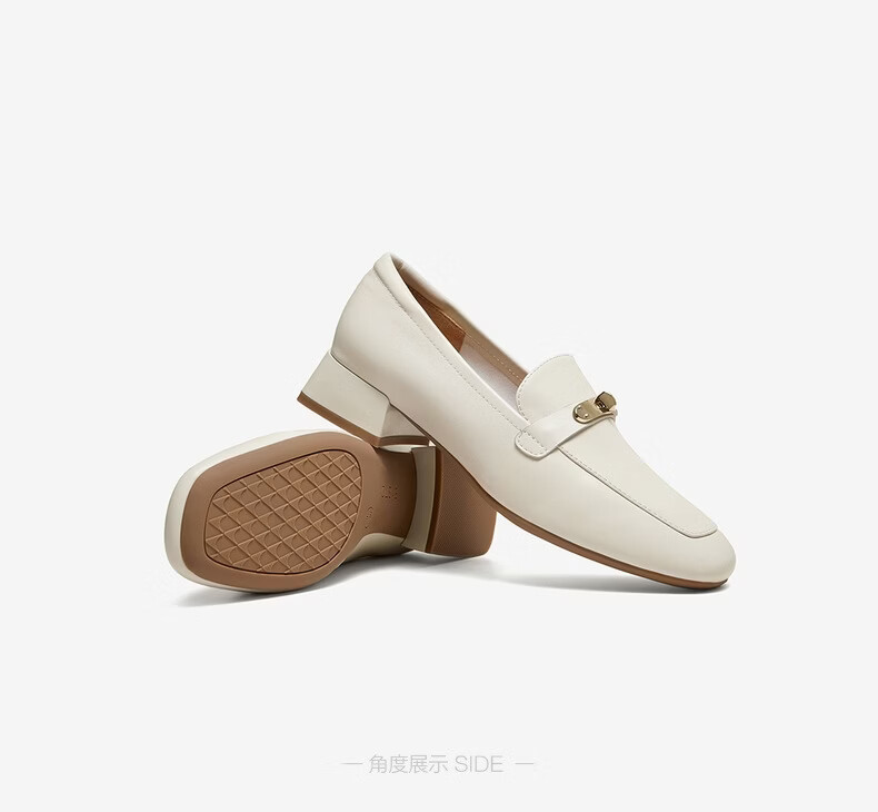 Bestu 2026 Spring New Loafers Fashionable Commuting Metal Buckle Women's Shoes C7253AA6 Beige 37