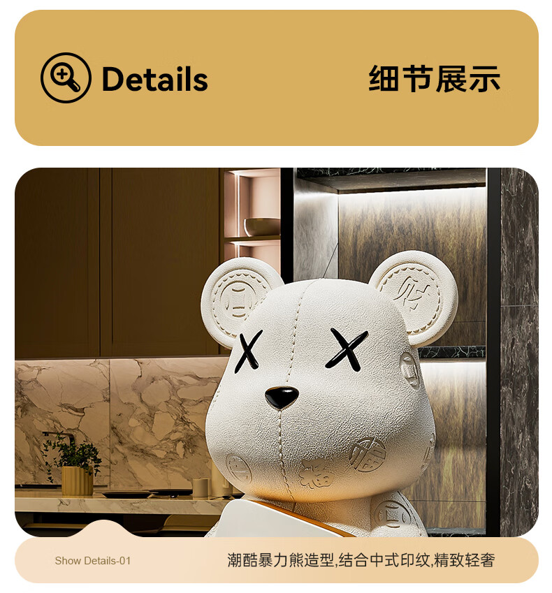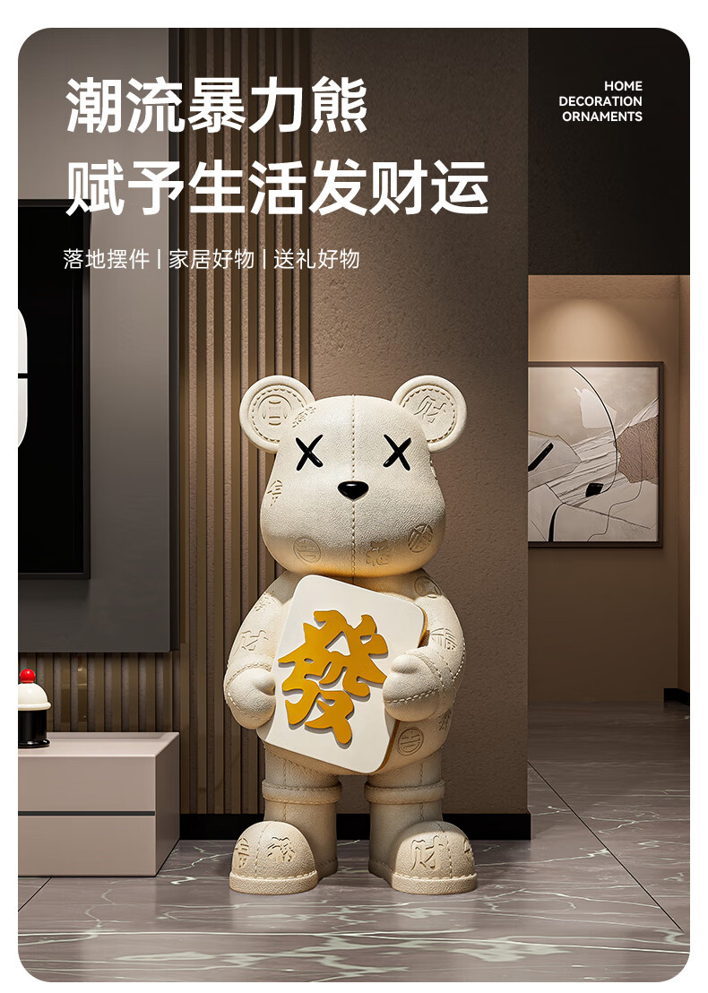 BHM Violent Bear Ornament Living Room TV Cabinet Sofa Large Floor-standing Decoration High-End Atmosphere Moving and Housewarming Gift Fortune Pfaff Violent Bear + Bluetooth Karaoke Speaker