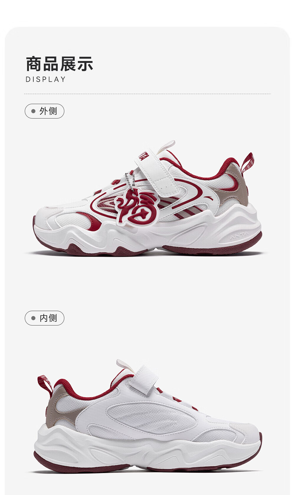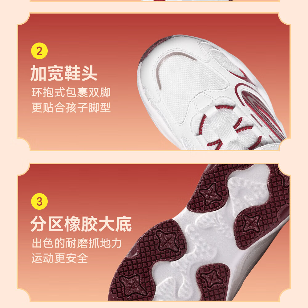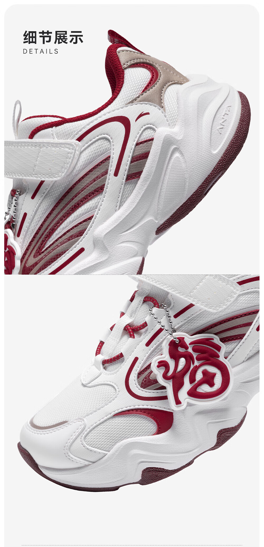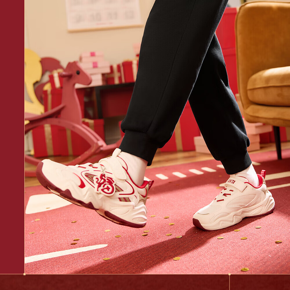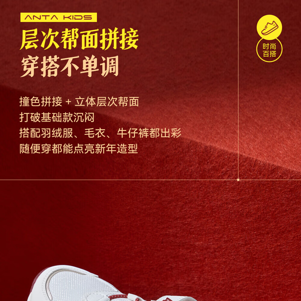ANTA (ANTA) children's sports shoes, middle and large children's shoes, spring new classic versatile running shoes, campus student casual shoes, Hongyun-Ivory White/Danxia Red/Metallic Bright Gold, New Year's Good Luck Red 35