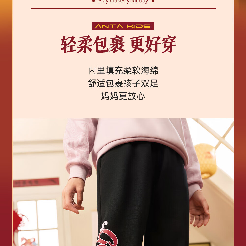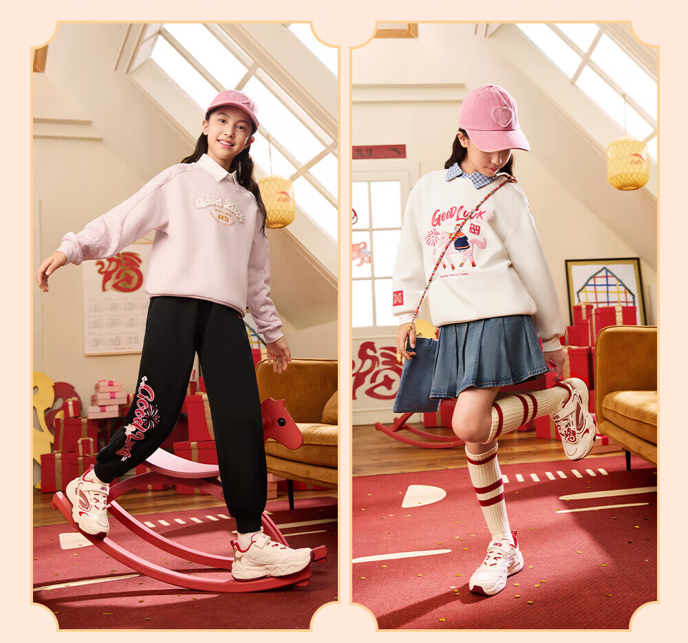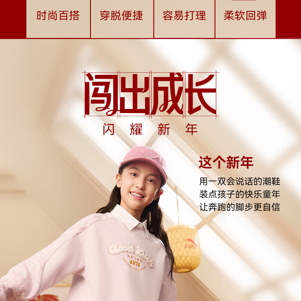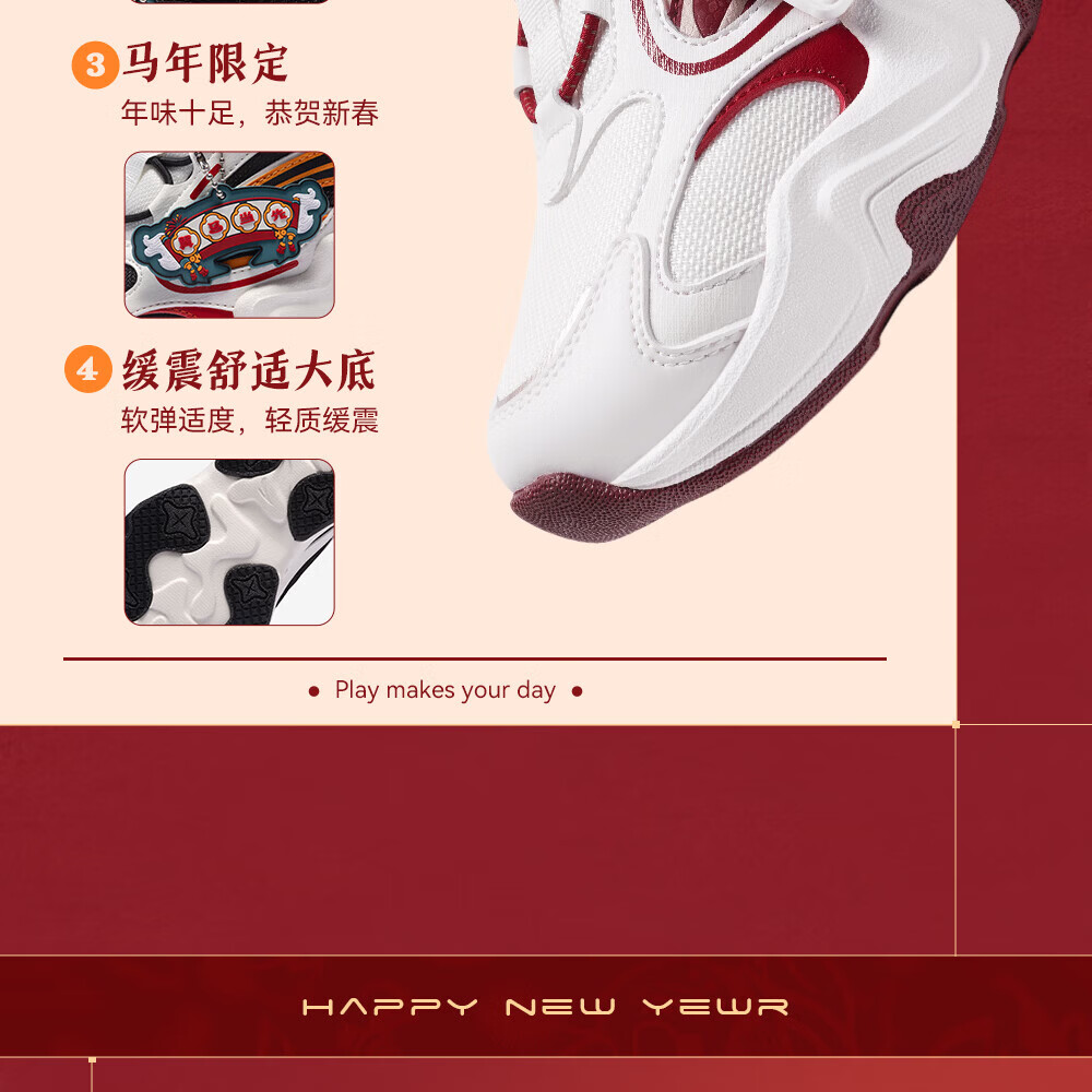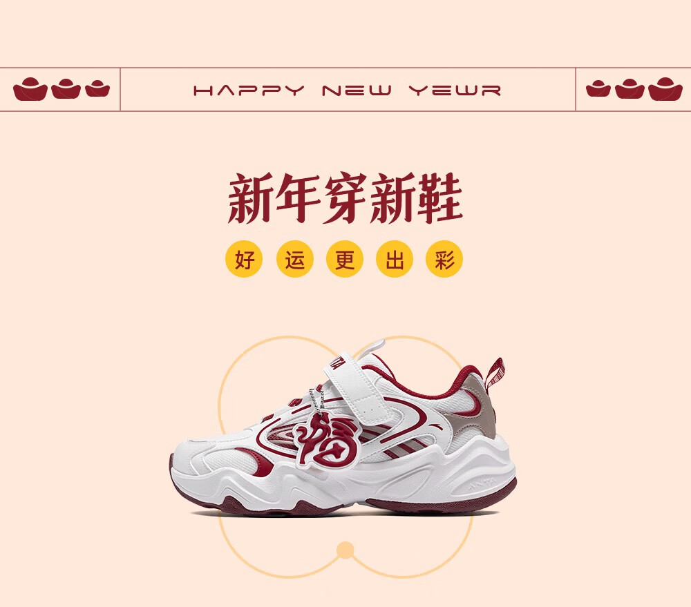 ANTA (ANTA) children's sports shoes, middle and large children's shoes, spring new classic versatile running shoes, campus student casual shoes, Hongyun-Ivory White/Danxia Red/Metallic Bright Gold, New Year's Good Luck Red 35
